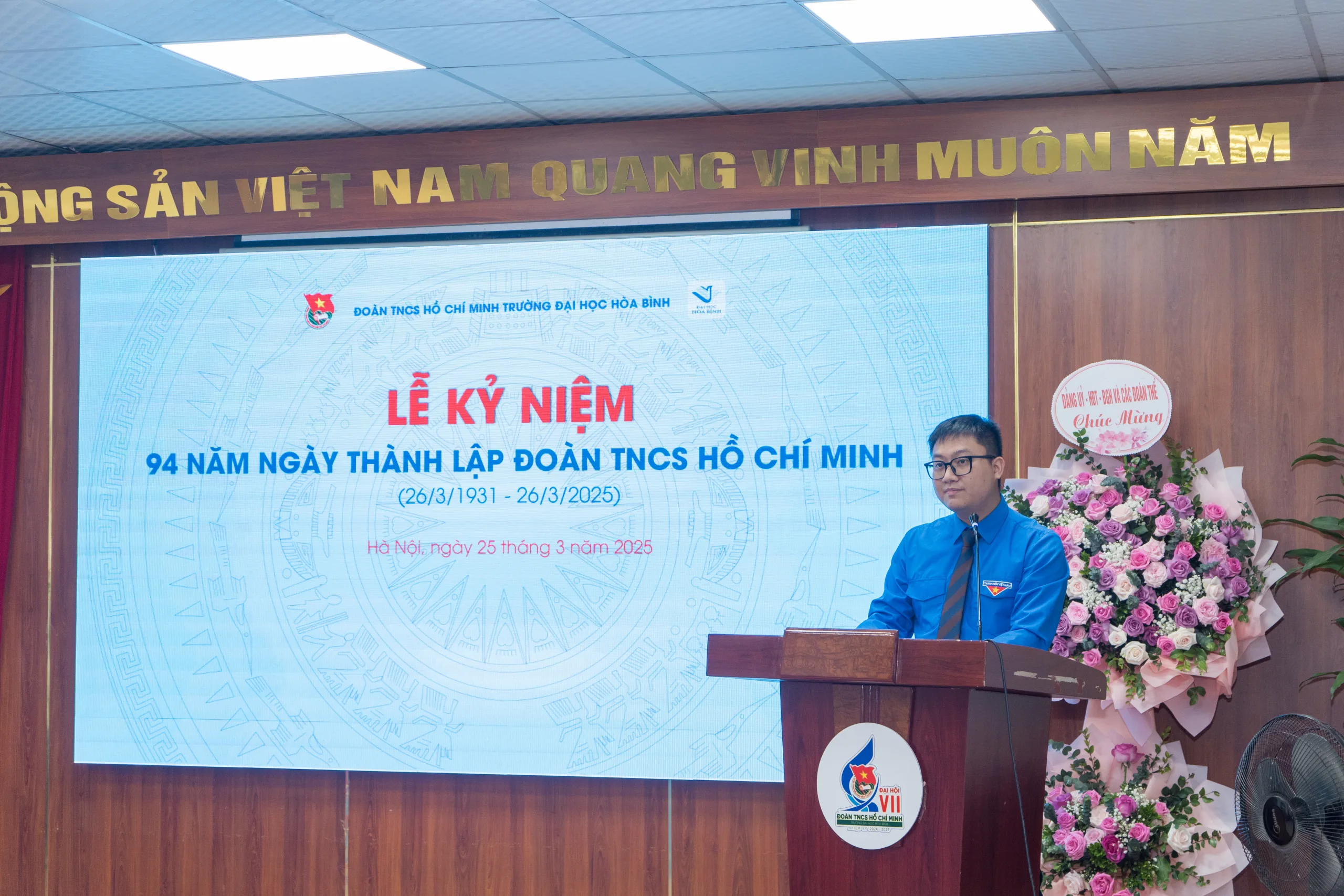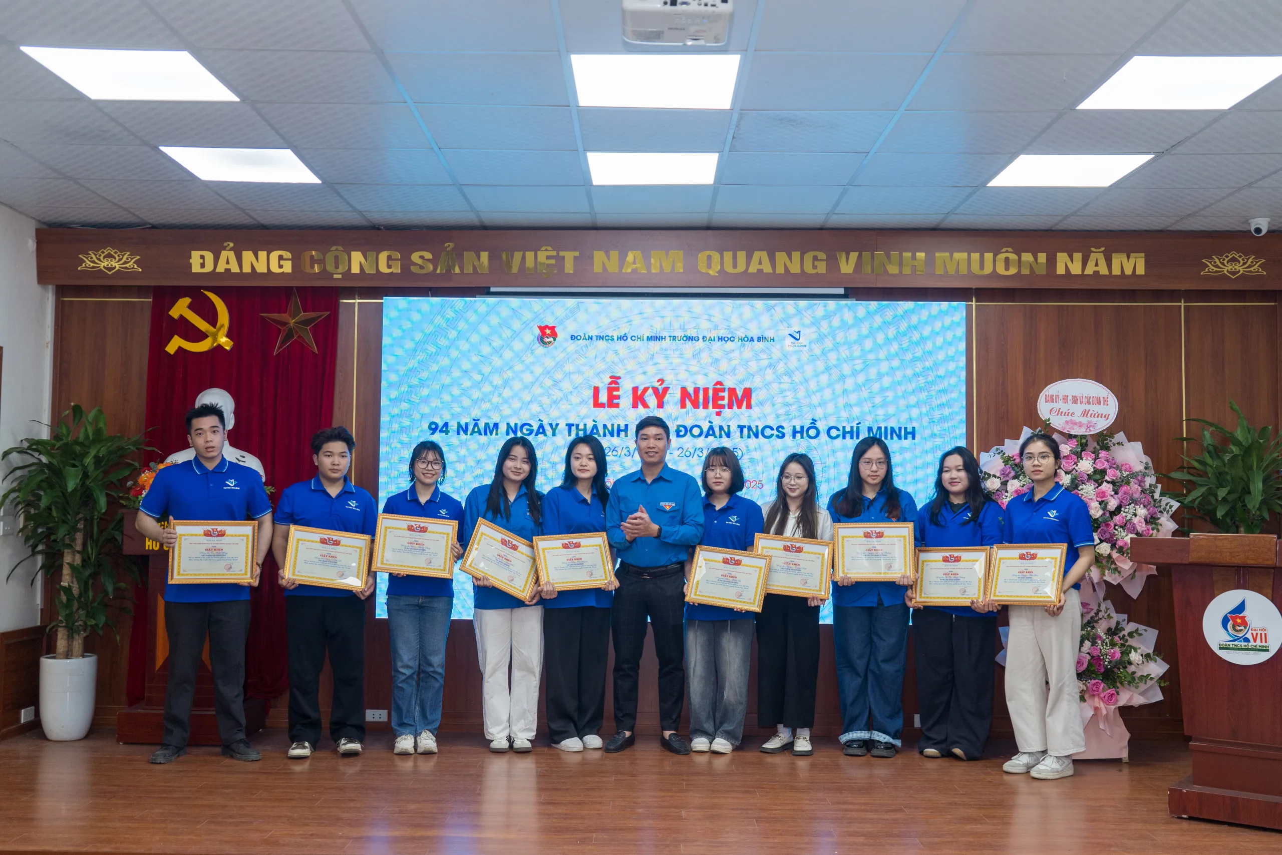 Sáng ngày 25/03/2025, Ban chấp hành (BCH) Đoàn Thanh niên Cộng sản (TNCS) Hồ Chí Minh Trường Đại học Hòa Bình đã tổ chức lễ mít tinh kỷ niệm 94 năm ngày thành lập Đoàn TNCS Hồ Chí Minh và trao quyết định khen thưởng cho các tập thể, cá nhân xuất sắc trong phong trào thi đua chào mừng 17 năm ngày thành lập trường Đại học Hòa Bình và 94 năm ngày thành lập Đoàn TNCS Hồ Chí Minh (26/3/1931 – 26/3/2025).