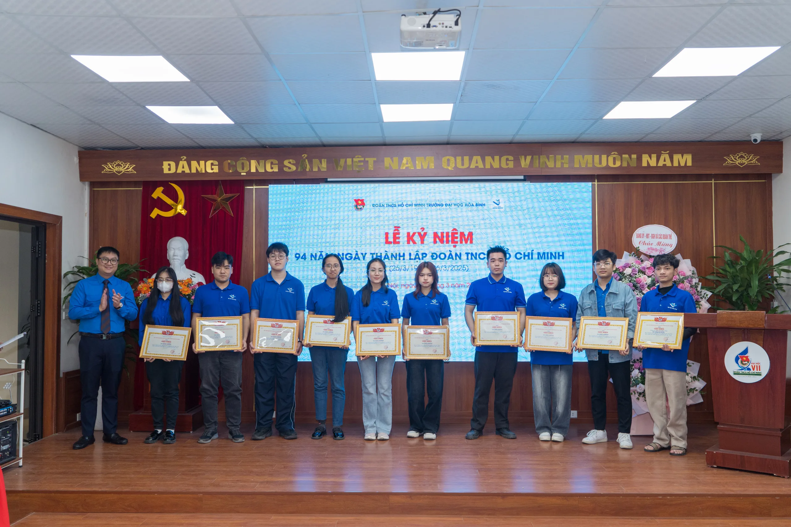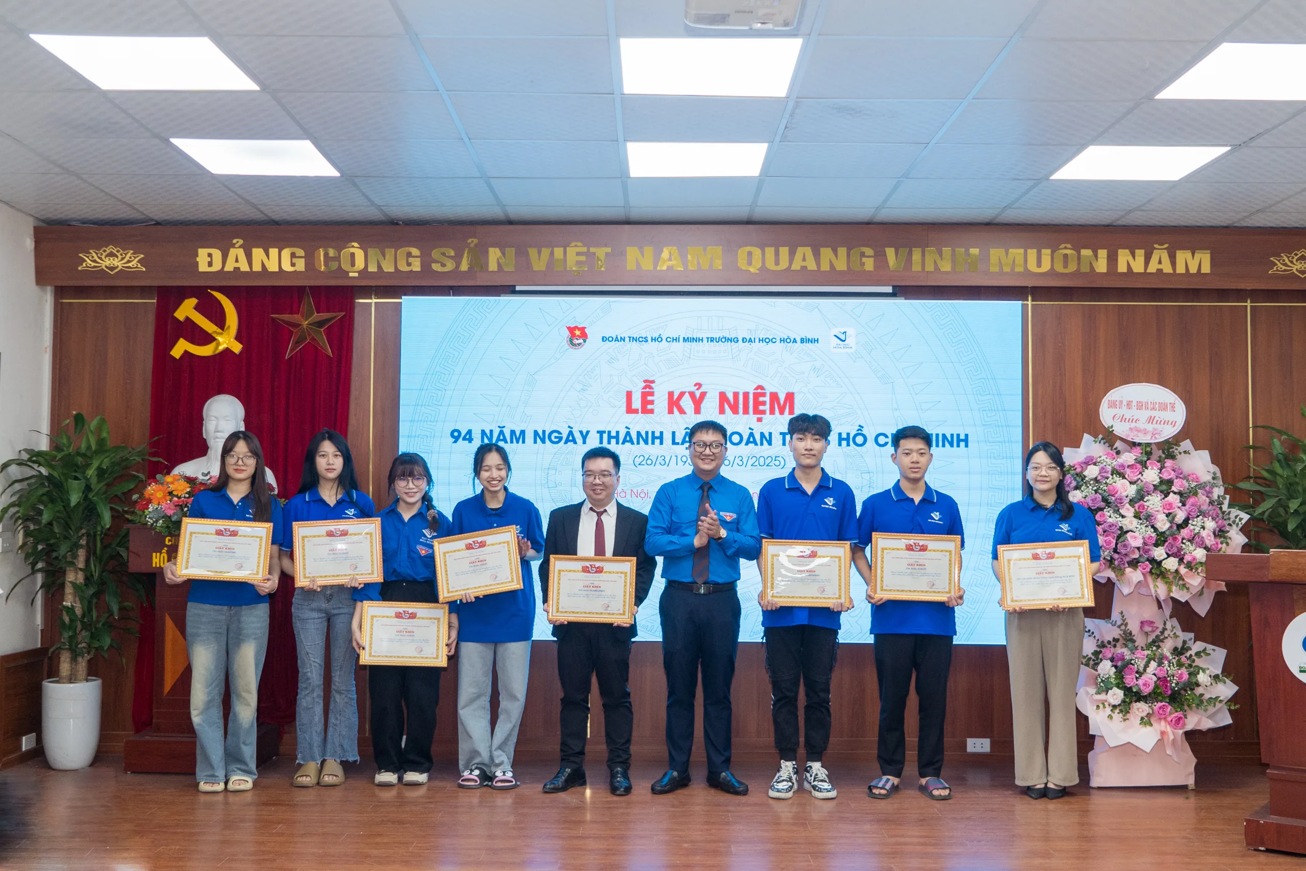 Lễ kỷ niệm 94 năm ngày thành lập Đoàn TNCS Hồ Chí Minh tại Trường Đại học Hòa Bình đã khép lại trong không khí trang trọng, ấm áp và tràn đầy nhiệt huyết. Chương trình không chỉ là dấu mốc quan trọng kỷ niệm chặng đường vinh quang của Đoàn, mà còn là nguồn cổ vũ, khích lệ cho thế hệ trẻ tiếp tục phát huy tinh thần xung kích, sáng tạo và sát cánh vì một Việt Nam tươi sáng!