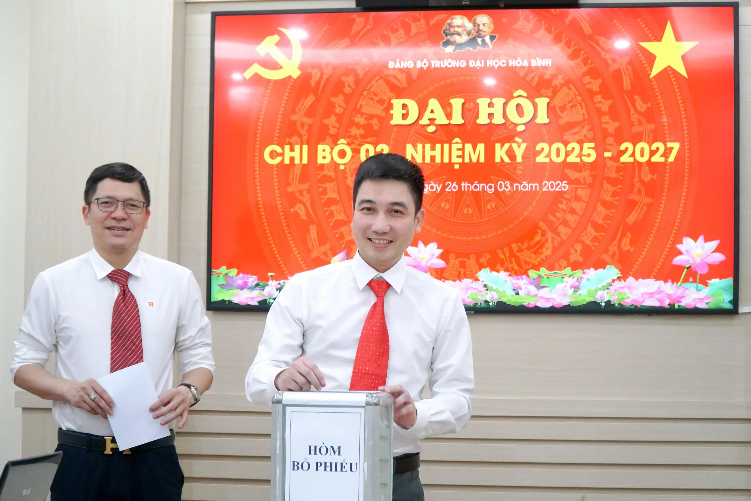 Sáng ngày 26/3/2025, Chi bộ 2 đã tổ chức thành công Đại hội Chi bộ nhiệm kỳ 2025-2027. Đại hội Chi bộ 02 có ý nghĩa đặc biệt quan trọng, định hướng cho cán bộ, đảng viên thuộc diện Chi bộ quản lý phát huy sức mạnh tổng hợp và mọi nguồn lực để góp phần xây dựng và phát triển Trường Đại học Hòa Bình theo định hướng ứng dụng nghề nghiệp, trở thành một điểm sáng về giáo dục, đào tạo có chất lượng; đồng thời định hướng chính trị – tư tưởng cho đảng viên trẻ và quần chúng ưu tú tiếp tục rèn luyện phẩm chất cách mạng, vững vàng và kiên định về chính trị, có hoài bão lớn, góp phần vào công cuộc phát triển chung của đất nước.