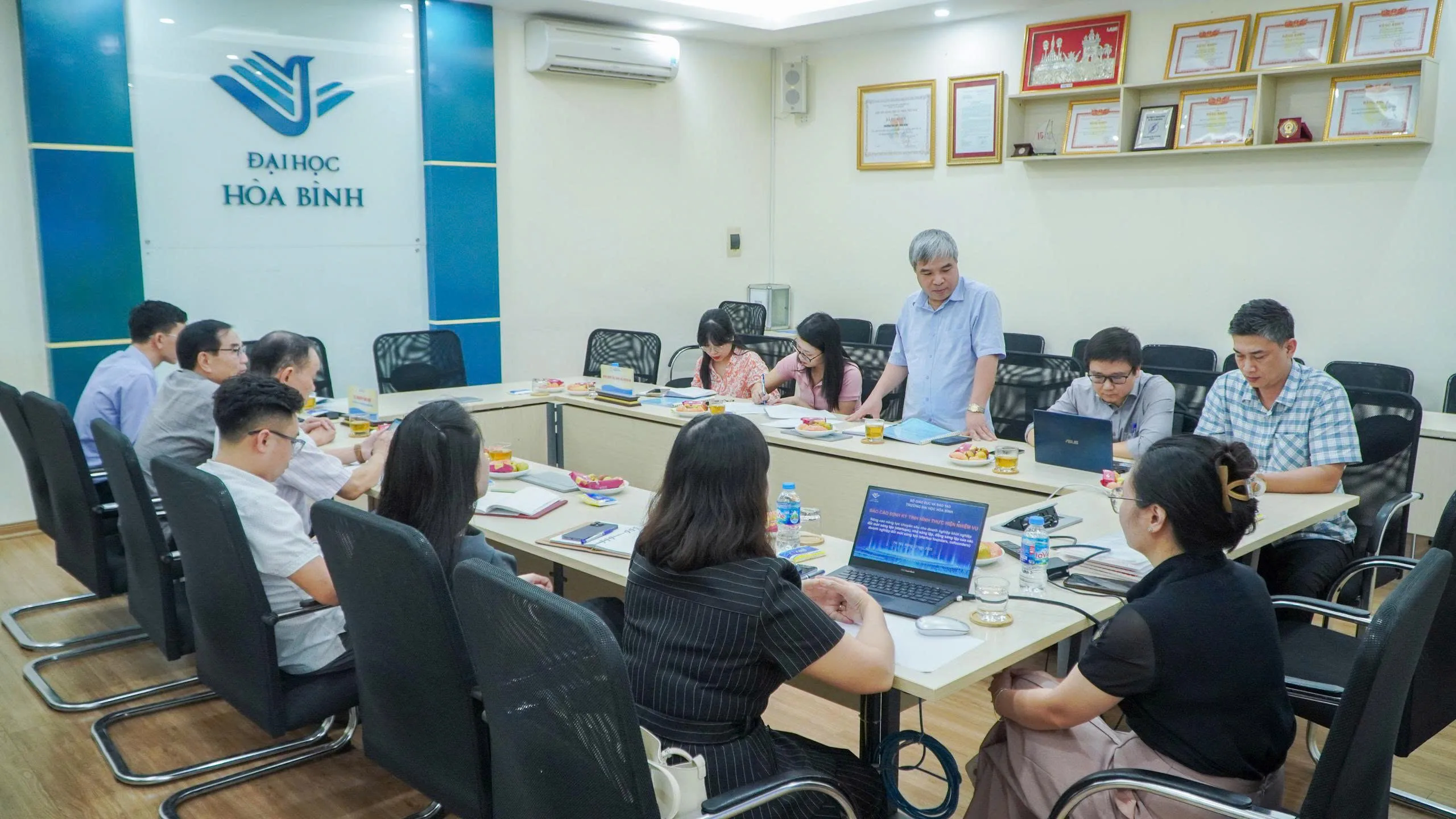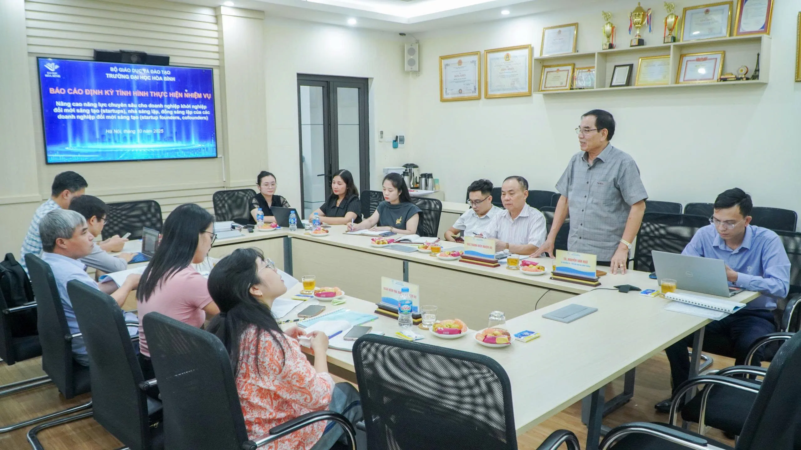 Đoàn kiểm tra giữa kỳ nhiệm vụ cấp Nhà nước “Nâng cao năng lực chuyên sâu cho doanh nghiệp khởi nghiệp đổi mới sáng tạo (startups), nhà sáng lập, đồng sáng lập của các doanh nghiệp khởi nghiệp đổi mới sáng tạo (startup founders, cofounders)” làm việc tại Trường Đại học Hoa Bình