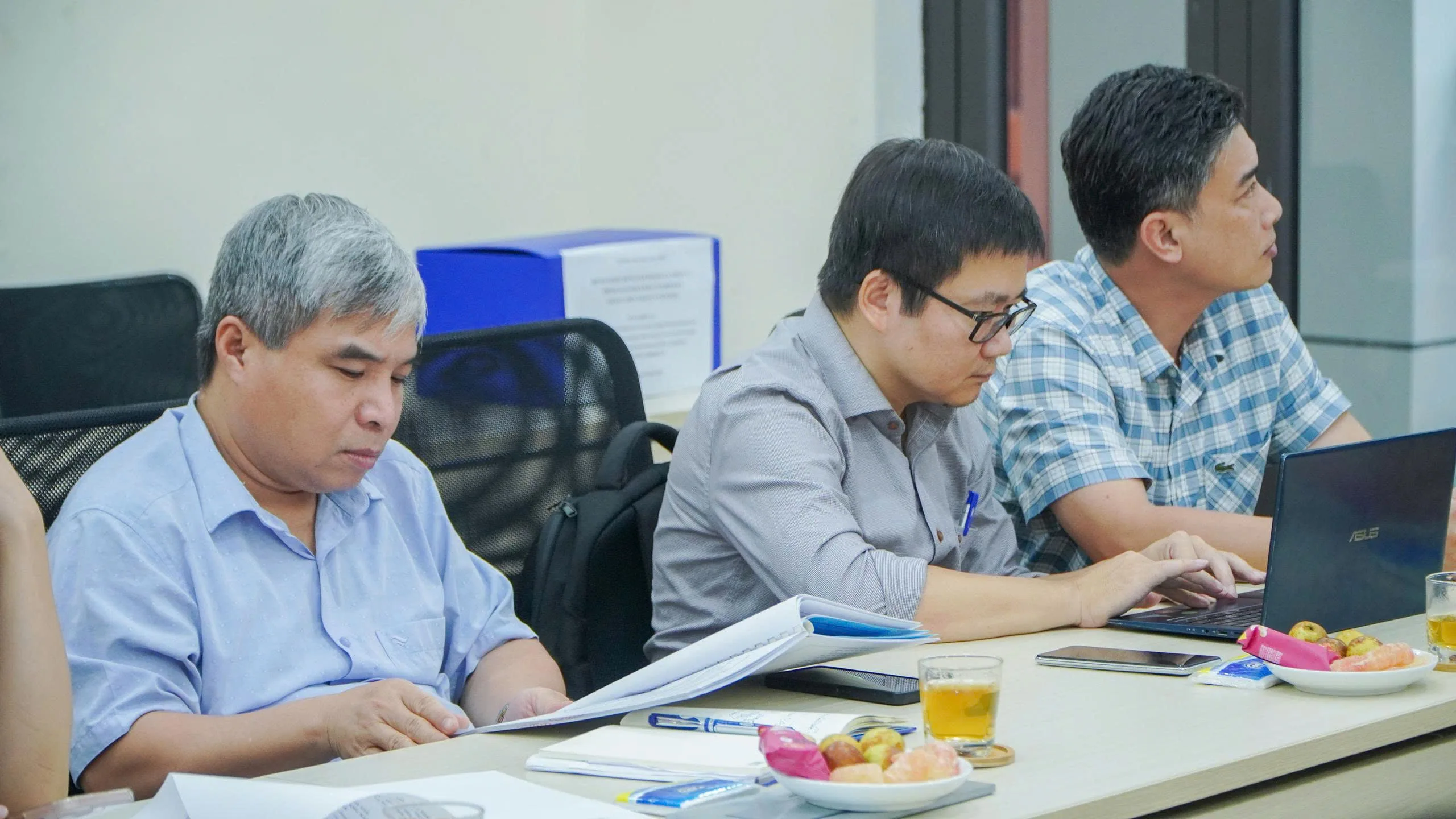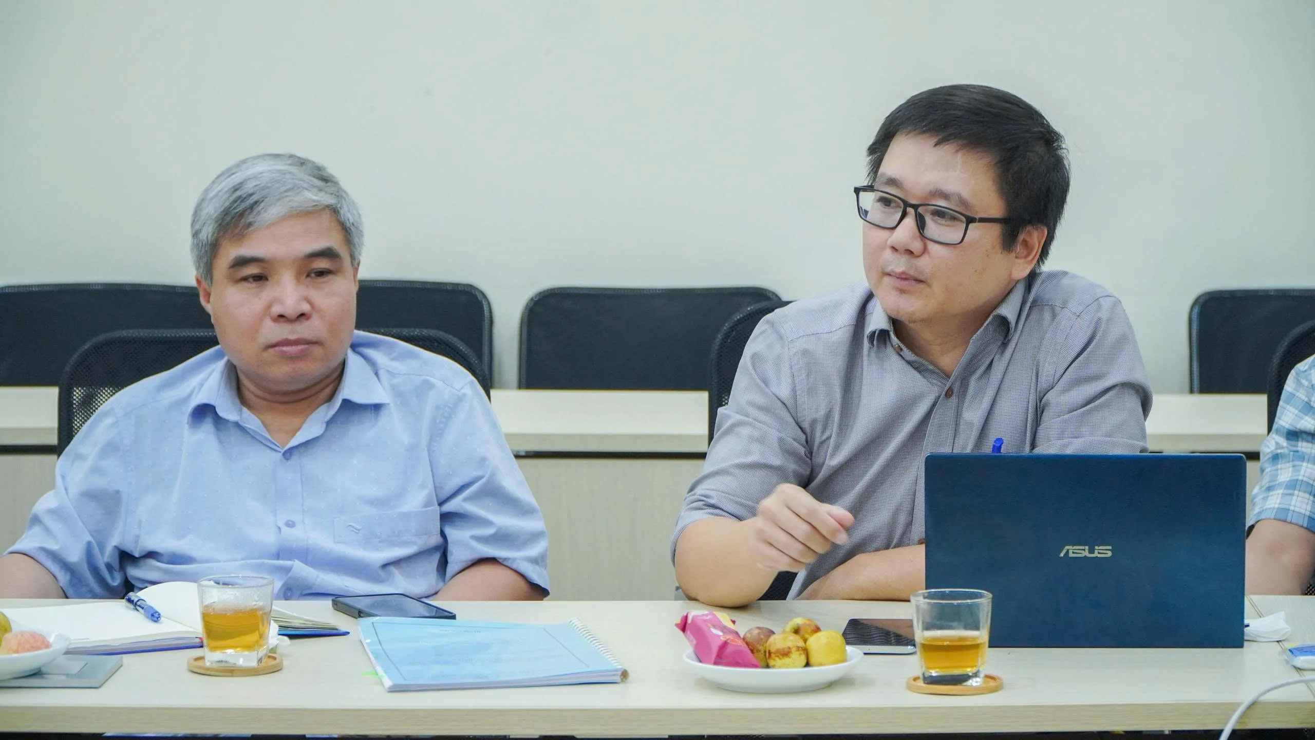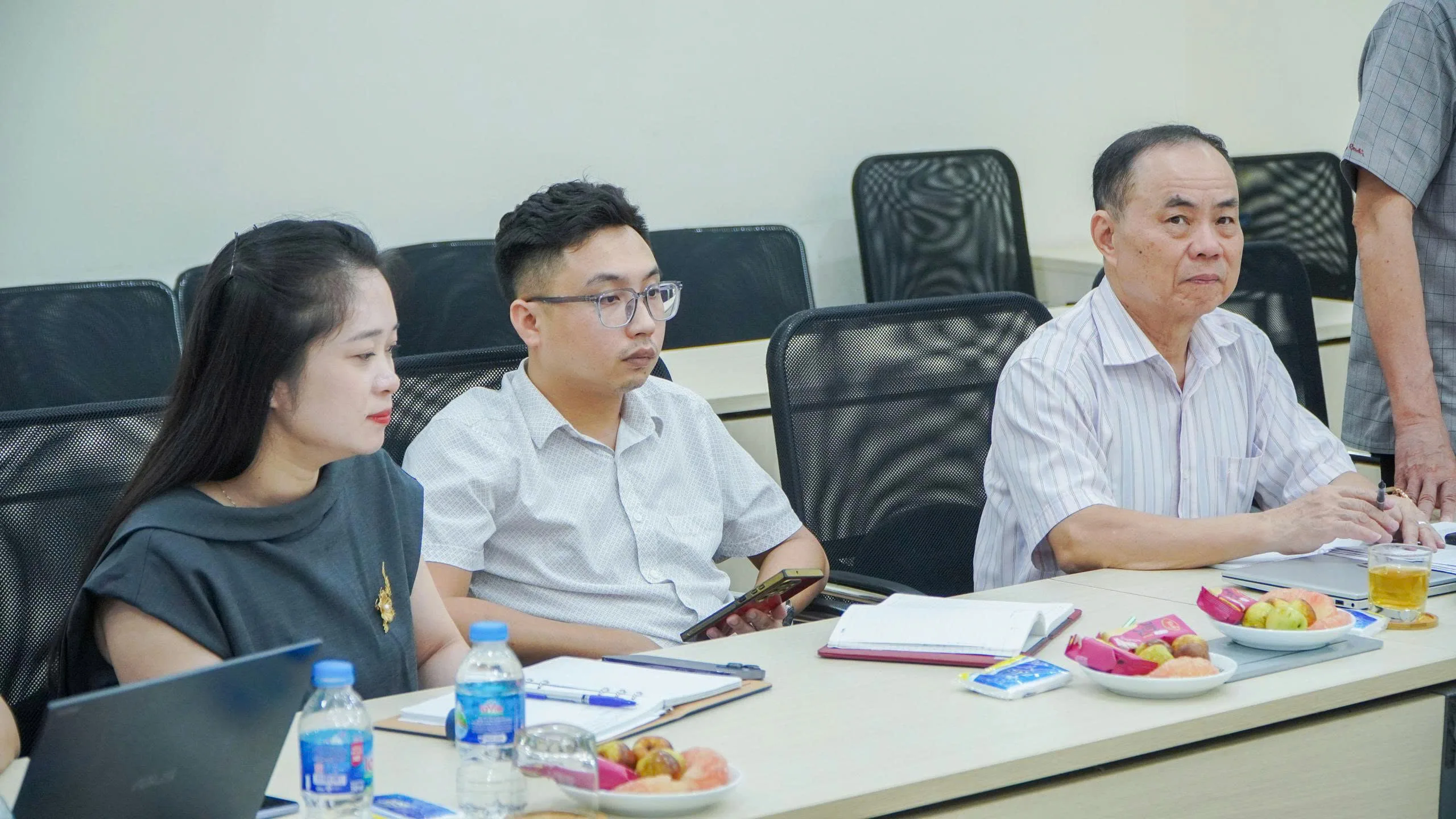 Tham dự buổi làm việc có đại diện Quỹ Phát triển khoa học và công nghệ Quốc gia – đơn vị quản lý kinh phí và đại diện Cục Khởi nghiệp và Doanh nghiệp công nghệ – đơn vị quản lý nhiệm vụ. Về phía đơn vị chủ trì nhiệm vụ, có TS. Nguyễn Văn Ngữ – Bí thư Đảng ủy, đại diện Lãnh đạo Nhà trường, cùng các thành viên thực hiện nhiệm vụ.