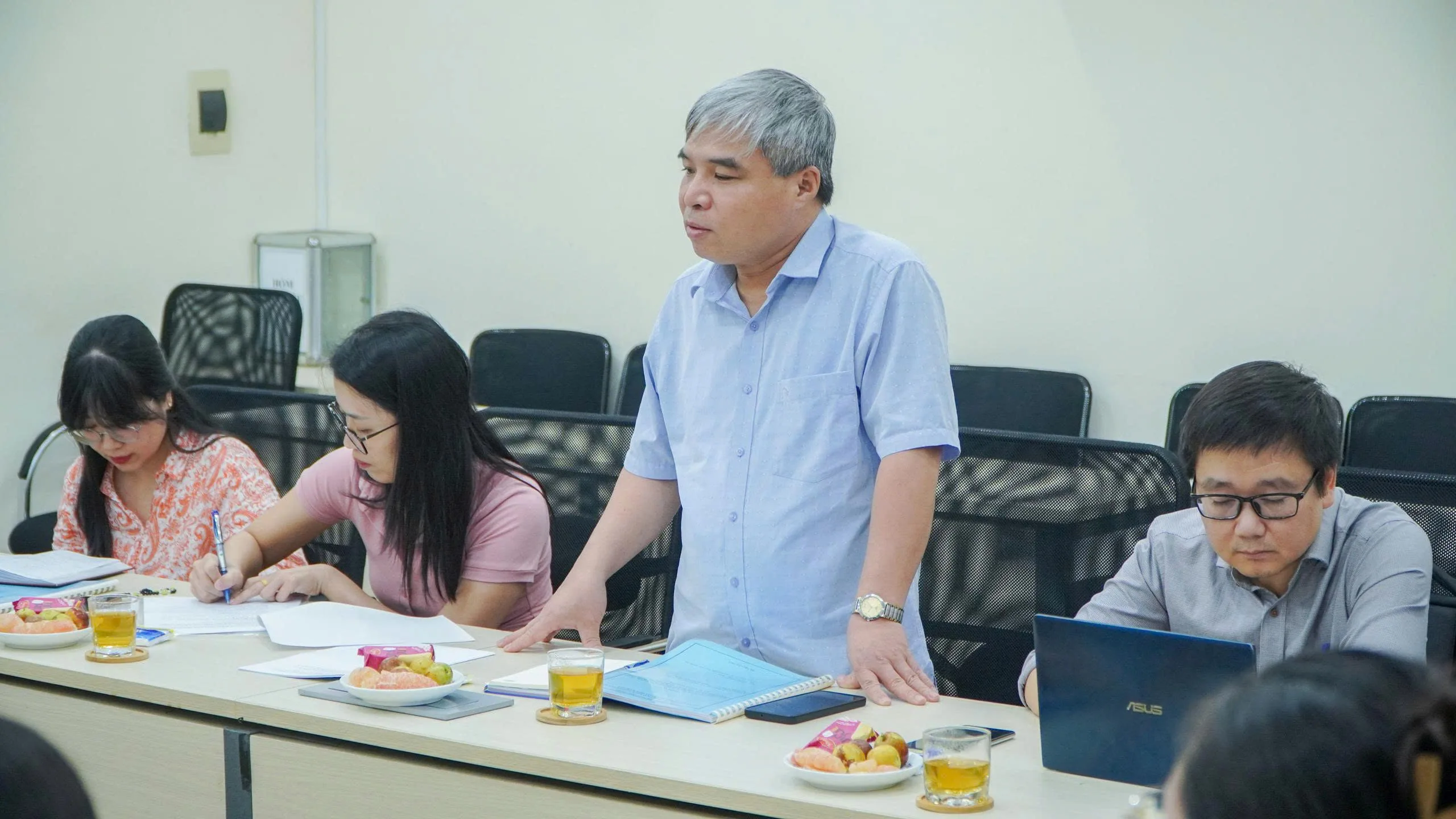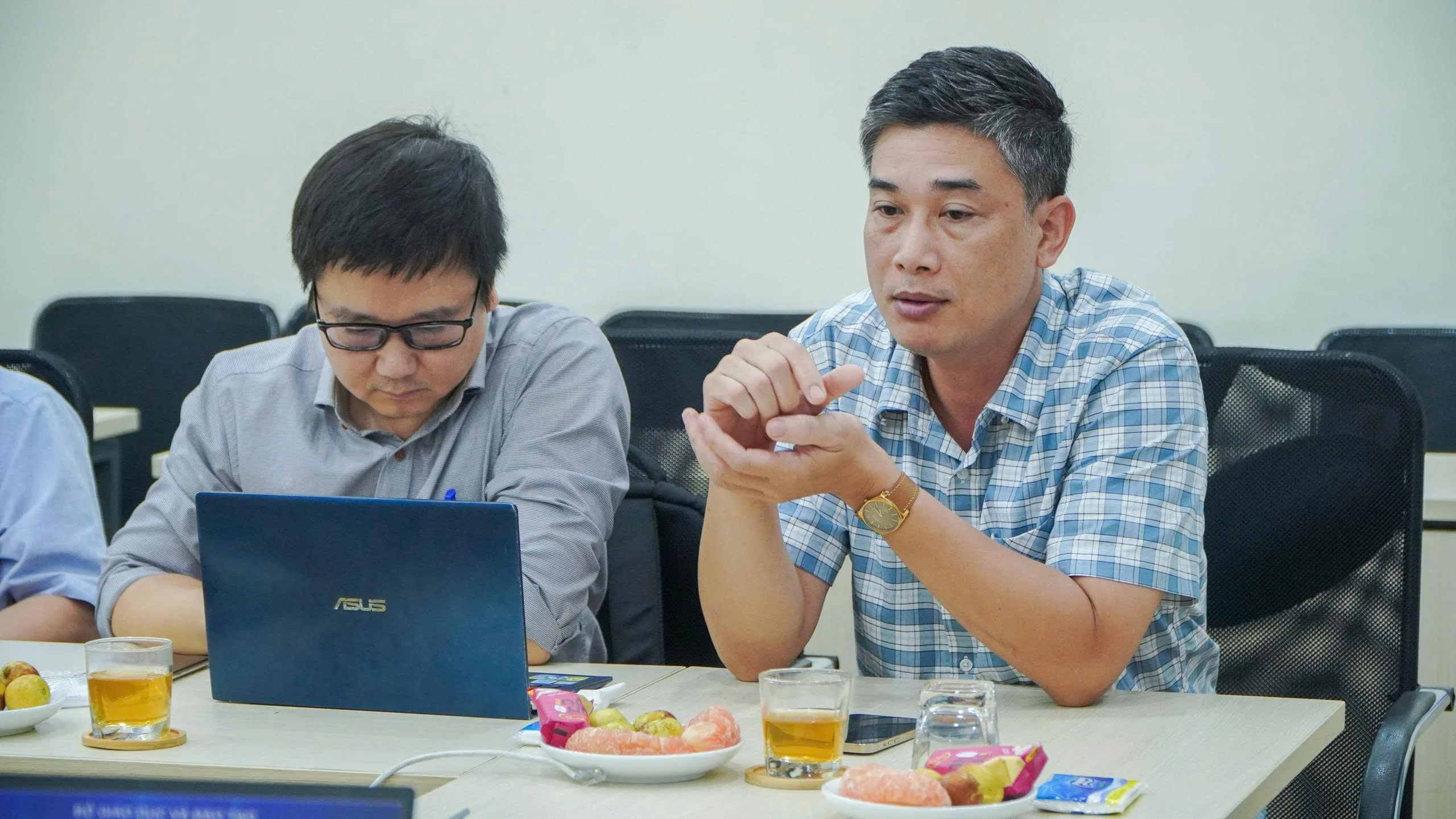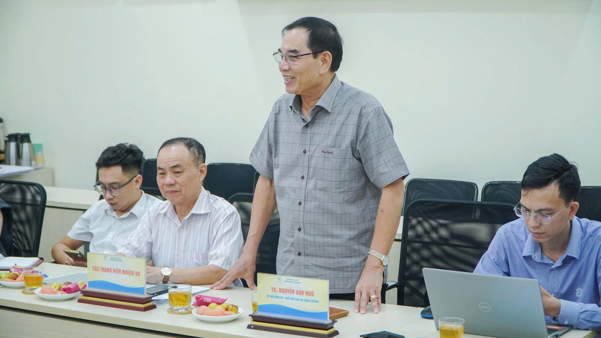 Tham dự buổi làm việc có đại diện Quỹ Phát triển khoa học và công nghệ Quốc gia – đơn vị quản lý kinh phí và đại diện Cục Khởi nghiệp và Doanh nghiệp công nghệ – đơn vị quản lý nhiệm vụ. Về phía đơn vị chủ trì nhiệm vụ, có TS. Nguyễn Văn Ngữ – Bí thư Đảng ủy, đại diện Lãnh đạo Nhà trường, cùng các thành viên thực hiện nhiệm vụ.