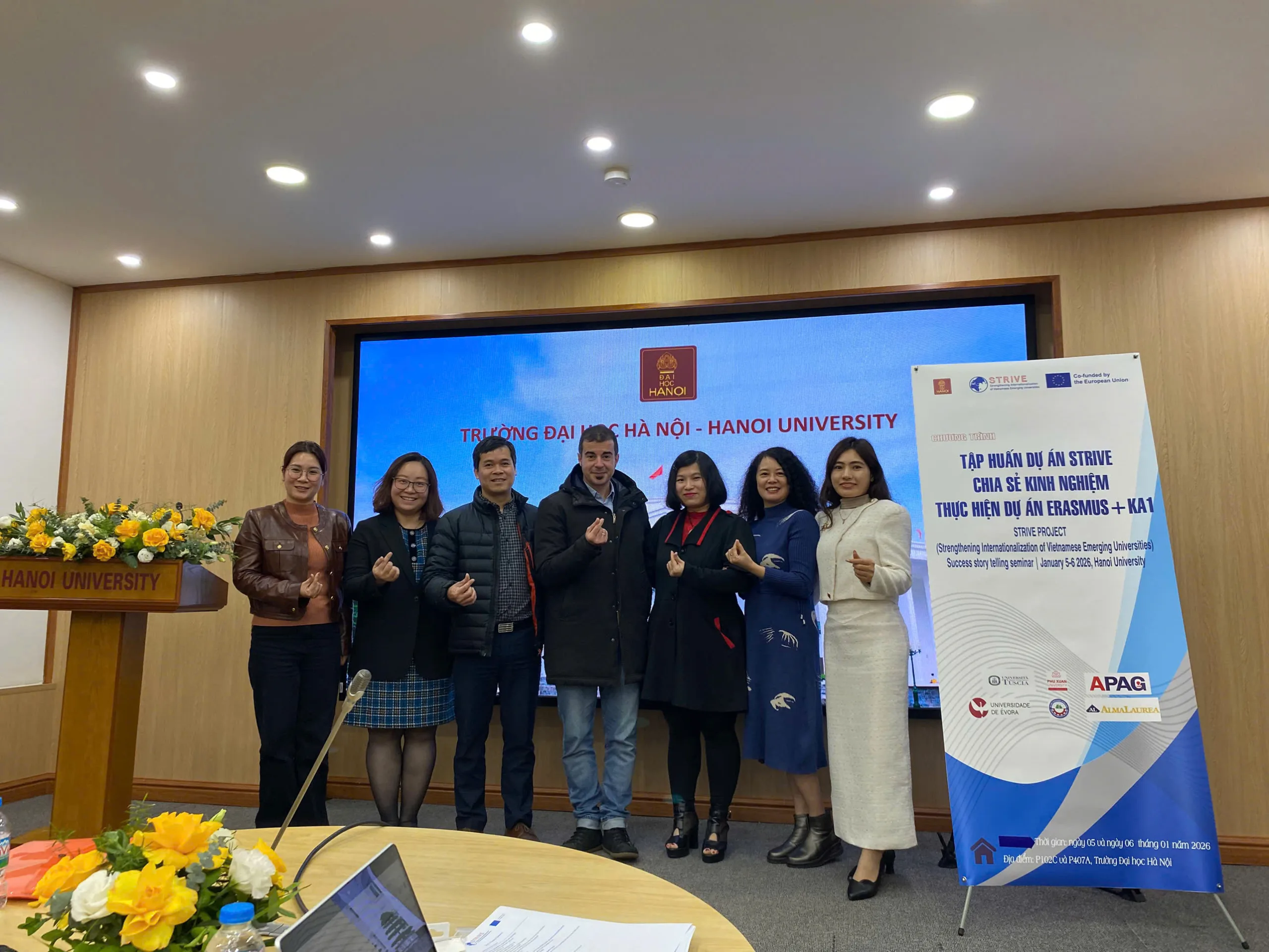 On January 5-6, 2026, at the invitation of the President of Hanoi University, the President of Hoa Binh University dispatched international cooperation staff to participate in a training session titled “Sharing Experiences in Implementing the Erasmus+ KA1 Project,” aimed at fostering network connections and enhancing capacity.