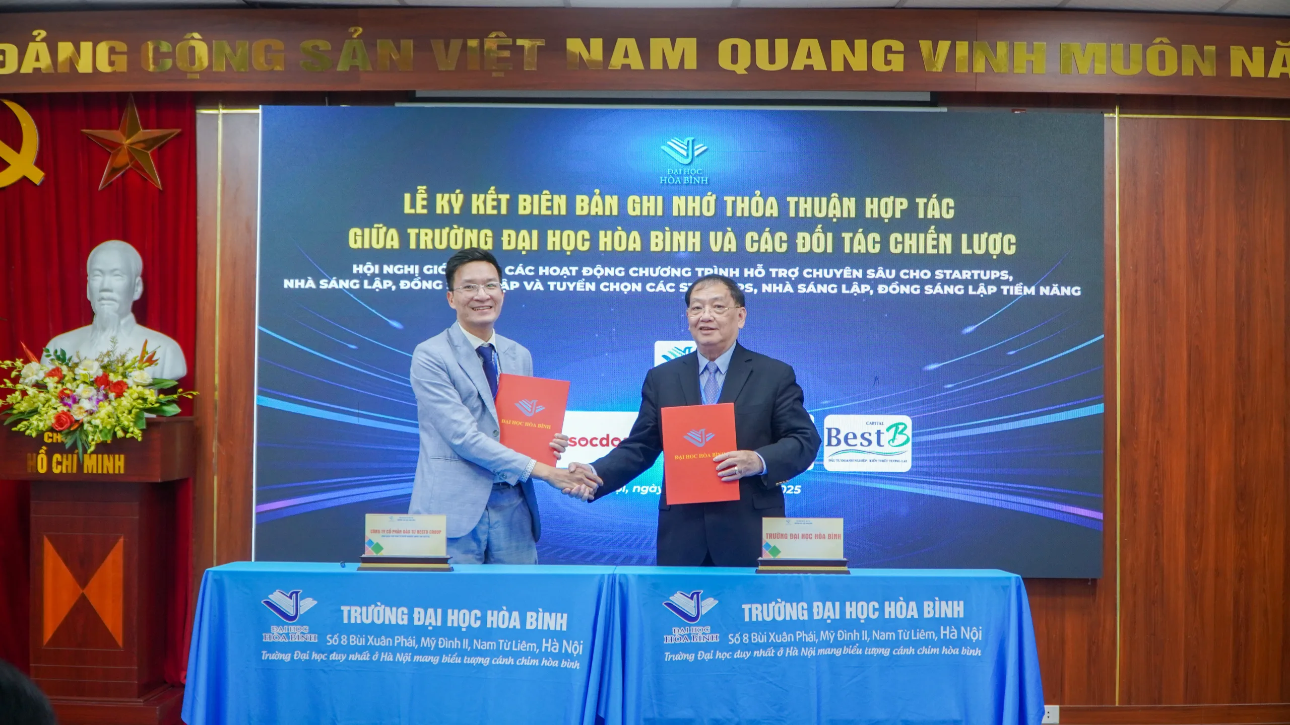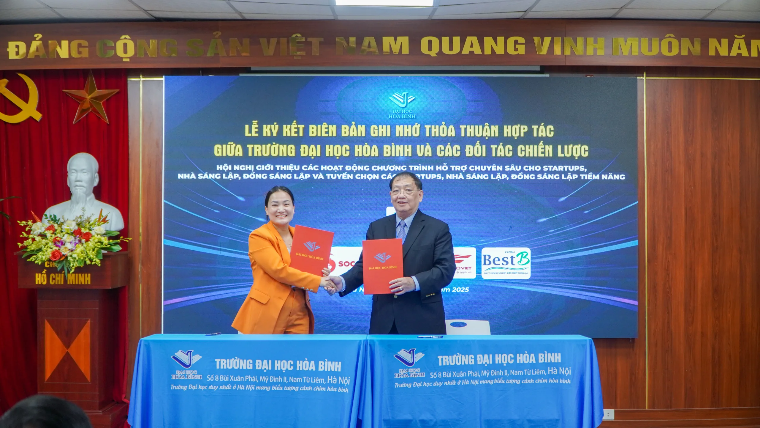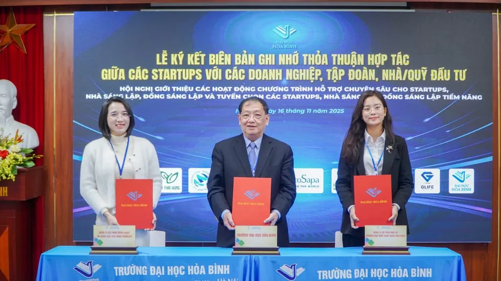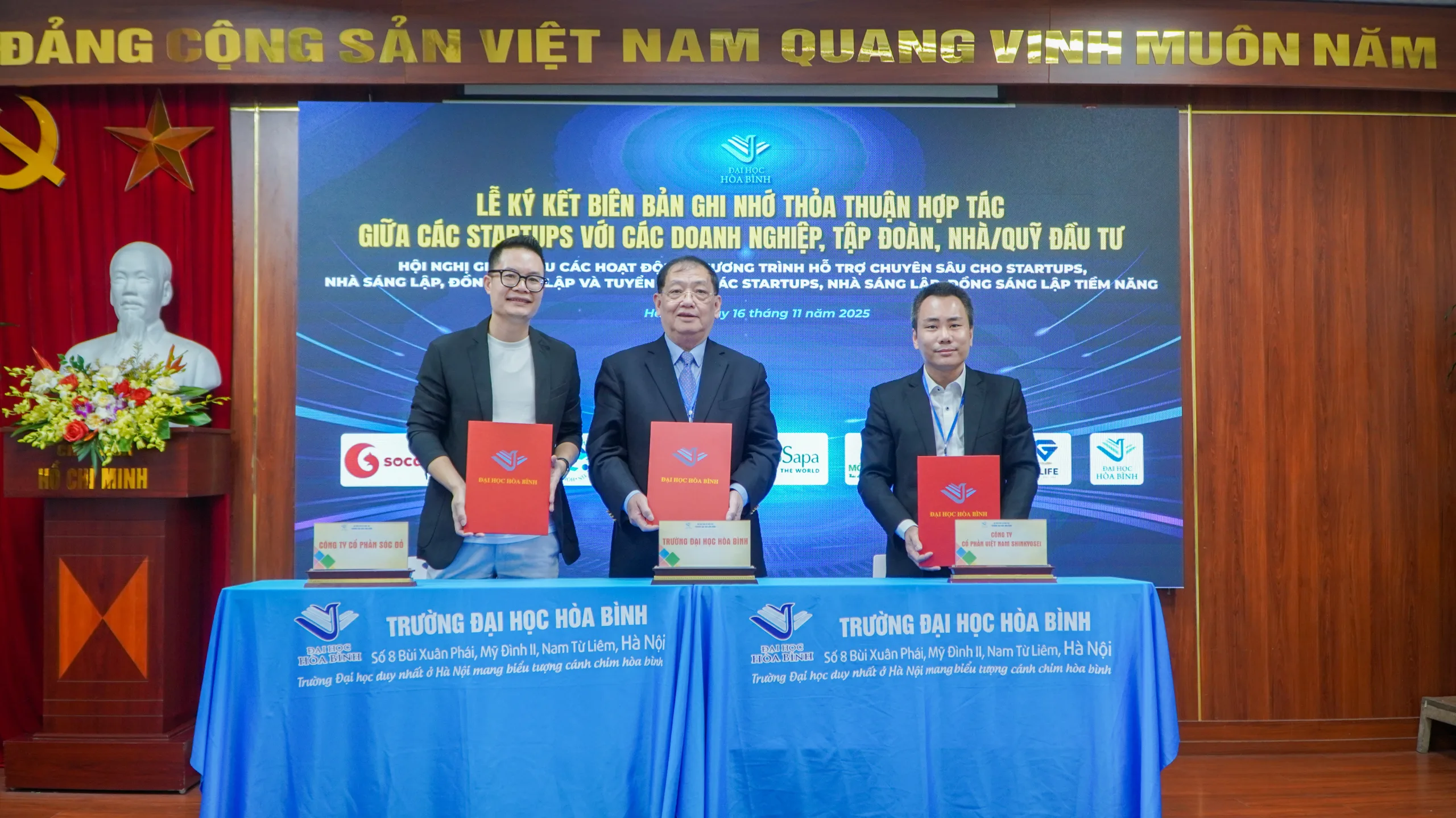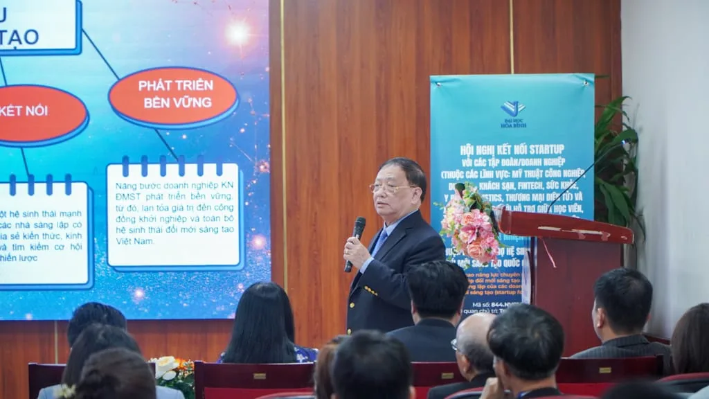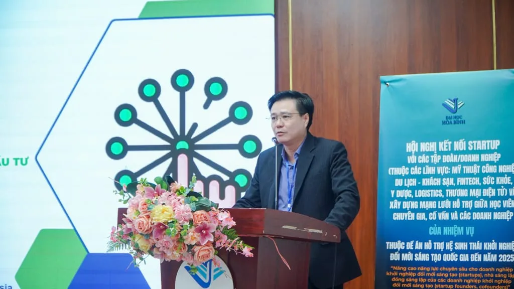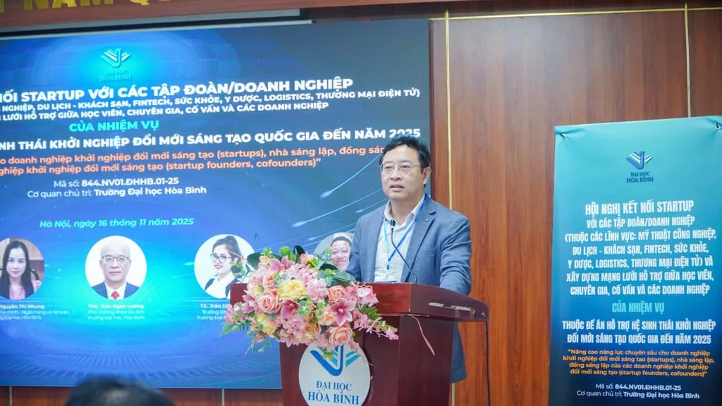 Trong khuôn khổ thực hiện nhiệm vụ “Nâng cao năng lực chuyên sâu cho doanh nghiệp khởi nghiệp đổi mới sáng tạo (startups), nhà sáng lập, đồng sáng lập của các doanh nghiệp khởi nghiệp đổi mới sáng tạo (startup founders, cofounders)”, mã số 844.NV1.ĐHHB.01-25 thuộc Đề án 844 do Trường Đại học Hòa Bình (ĐHHB) chủ trì, nhằm mục đích kết nối startup với các tập đoàn/doanh nghiệp (thuộc các lĩnh vực: mỹ thuật công nghiệp, du lịch – khách sạn, fintech, sức khỏe, y dược, logistics, thương mại điện tử) và xây dựng mạng lưới hỗ trợ giữa học viên, chuyên gia, cố vấn và các doanh nghiệp, qua đó, hỗ trợ các doanh nghiệp khởi nghiệp có thể tiếp cận được nguồn vốn từ các tập đoàn, các quỹ đầu tư, tìm kiếm cơ hội cung cấp sản phẩm trong chuỗi giá trị với các doanh nghiệp/tập đoàn, ngày 16 tháng 11 năm 2025, Trường ĐHHB tổ chức Hội nghị kết nối startup với các tập đoàn/doanh nghiệp (thuộc các lĩnh vực: mỹ thuật công nghiệp, du lịch – khách sạn, fintech, sức khỏe, y dược, logistics, thương mại điện tử) và xây dựng mạng lưới hỗ trợ giữa học viên, chuyên gia, cố vấn và các doanh nghiệp.