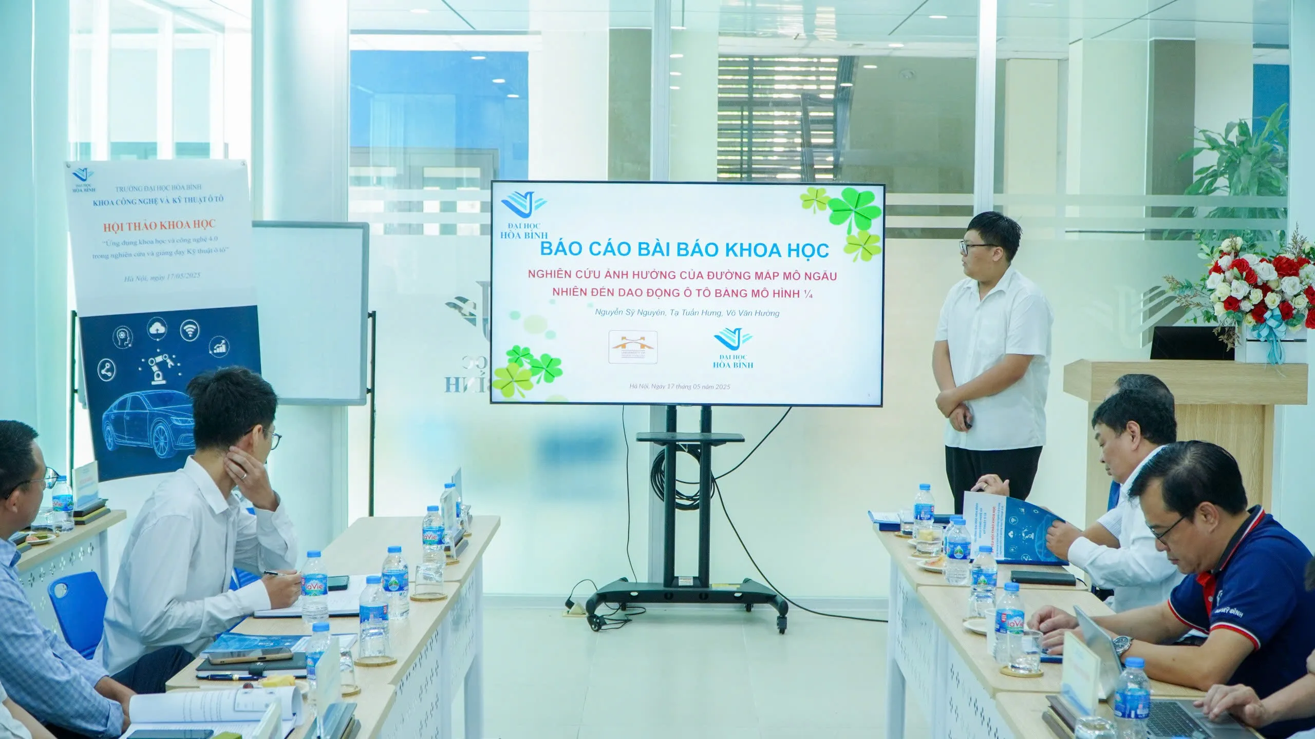 Nhằm tạo cơ hội giao lưu, chia sẻ các kết quả nghiên cứu khoa học và ứng dụng thực tiễn trong lĩnh vực Cơ khí – Động lực (Kỹ thuật ô tô, Cơ điện tử ô tô, Cơ khí động lực, Kỹ thuật cơ khí, Kỹ thuật cơ điện tử,…), sáng ngày 17/5/2025, Khoa Công nghệ và Kỹ thuật ô tô – Trường Đại học Hòa Bình tổ chức Hội thảo khoa học: “Ứng dụng khoa học và công nghệ 4.0 trong nghiên cứu và giảng dạy Kỹ thuật ô tô”. Hội thảo là diễn đàn để các giảng viên, nhà nghiên cứu, sinh viên trình bày và thảo luận các công trình nghiên cứu mới nhất, từ đó, thúc đẩy hoạt động nghiên cứu khoa học và ứng dụng thực tiễn.