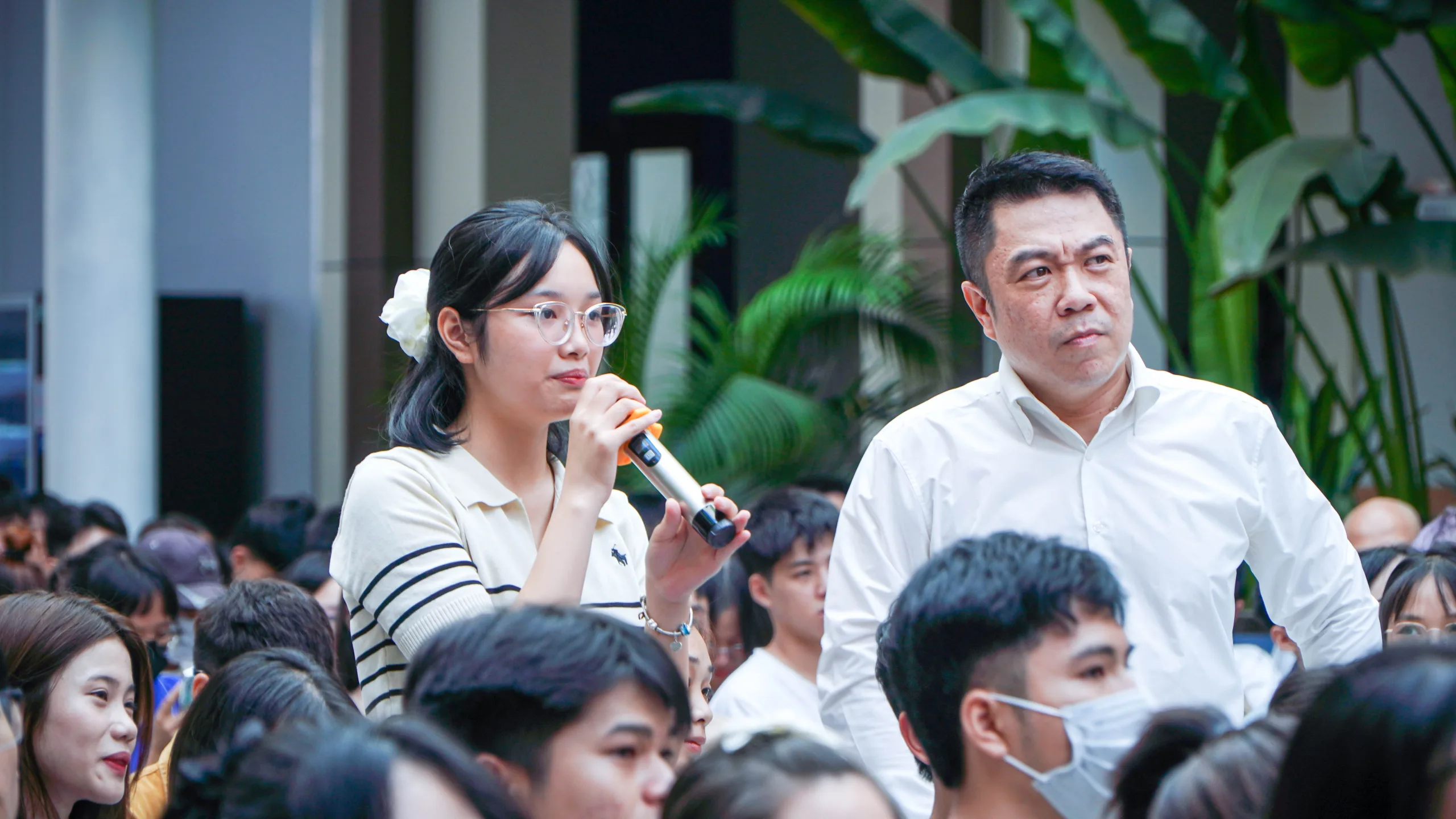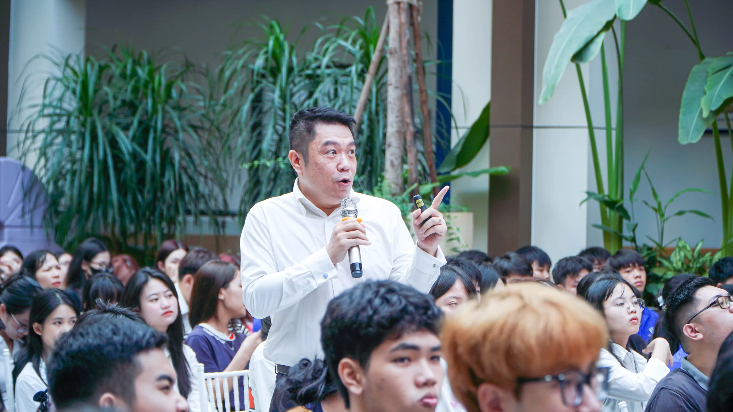 Đặc biệt, bài giảng không chỉ dừng lại ở lý thuyết mà còn lồng ghép nhiều ví dụ thực tiễn, giúp sinh viên dễ dàng hình dung cách ứng dụng AI vào công việc và cuộc sống. Bên cạnh khía cạnh công nghệ, nội dung nhân văn cũng được đề cao khi diễn giả khéo léo lồng ghép các câu chuyện lịch sử, sự hy sinh của các thế hệ đi trước, cùng tầm nhìn vượt thời đại của Chủ tịch Hồ Chí Minh về chuyển đổi xanh và phát triển bền vững. Qua đó, sinh viên không chỉ tiếp nhận tri thức công nghệ mà còn được định hướng một cách tiếp cận nhân văn và đạo đức trong việc ứng dụng AI trong bối cảnh hiện nay.