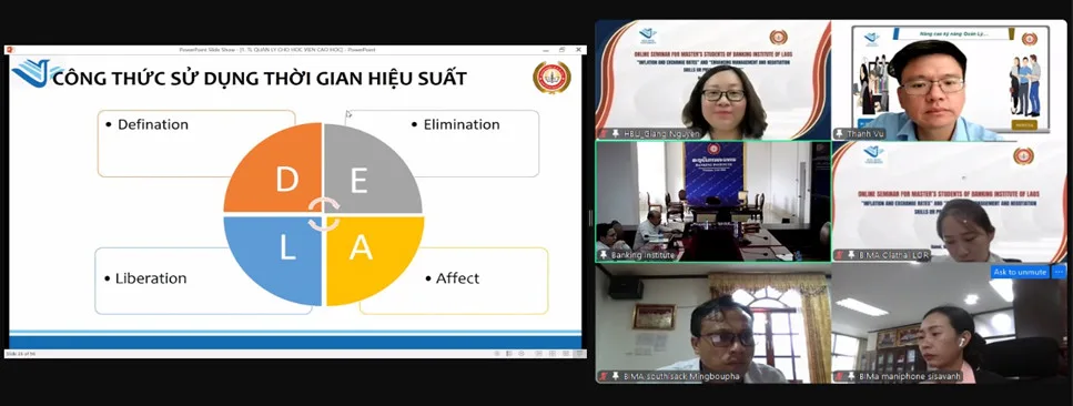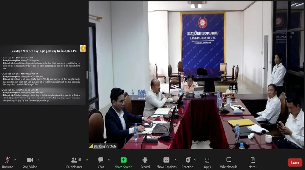 Khai giảng lớp bồi dưỡng kiến thức về lạm phát, tỷ giá hối đoái và nâng cao kỹ năng quản lý, đàm phán (trực tuyến) dành cho cán bộ Ngân hàng Nhà nước Lào và giảng viên, học viên Học viện Ngân hàng Lào