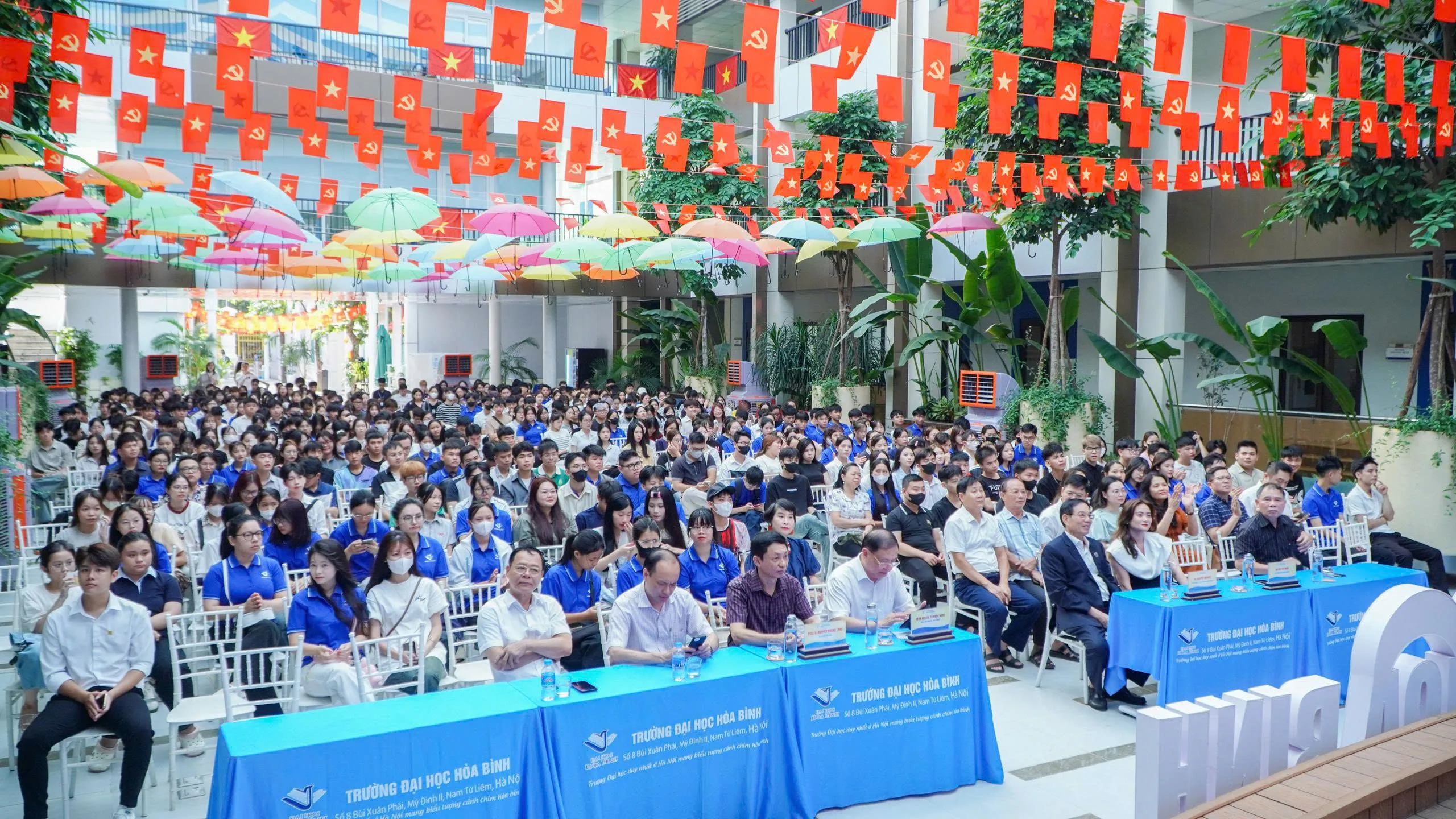 Sáng ngày 11/9/2024, Trường Đại học Hòa Bình đã long trọng tổ chức Lễ khai mạc Chương trình Kỹ năng mềm “Rạng rỡ Khát vọng” dành cho tân sinh viên Khoá 18. Hơn 1.000 sinh viên khoá mới đã có mặt, cùng tham gia một sự kiện sôi nổi, đầy hứng khởi, đánh dấu bước khởi đầu quan trọng trong hành trình học tập tại môi trường đại học.