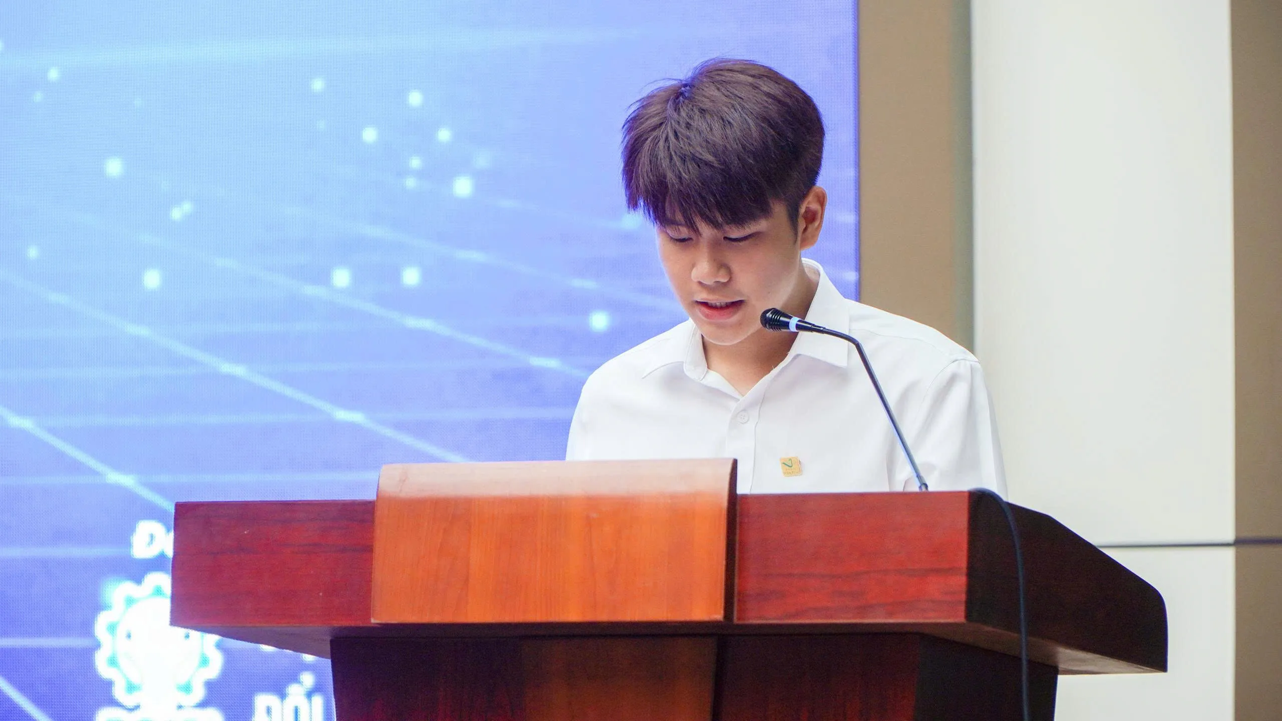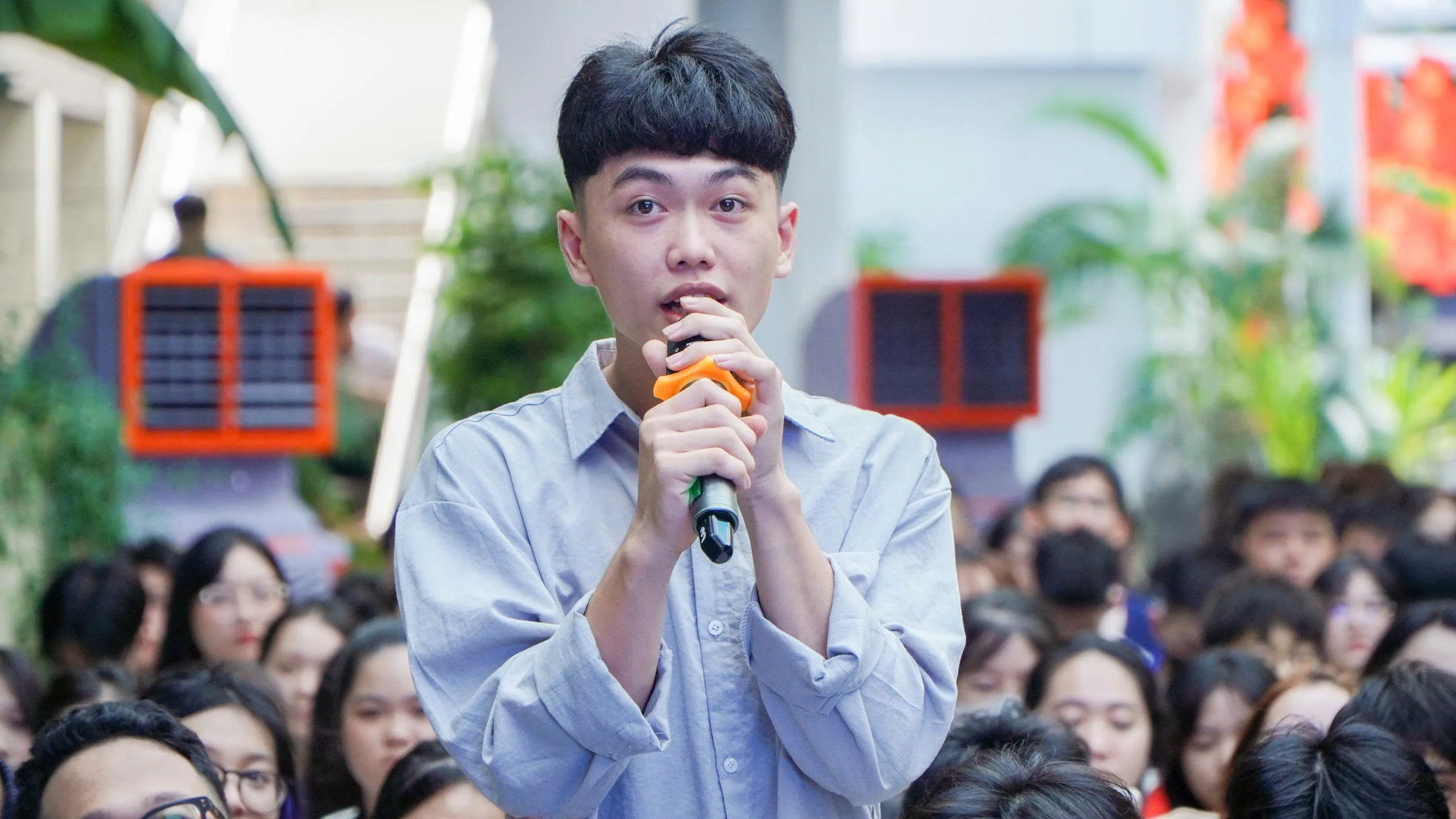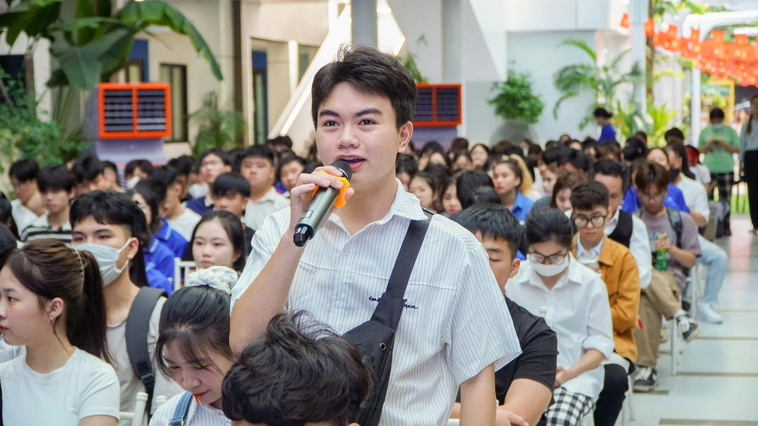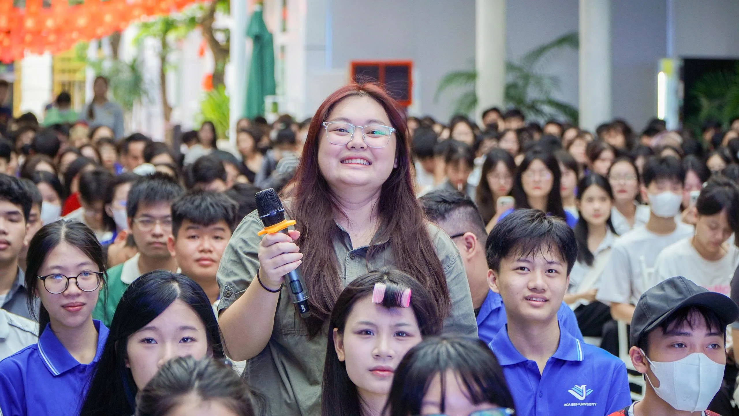 Đại diện cho hơn 1.500 tân sinh viên toàn trường, em Nguyễn Ngọc Linh – sinh viên Khoa Tiếng Trung Quốc – đã phát biểu cảm nghĩ, bày tỏ niềm tự hào khi trở thành sinh viên Đại học Hòa Bình, đồng thời kỳ vọng chương trình kỹ năng mềm sẽ tạo nền tảng vững chắc cho sự phát triển toàn diện của bản thân và bạn bè đồng khoá.