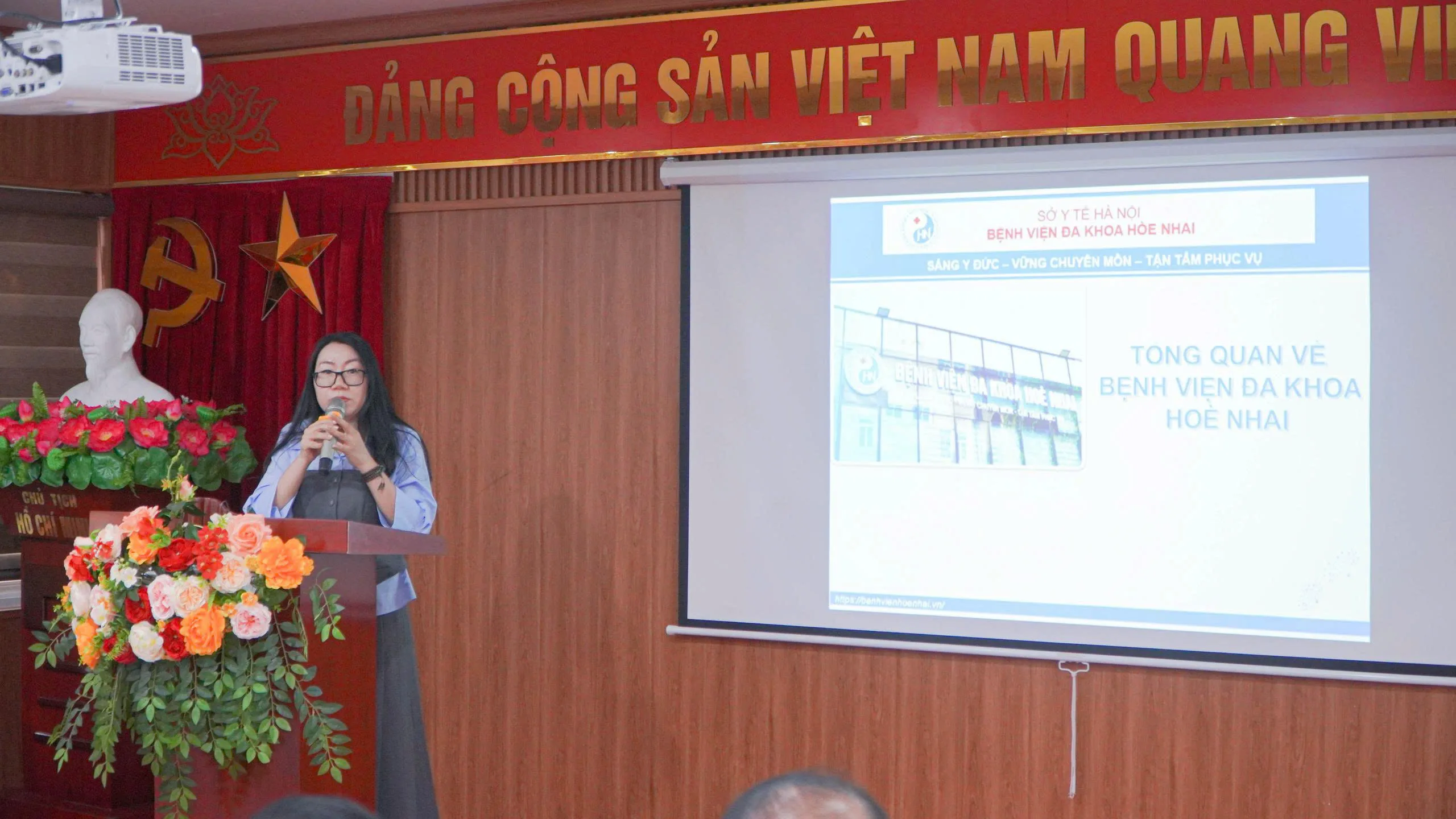 Mở đầu chương trình, ThS. Lại Thị Thu – Phó Trưởng phòng Tổ chức Hành chính Bệnh viện Đa khoa Hòe Nhai – đã giới thiệu tổng quan về quá trình hình thành, phát triển của Bệnh viện Đa khoa Hòe Nhai cũng như chia sẻ những nội dung liên quan đến công tác đào tạo thực hành hiện đang triển khai tại Bệnh viện.