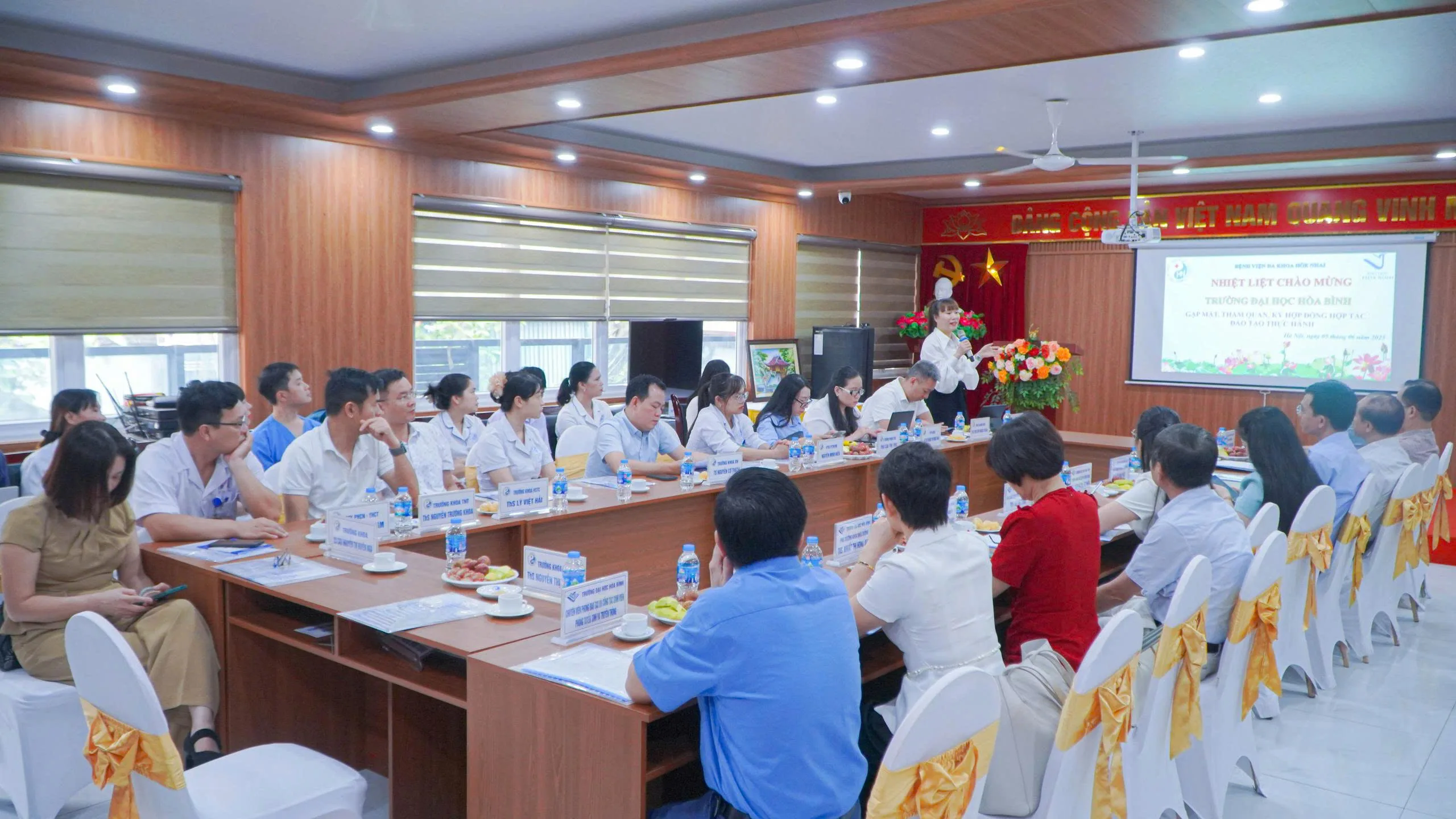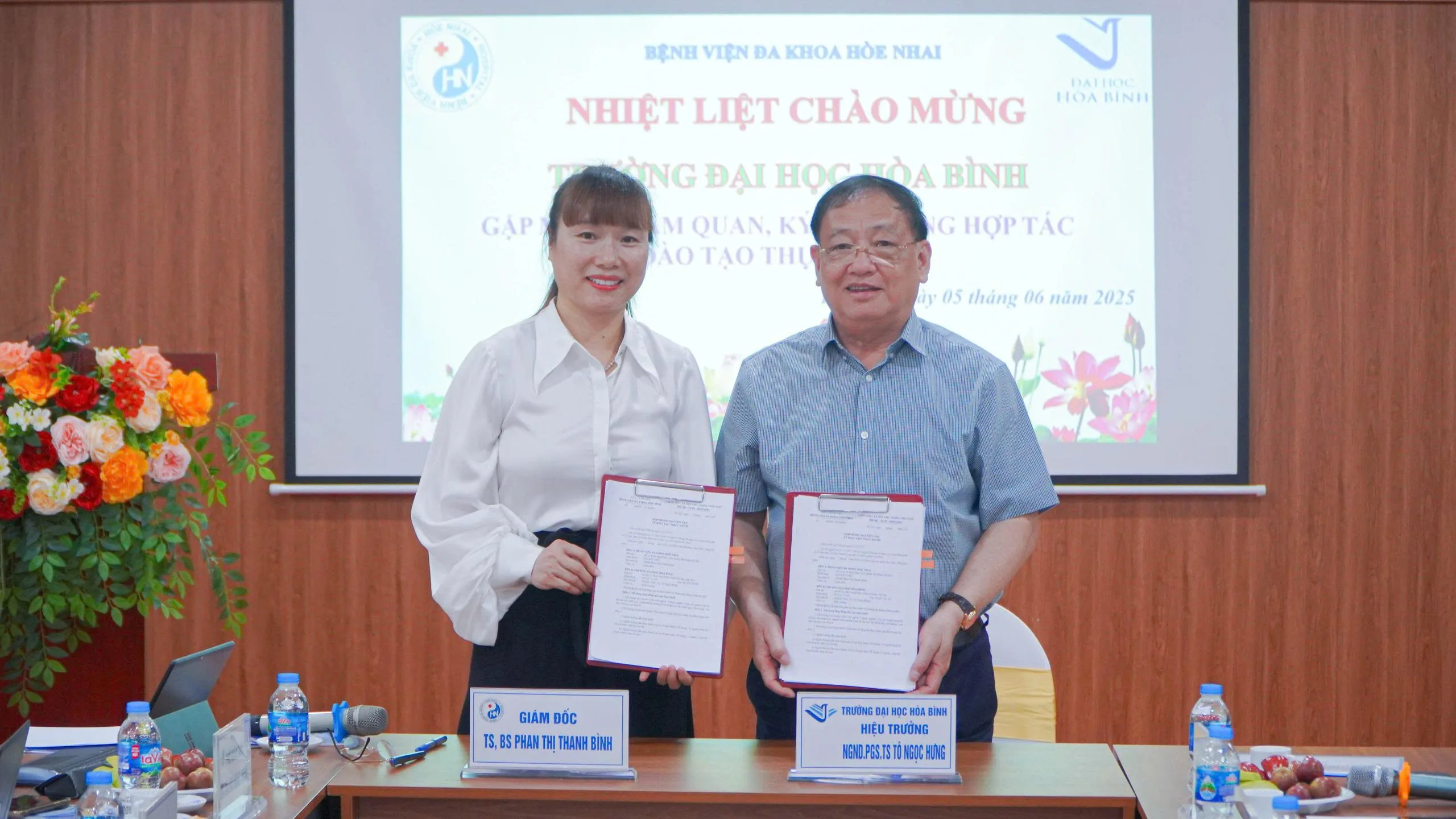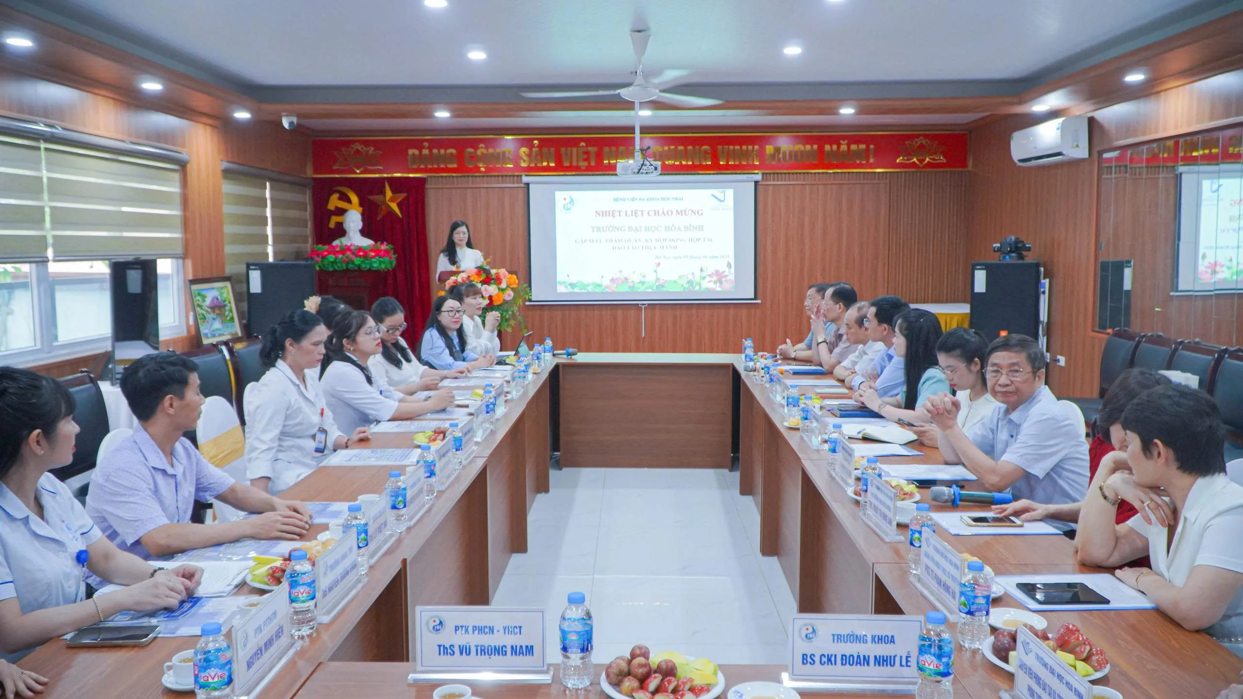 Sáng ngày 05/6/2025, Lãnh đạo Trường Đại học Hòa Bình đã có buổi làm việc với Ban Giám đốc Bệnh viện Đa khoa Hòe Nhai, cùng trao đổi sâu về tiềm năng hợp tác trên nhiều lĩnh vực liên quan đến công tác phối hợp tổ chức đào tạo thực hành các ngành lĩnh vực sức khỏe.