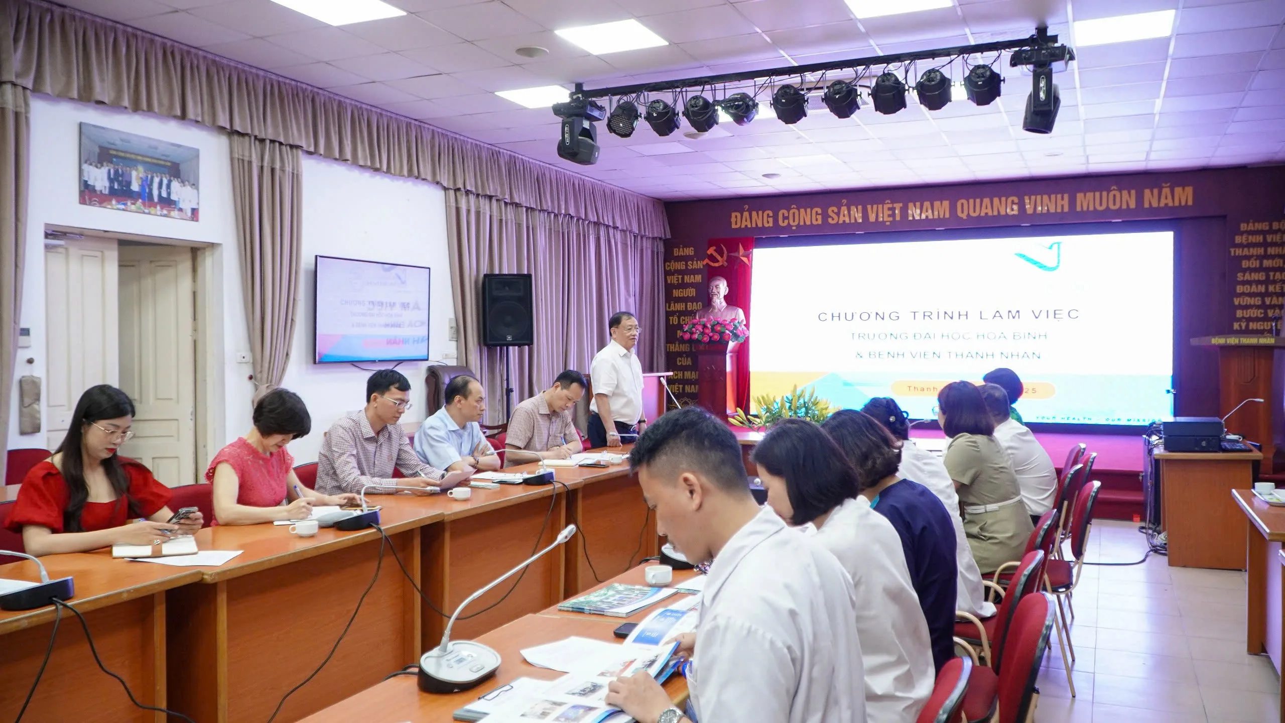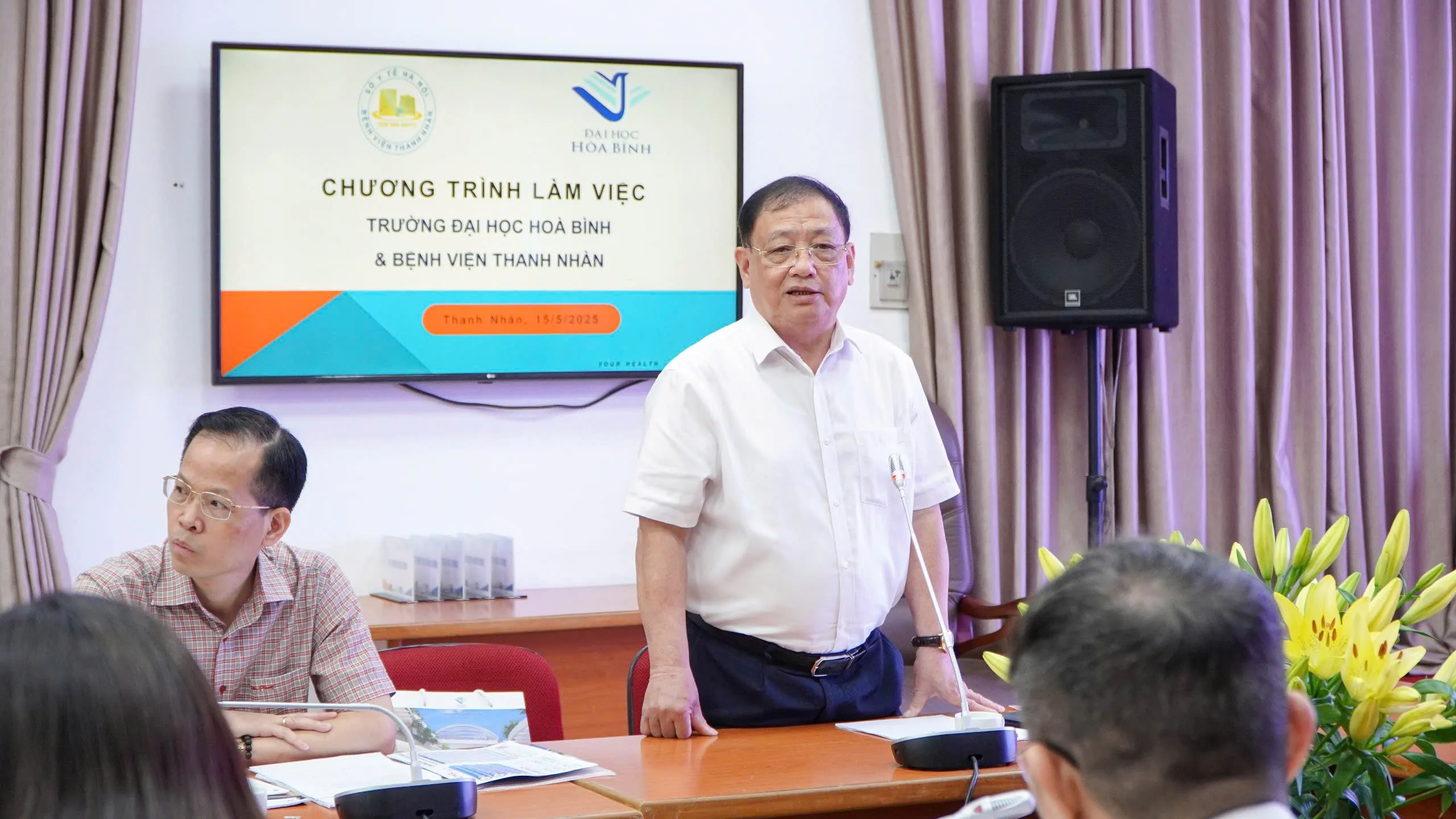Sáng ngày 15/5/2025, Lãnh đạo Trường Đại học Hòa Bình đã có buổi làm việc với Ban Giám đốc Bệnh viện Thanh Nhàn, cùng trao đổi sâu về tiềm năng hợp tác trên nhiều lĩnh vực liên quan đến hoạt động đào tạo, giảng dạy các chương trình đào tạo thuộc khối ngành Sức khỏe của Nhà trường.