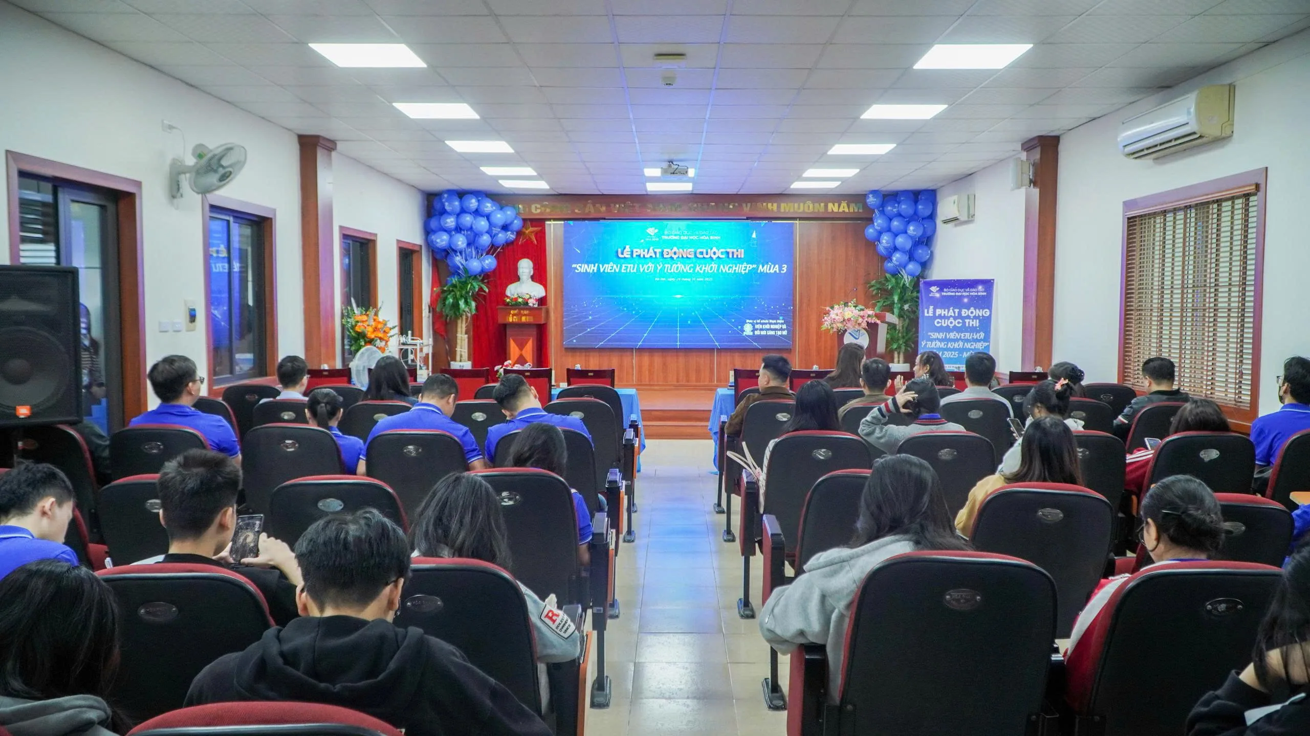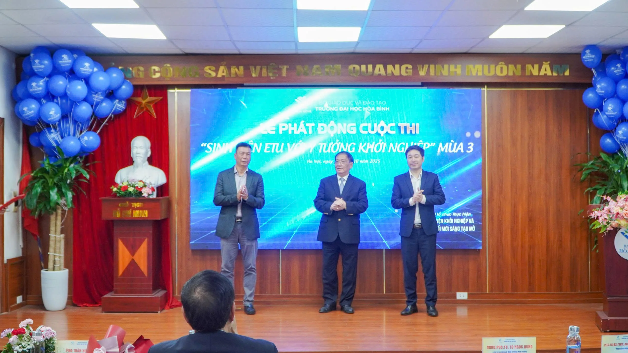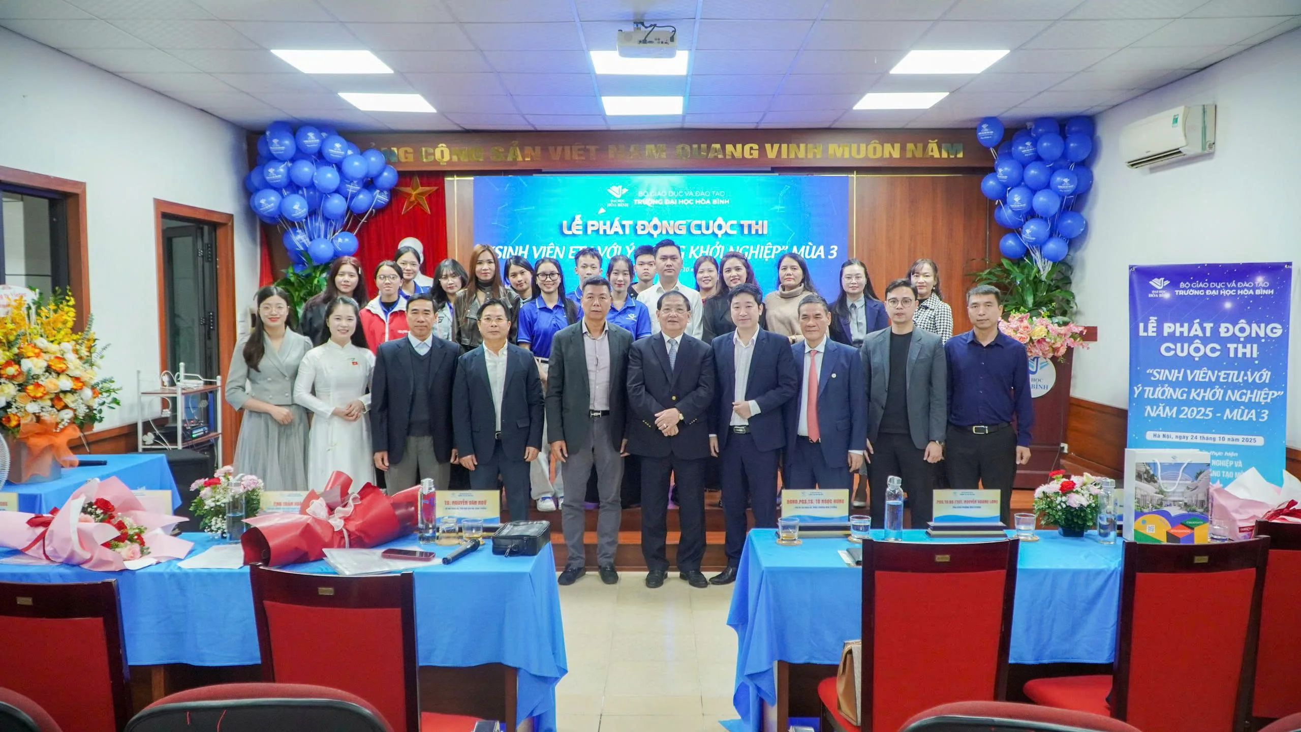 Tiếp nối thành công rực rỡ của hai mùa khởi nghiệp đầu tiên, sáng ngày 24/10/2025, Viện Khởi nghiệp & Đổi mới sáng tạo Mở – Trường Đại học Hòa Bình đã long trọng tổ chức Lễ phát động Cuộc thi “Sinh viên ETU với ý tưởng Khởi nghiệp” năm 2025 – Mùa 3 kết hợp Diễn đàn “Tư duy Khởi nghiệp trong kỷ nguyên Trí tuệ nhân tạo”. Chương trình nằm trong chuỗi hoạt động thúc đẩy tư duy đổi mới sáng tạo cho sinh viên, khuyến khích hình thành các dự án khởi nghiệp tiềm năng, đồng thời tăng cường năng lực ứng dụng công nghệ trong các mô hình kinh tế tương lai.
