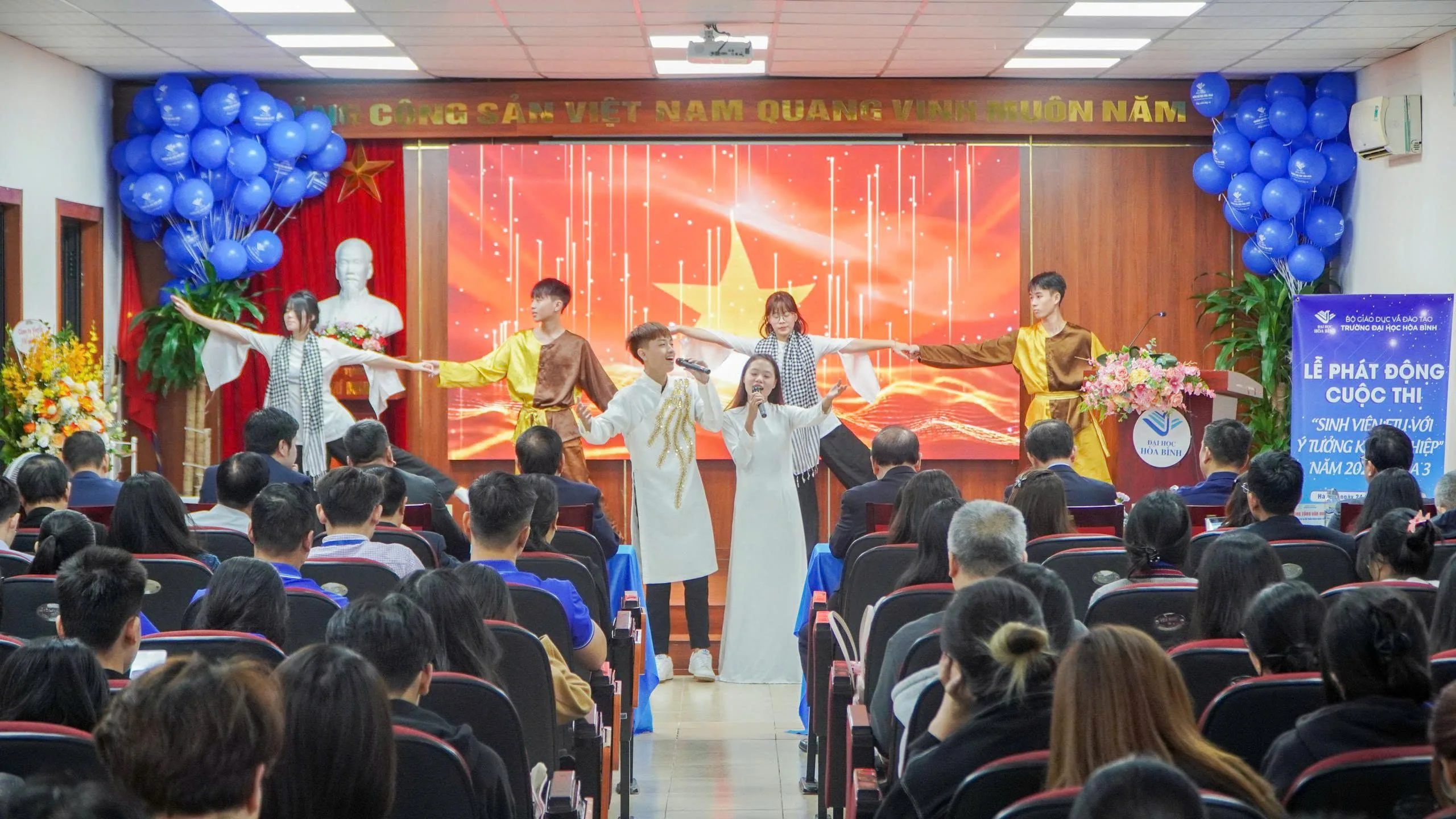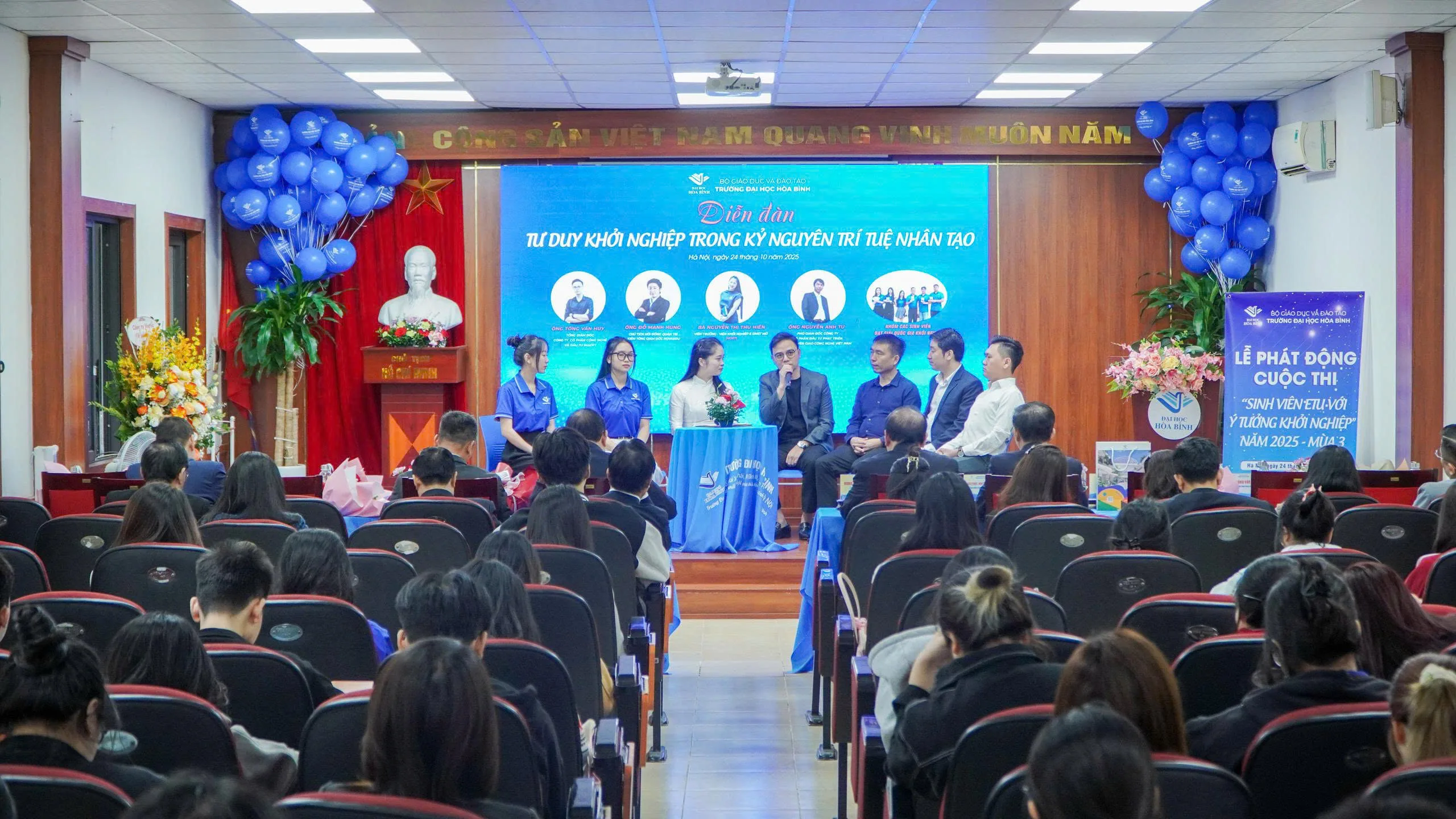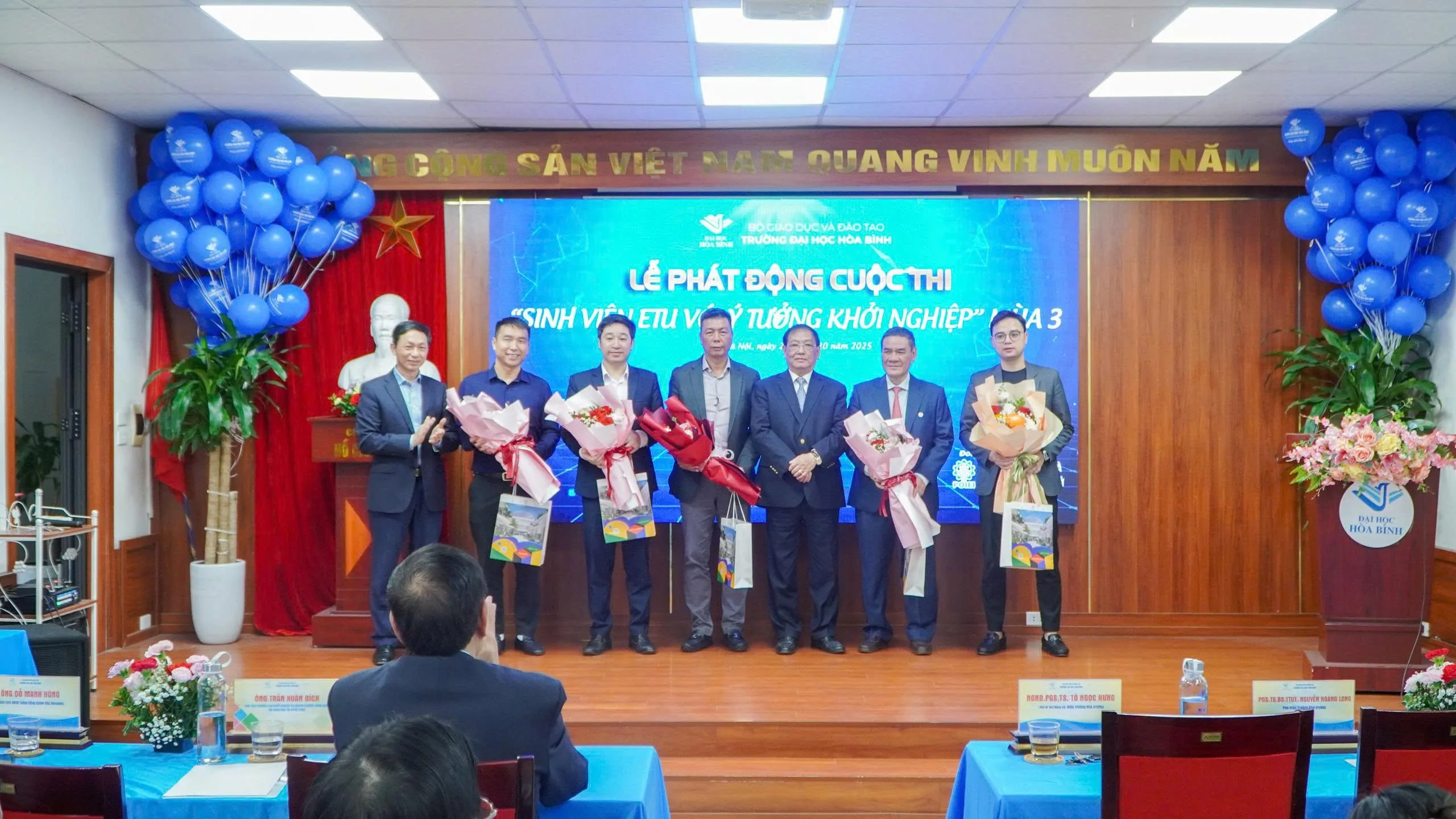 Tiếp nối thành công rực rỡ của hai mùa khởi nghiệp đầu tiên, sáng ngày 24/10/2025, Viện Khởi nghiệp & Đổi mới sáng tạo Mở – Trường Đại học Hòa Bình đã long trọng tổ chức Lễ phát động Cuộc thi “Sinh viên ETU với ý tưởng Khởi nghiệp” năm 2025 – Mùa 3 kết hợp Diễn đàn “Tư duy Khởi nghiệp trong kỷ nguyên Trí tuệ nhân tạo”. Chương trình nằm trong chuỗi hoạt động thúc đẩy tư duy đổi mới sáng tạo cho sinh viên, khuyến khích hình thành các dự án khởi nghiệp tiềm năng, đồng thời tăng cường năng lực ứng dụng công nghệ trong các mô hình kinh tế tương lai.
