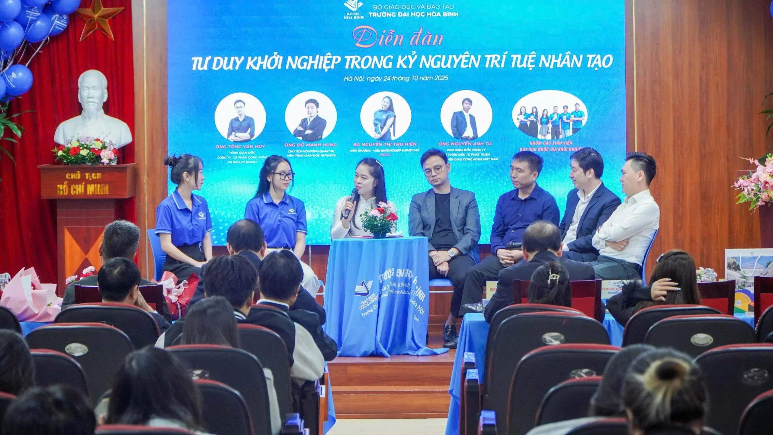 Trong bối cảnh cuộc Cách mạng công nghiệp lần thứ tư và đặc biệt là sự bùng nổ của Trí tuệ nhân tạo (AI) đang tác động mạnh mẽ đến mọi lĩnh vực của đời sống, tư duy khởi nghiệp của sinh viên ngày nay đang thay đổi sâu sắc. Khởi nghiệp không chỉ là tạo ra một mô hình kinh doanh mới, mà còn là hành trình hình thành tư duy sáng tạo, năng lực thích ứng, kỹ năng giải quyết vấn đề và khát vọng tạo giá trị cho cộng đồng. Nhận thức được điều đó, Trường Đại học Hòa Bình đã và đang đẩy mạnh hệ sinh thái khởi nghiệp đổi mới sáng tạo trong Nhà trường, tạo môi trường kết nối giữa sinh viên – chuyên gia – doanh nghiệp – cơ quan quản lý Nhà nước.
