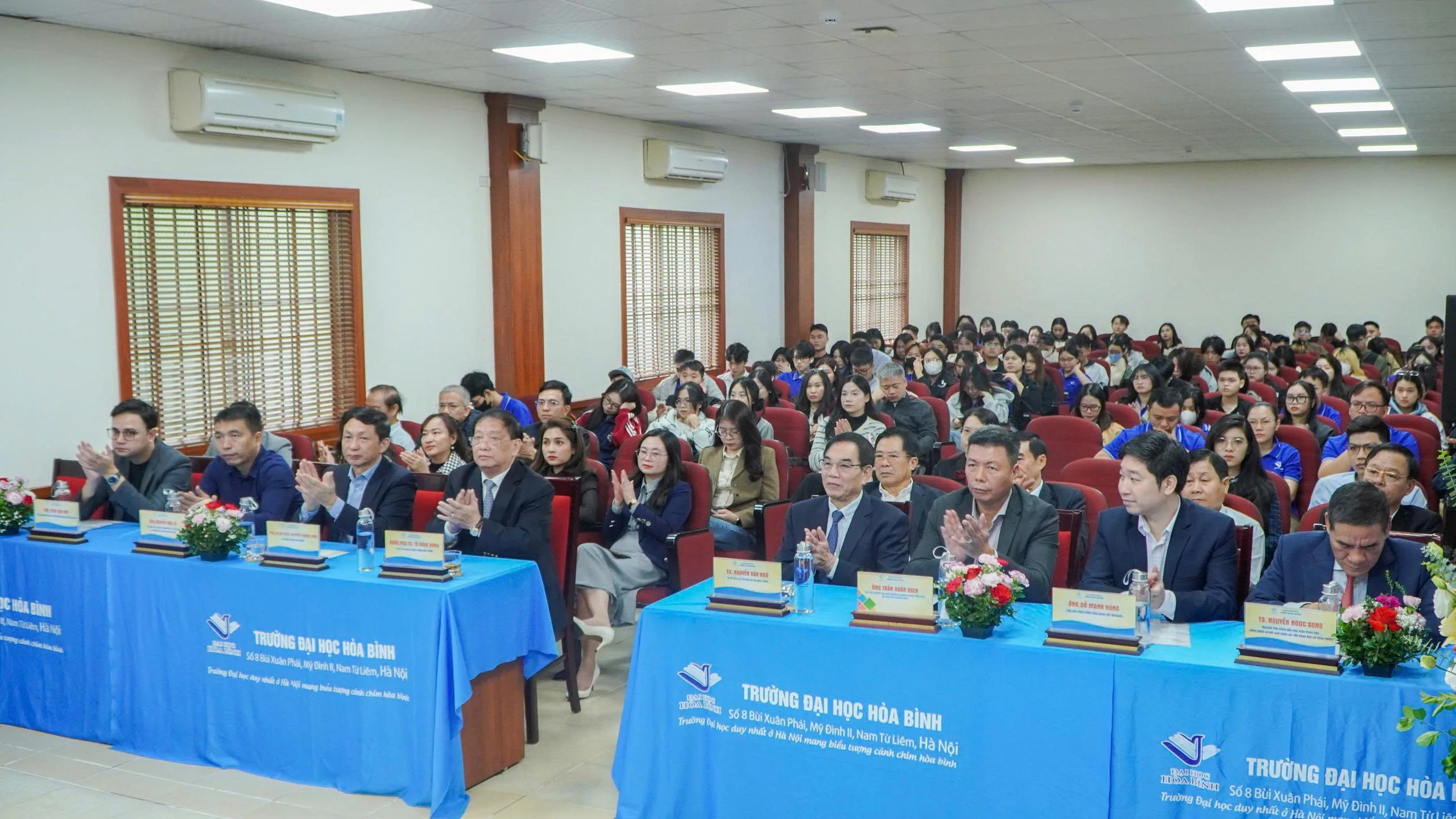 Buổi lễ vinh dự có sự tham dự của các Lãnh đạo Bộ, doanh nghiệp, chuyên gia, cơ quan truyền thông và lãnh đạo Trường Đại học Hòa Bình.