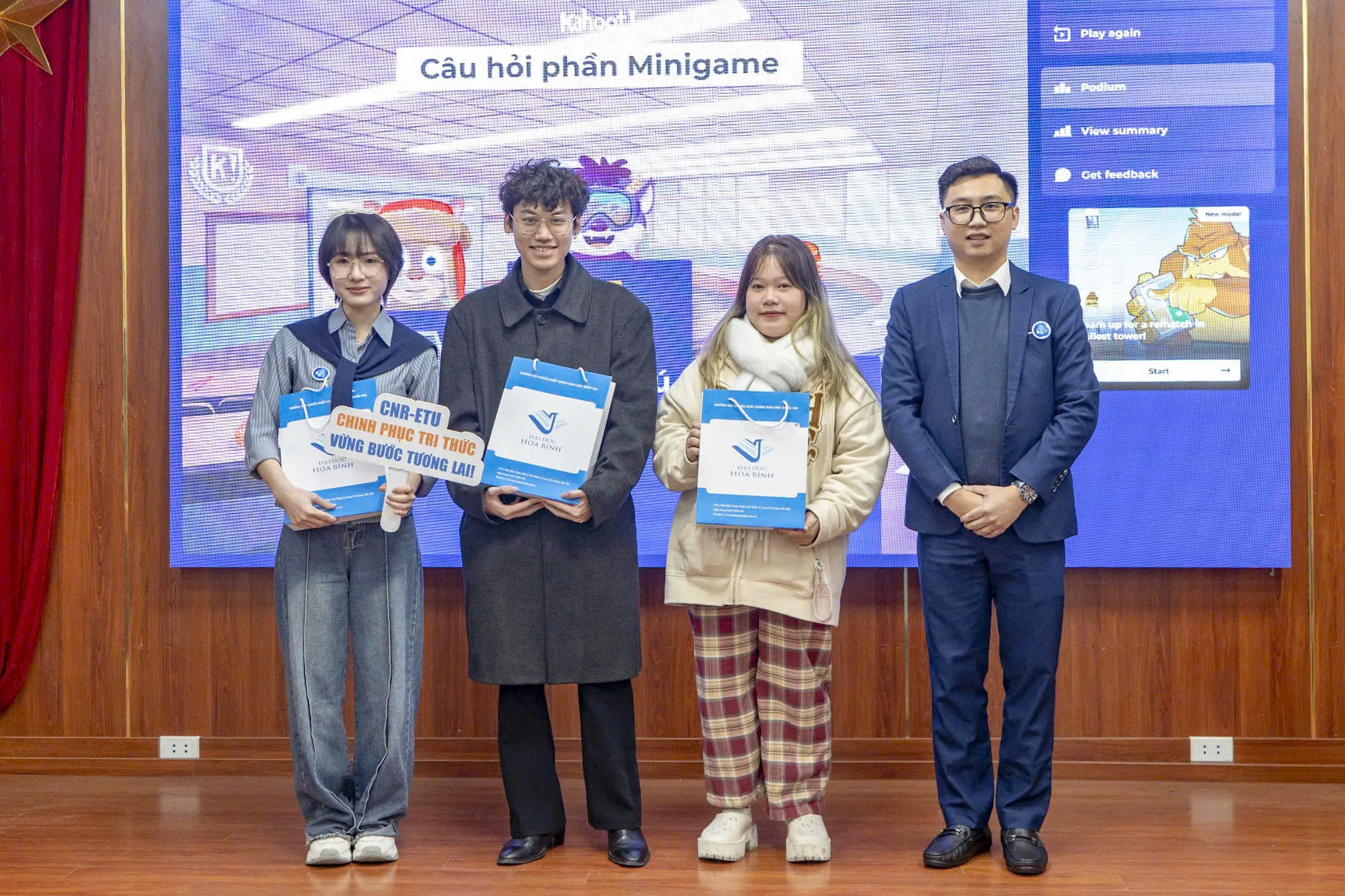 Bên cạnh những hoạt động chính nói trên, lễ ra mắt CLB CNR-ETU còn tổ chức mini game dành cho sinh viên. Thông qua các trò chơi mang tính học thuật và sáng tạo, các bạn sinh viên có cơ hội thử thách bản thân, làm quen với những người bạn cùng chí hướng và nhận được những phần quà hấp dẫn. Đây cũng là dịp để khuyến khích tinh thần đồng đội, khả năng tư duy và sự nhạy bén trong nghiên cứu khoa học.