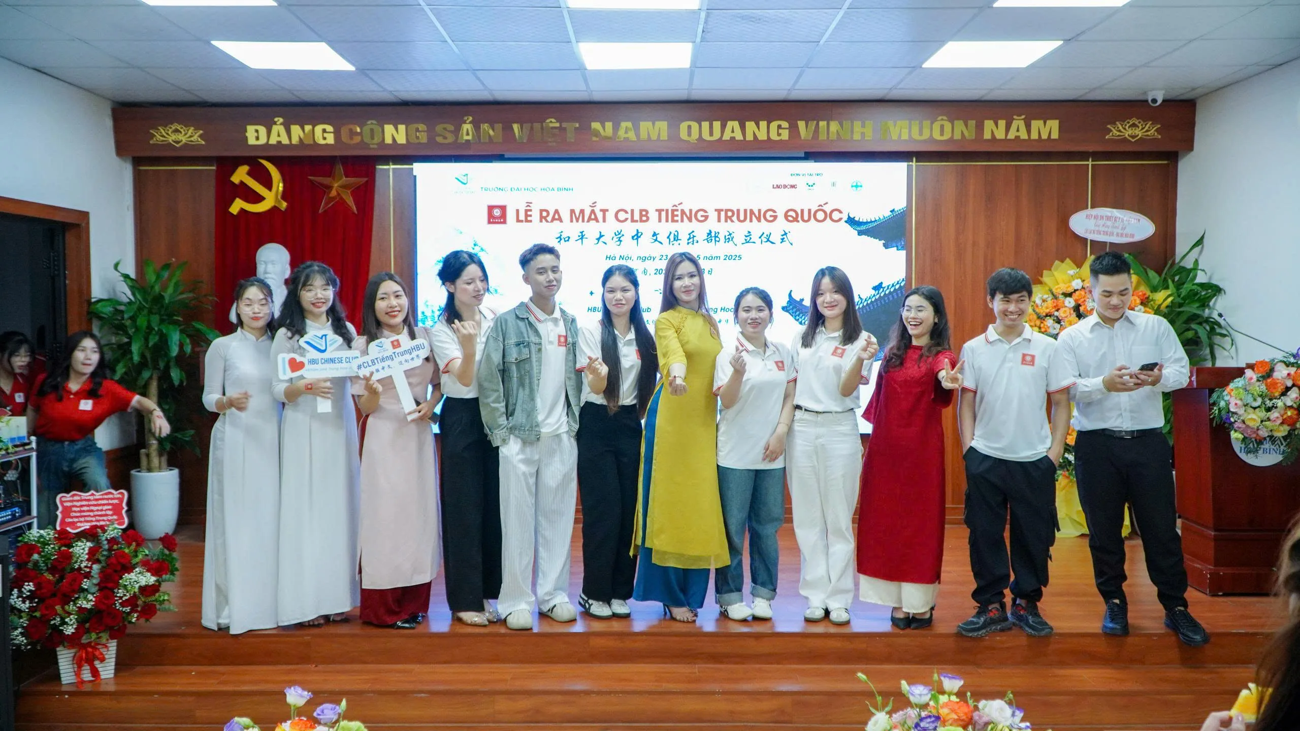 Ngày 23 tháng 5 năm 2025, tại Hội trường tầng 3, Trường Đại học Hòa Bình đã tổ chức Lễ ra mắt Câu lạc bộ Tiếng Trung Quốc (HBU Chinese Club) trong không khí trang trọng và ấm áp. Sự kiện đánh dấu một bước ngoặt quan trọng trong việc phát triển hoạt động ngoại khóa, tạo môi trường học tập đa văn hóa và sáng tạo cho sinh viên yêu thích tiếng Trung và văn hóa Trung Quốc.