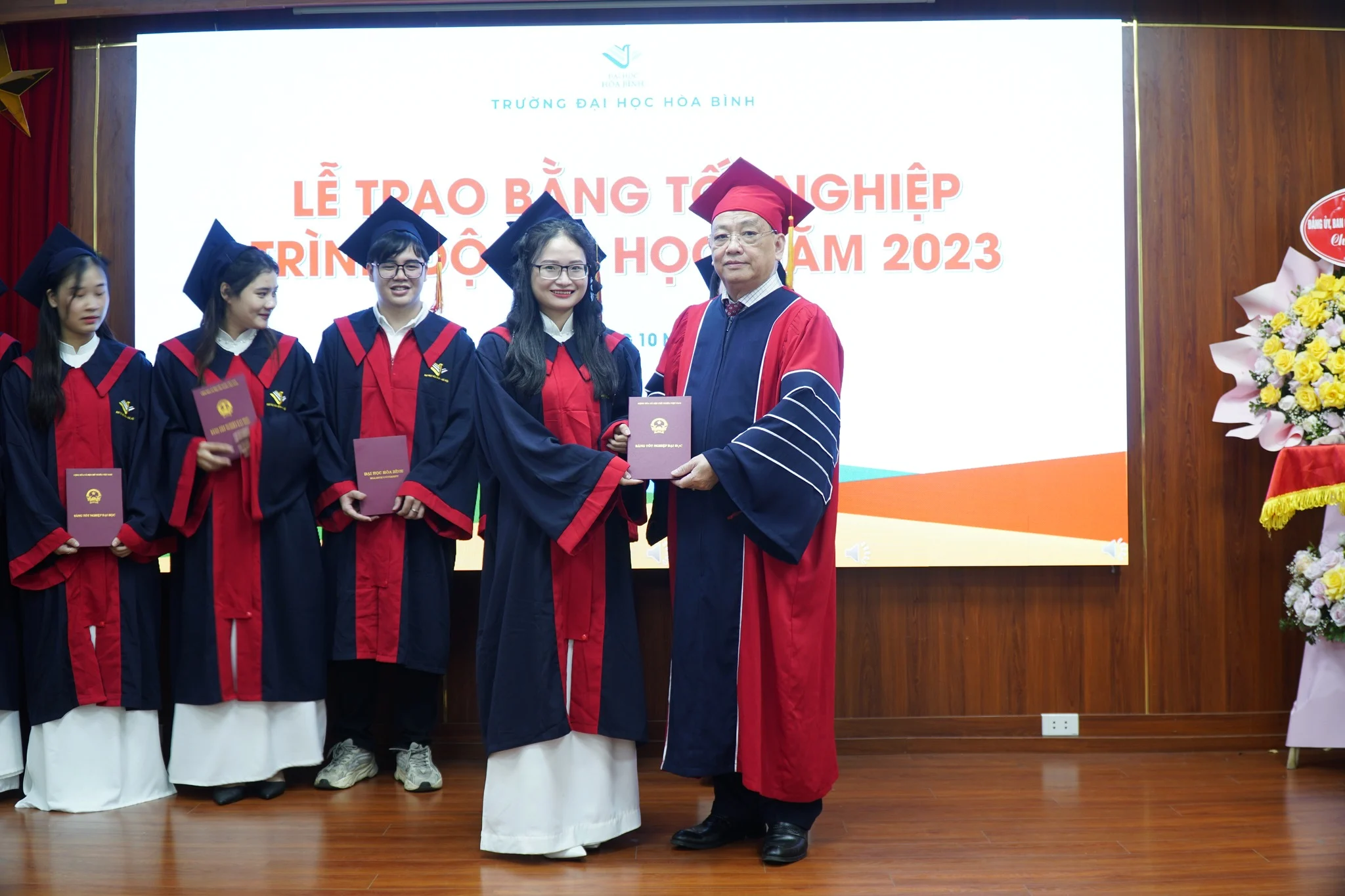 ĐHHB– Ngày 07/10/2023, tại Hội trường tầng 3 – Trường Đại học Hoà Bình đã long trọng tổ chức Lễ trao bằng tốt nghiệp cho các Tân cử nhân năm học 2923. Đây là thời khắc đánh dấu cho sự trưởng thành và bước sang chặng đường mới của mỗi sinh viên tốt nghiệp.