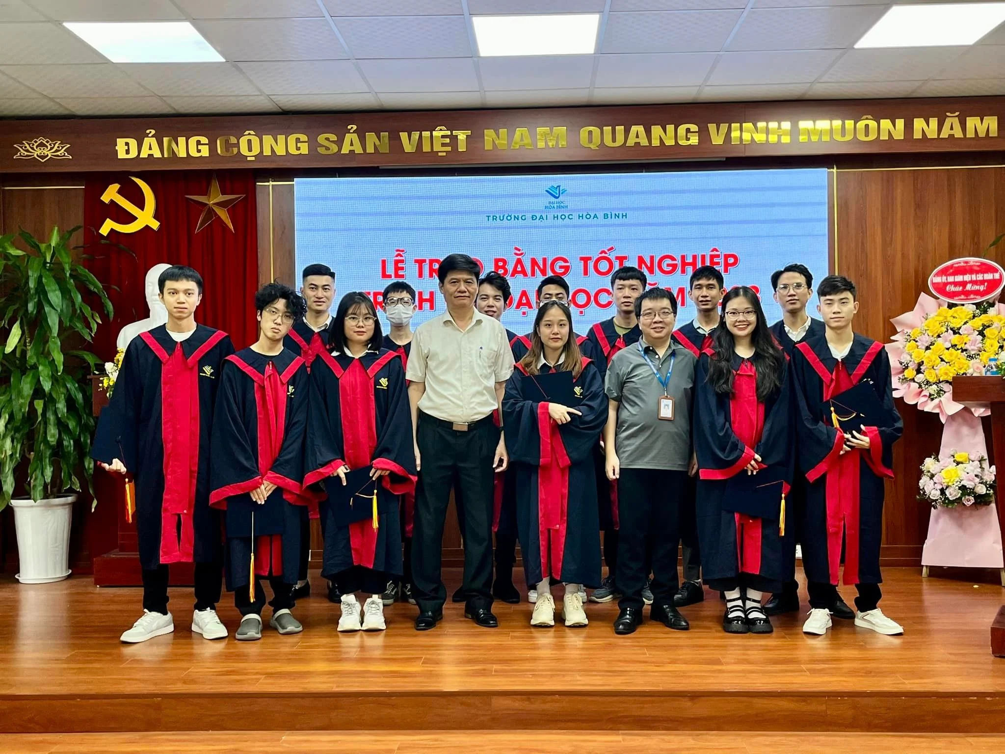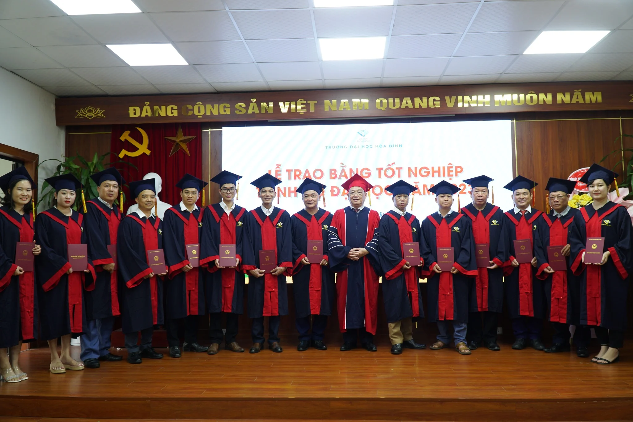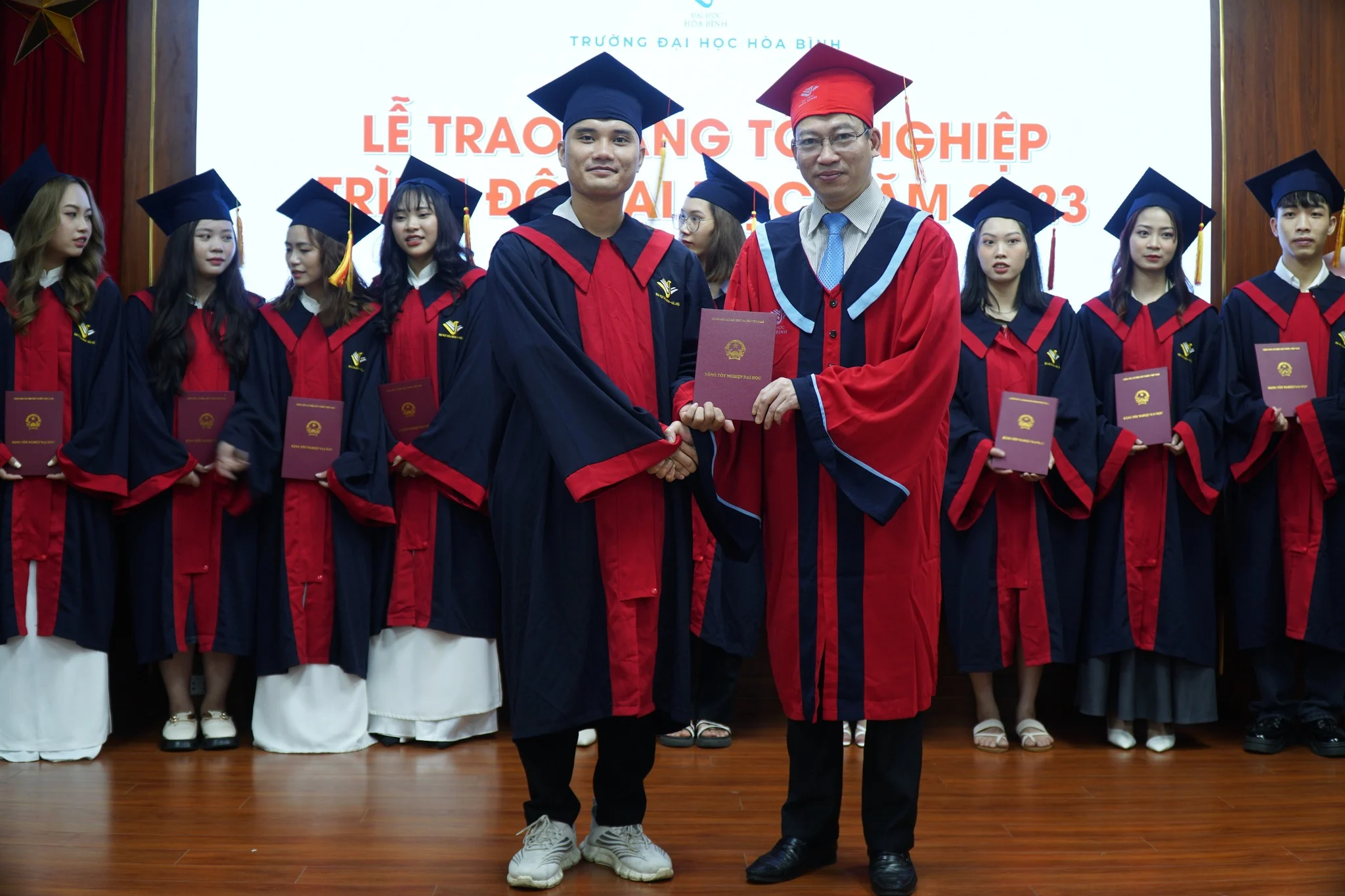 Tham dự buổi Lễ, Đại diện Trường Đại học Hoà Bình có TS. Nguyễn Văn Ngữ – Bí thư Đảng uỷ – Chủ tịch Hội đồng trường, NGND.PGS.TS Tô Ngọc Hưng – Phó Bí thư Đảng ủy – Hiệu trưởng Nhà trường; GS.TS Đào Văn Đông – Phó hiệu trưởng thường trực Nhà trường – cùng các thầy cô giáo là trưởng, phó các Khoa, Phòng, cùng 193 Tân cử nhân và người thân của các sinh viên.