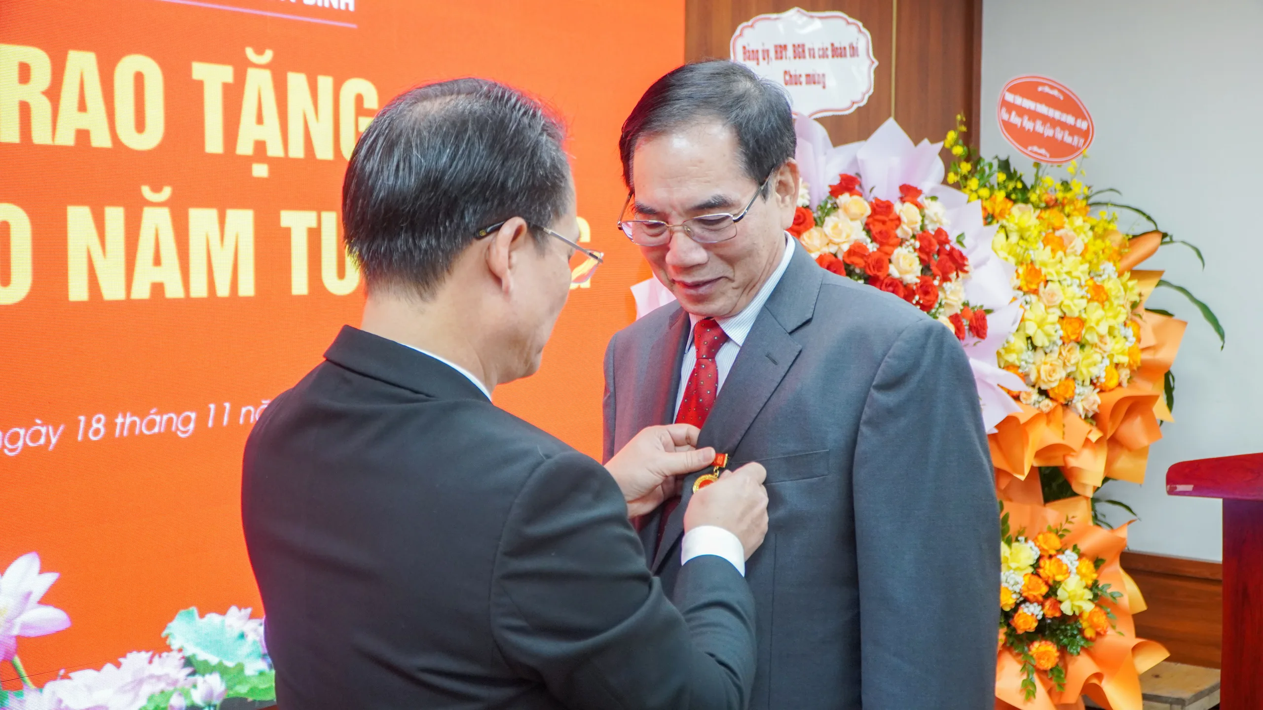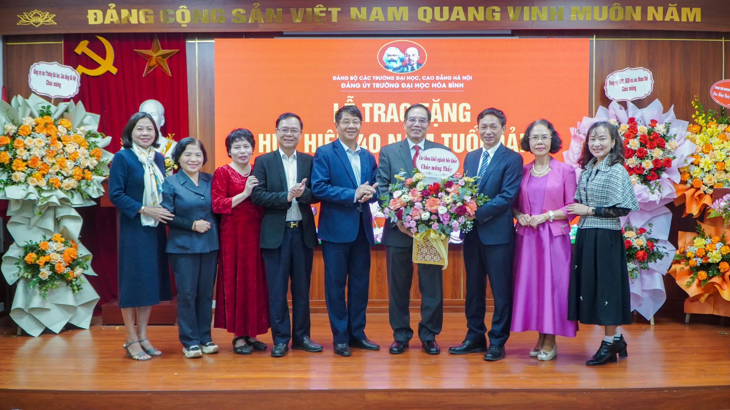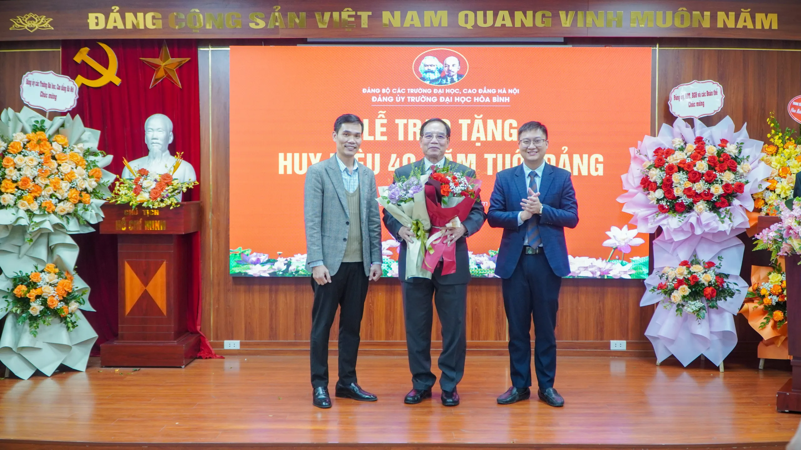 Lễ trao tặng huy hiệu 40 năm tuổi Đảng cho Đồng chí Nguyễn Văn Ngữ – Bí thư Đảng ủy, Phó Chủ tịch Hội đồng Trường Đại học Hòa Bình