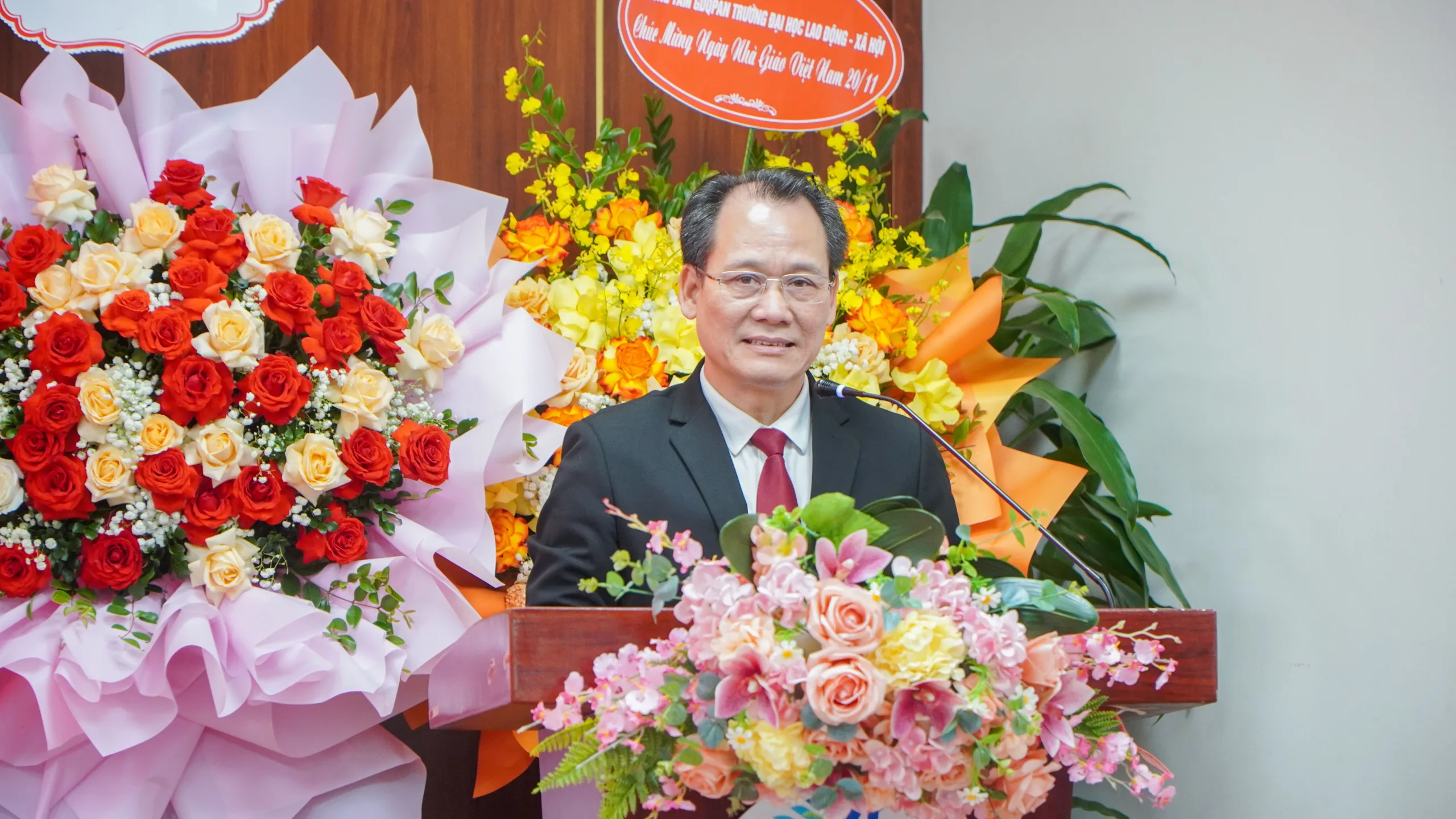 Cũng tại buổi lễ, Ông Nguyễn Anh Tuấn – Chủ tịch Hội đồng trường; NGND.PGS.TS. Tô Ngọc Hưng – Hiệu trưởng Nhà trường, ThS. Nguyễn Xuân Sơn – Chủ tịch Công Đoàn trường, ThS. Nguyễn Toàn Định – Bí thư Đoàn Thanh niên Nhà trường và Lãnh đạo các Khoa/Phòng ban cũng đã tặng hoa chúc mừng Đồng chí Nguyễn Văn Ngữ nhận huy hiệu 40 năm tuổi đảng.
