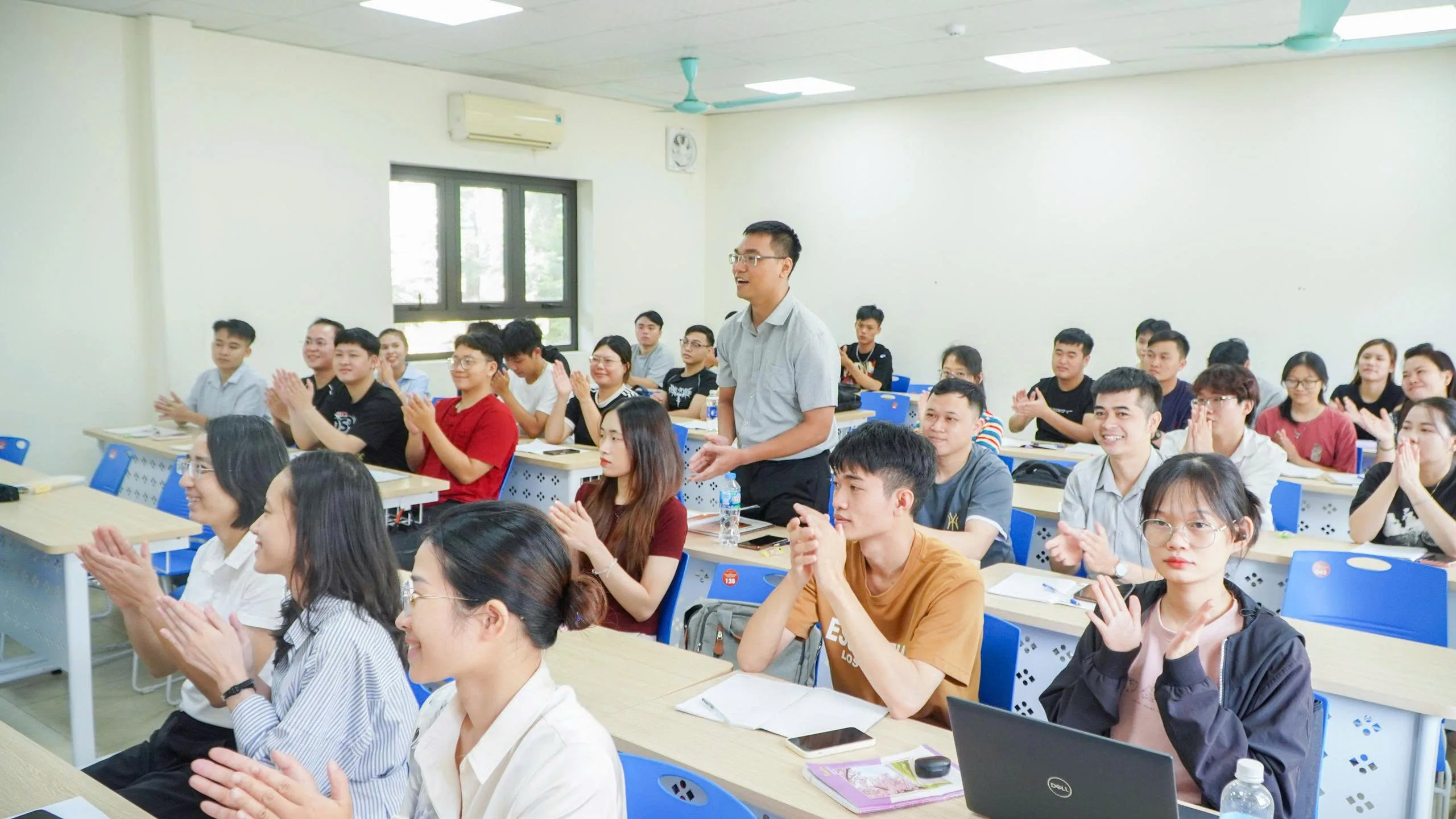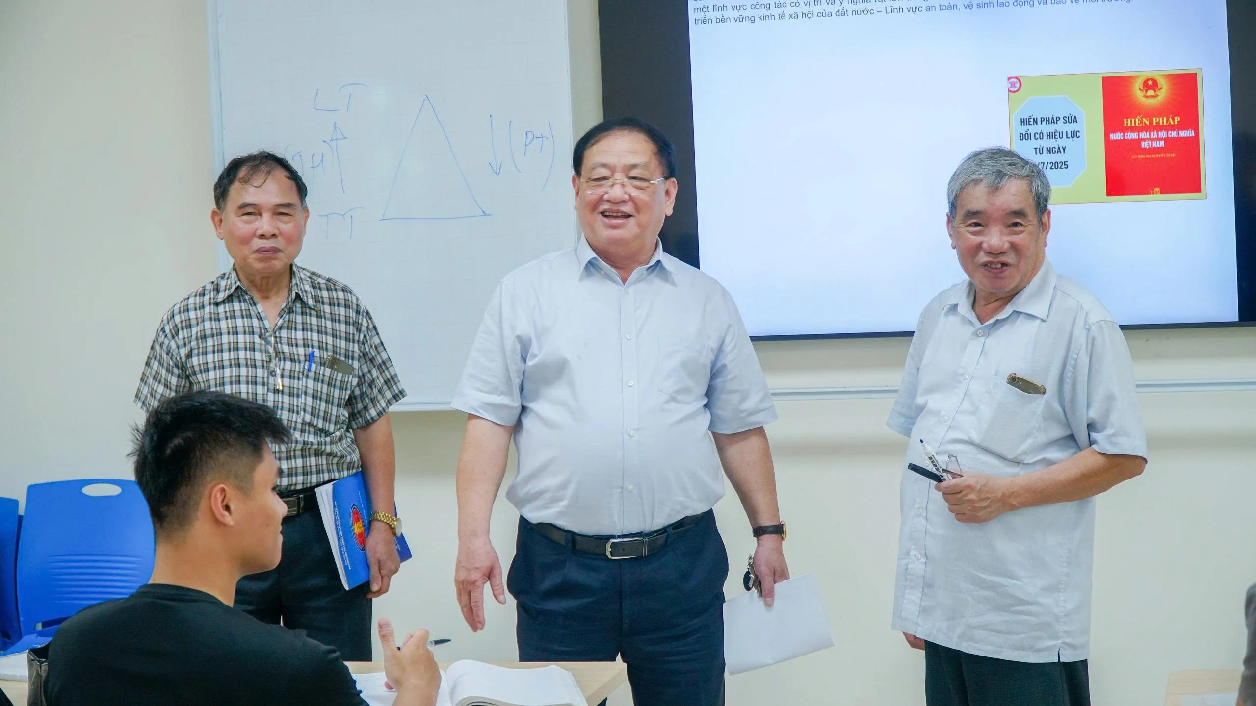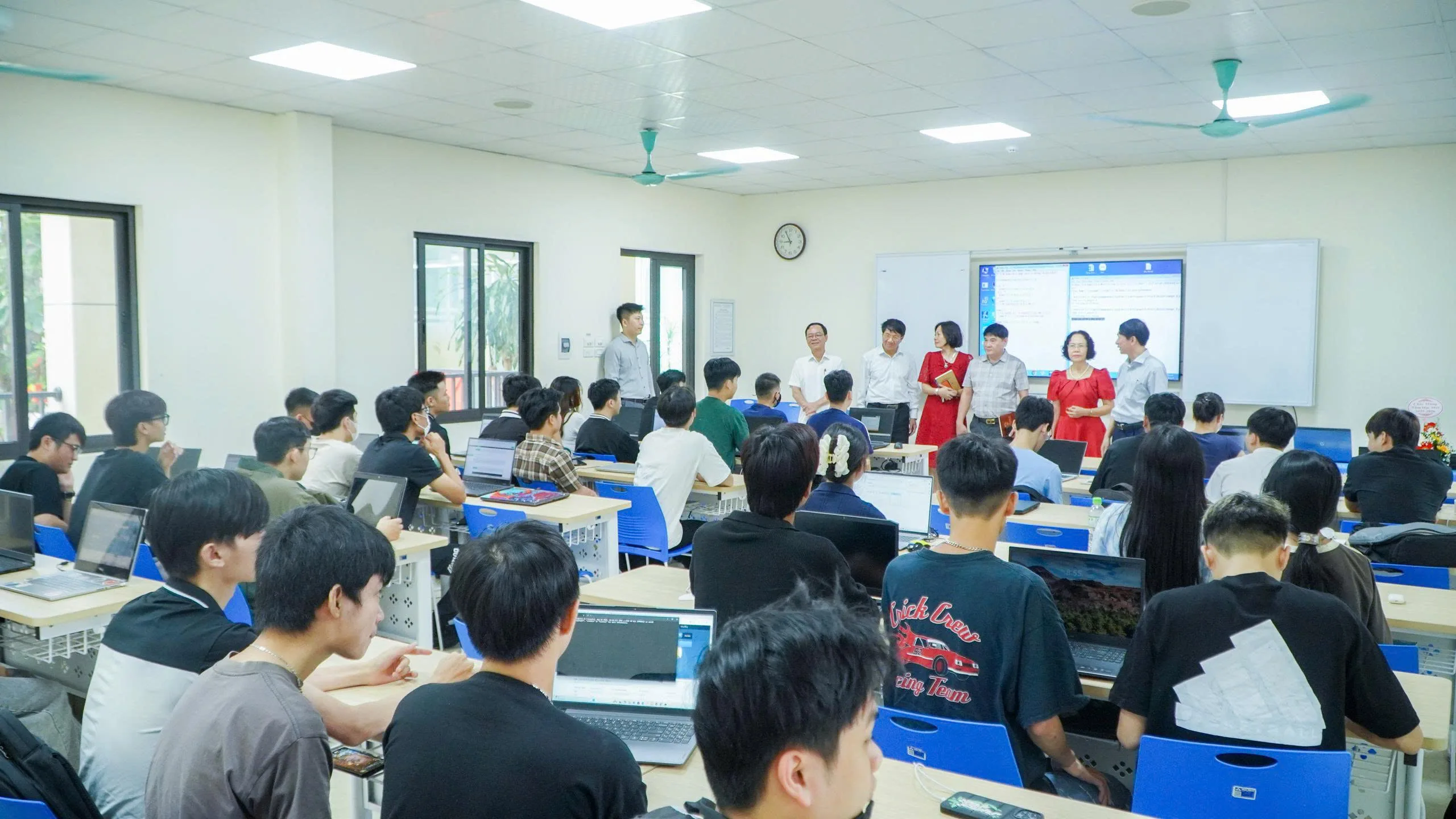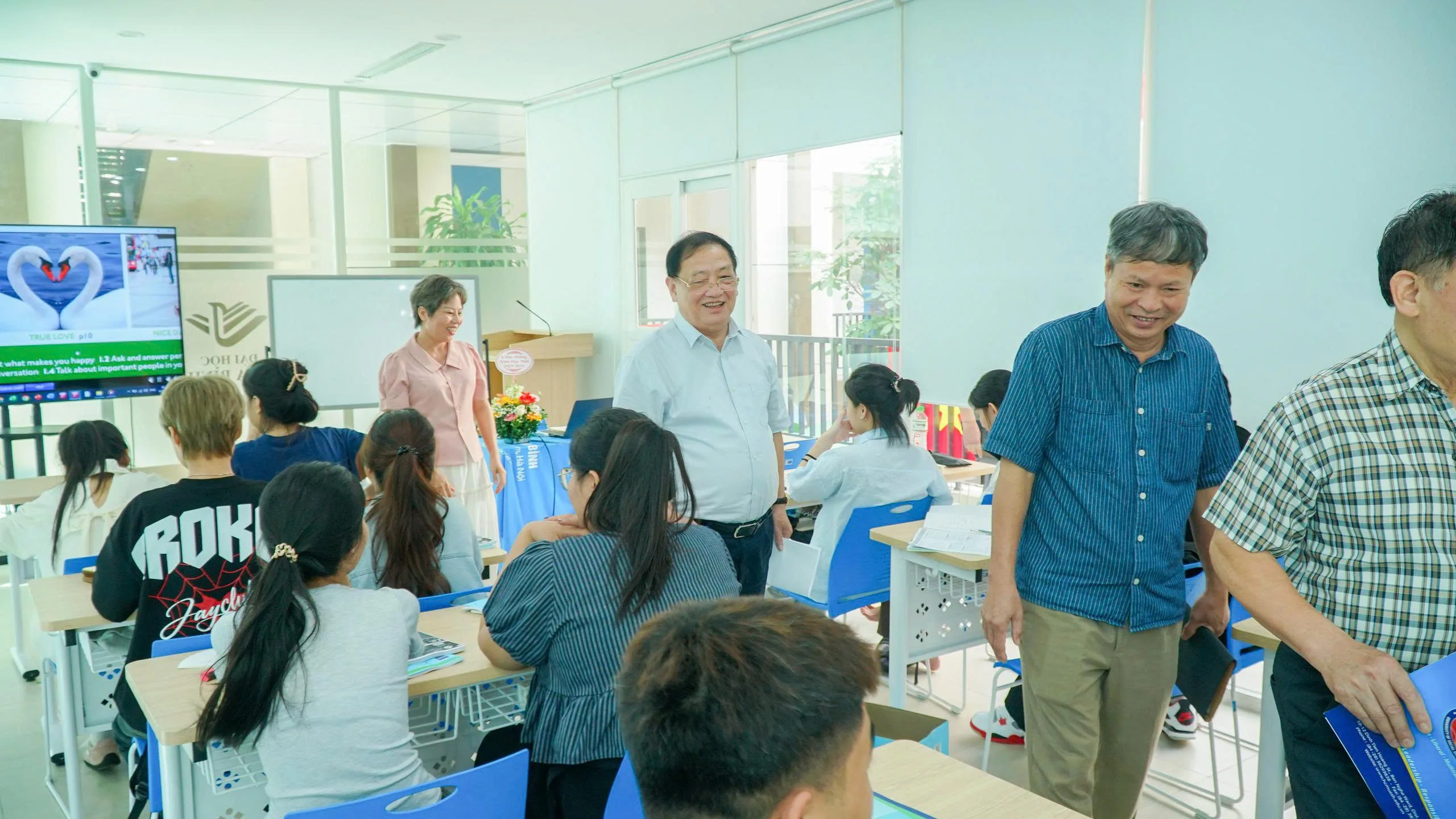Không phải trong giảng đường lớn hay tại những buổi lễ long trọng, mà ngay tại từng lớp học, Thầy Cô đã trực tiếp đến thăm, gửi lời chào đón và chúc mừng năm học mới tới sinh viên. Với nụ cười gần gũi, ánh mắt thân tình và những câu hỏi giản dị: “Các em có khỏe không? Kỳ nghỉ vừa rồi thế nào? Đã sẵn sàng cho hành trình mới chưa?”, Thầy Cô đã mang đến một bầu không khí ấm áp, khiến ngày đầu tiên trở lại trường trở thành một kỷ niệm đáng nhớ.