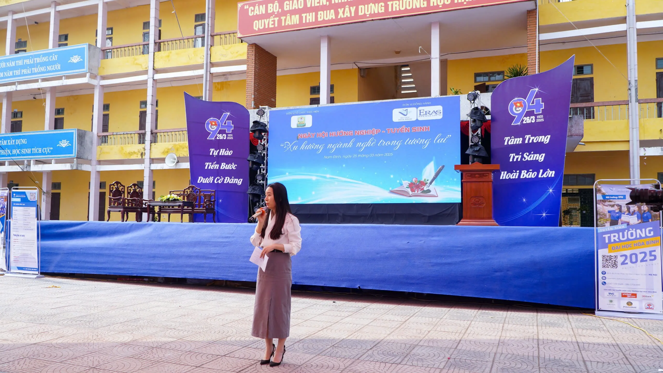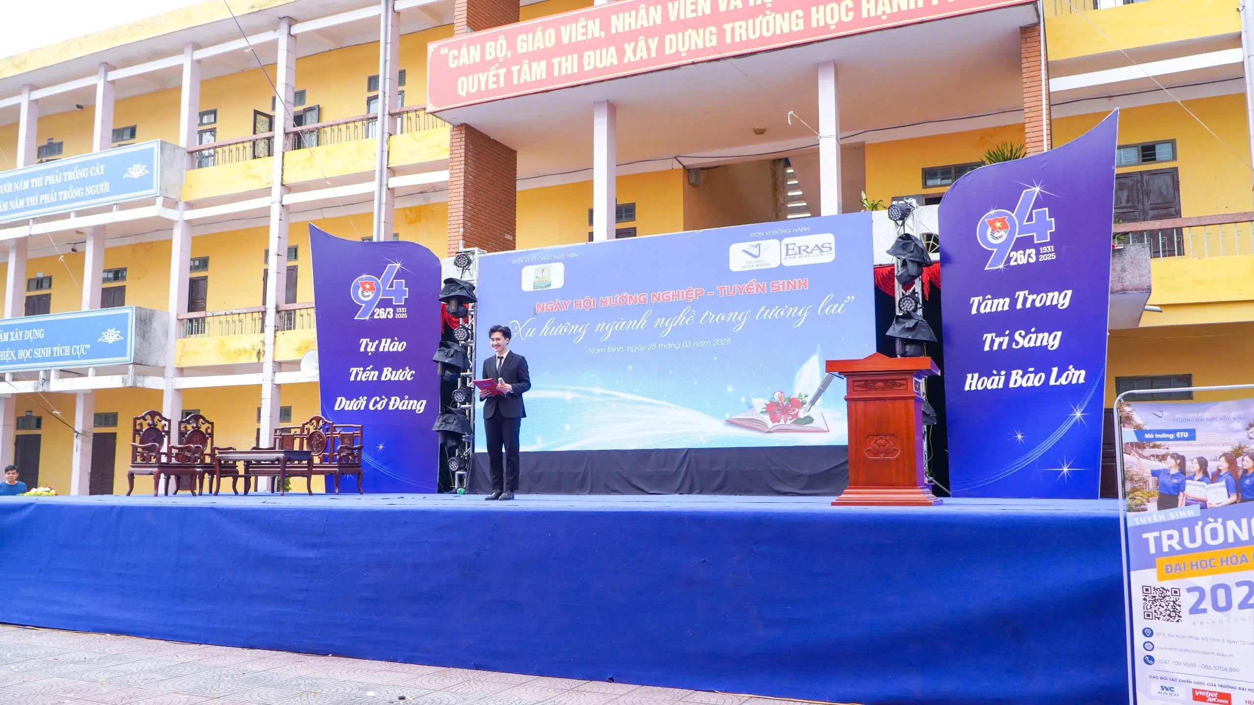 Ngày 25/3/2025, Trường Đại học Hòa Bình đã có mặt tại Trường THPT Lương Thế Vinh (Nam Định) để tổ chức Ngày hội Hướng nghiệp – Tuyển sinh năm 2025. Với sự tham gia nhiệt tình của các thầy cô, các bạn học sinh và quý phụ huynh, Chương trình đã diễn ra thành công tốt đẹp, để lại những ấn tượng khó quên.