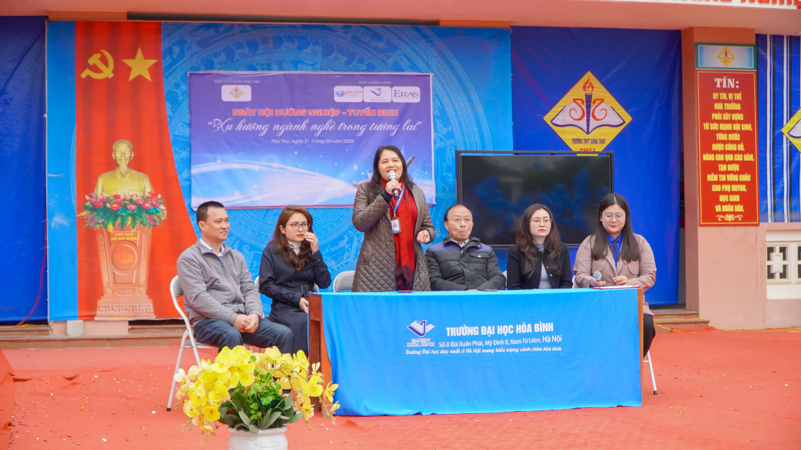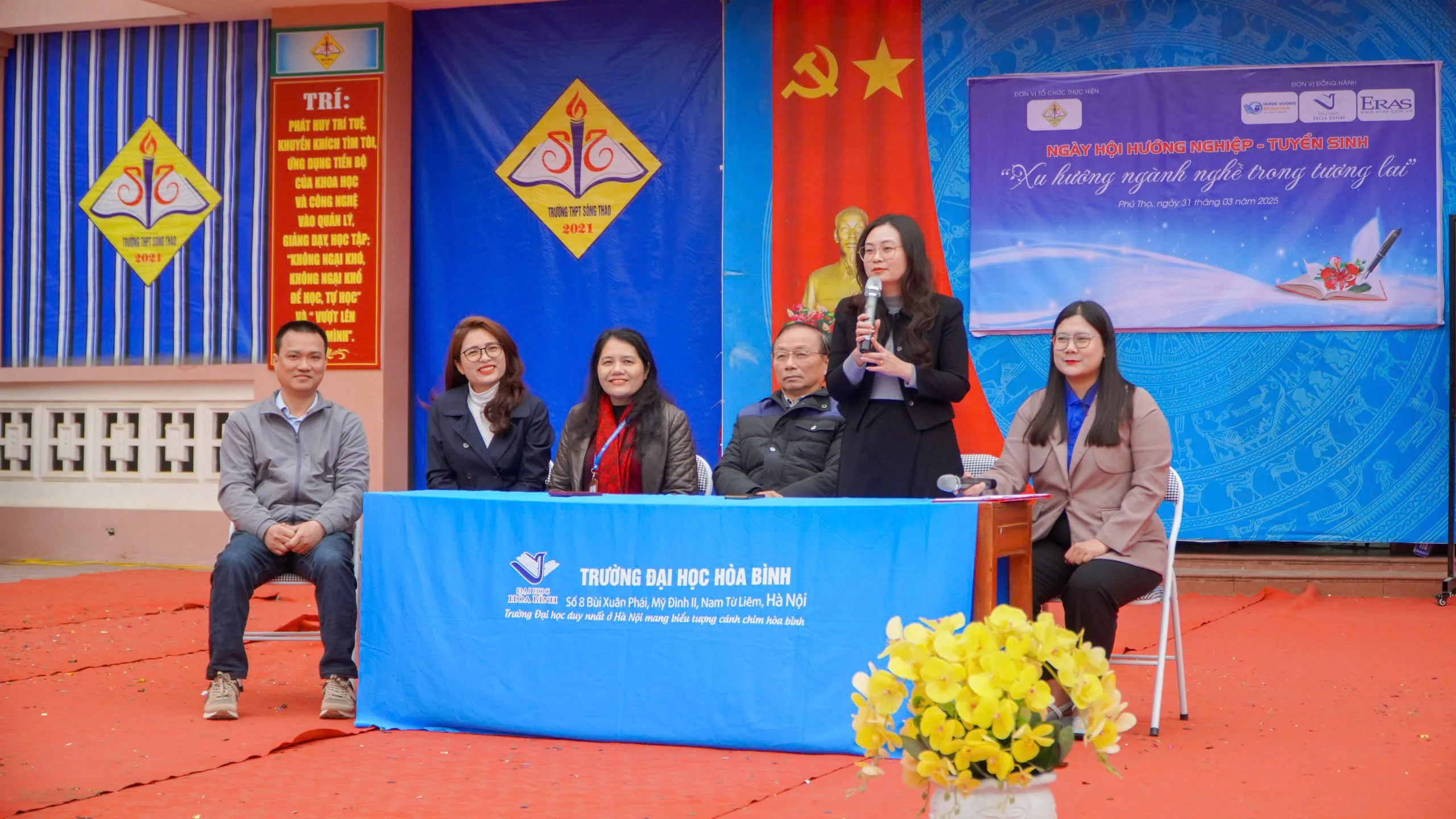 Ngày 31/3/2025, Trường Đại học Hòa Bình đã có mặt tại Trường THPT Sông Thao (Phú Thọ) để tổ chức Ngày hội Hướng nghiệp – Tuyển sinh năm 2025. Với sự tham gia nhiệt tình của các thầy cô, các bạn học sinh và quý phụ huynh, Chương trình đã diễn ra thành công tốt đẹp, để lại những ấn tượng khó quên.