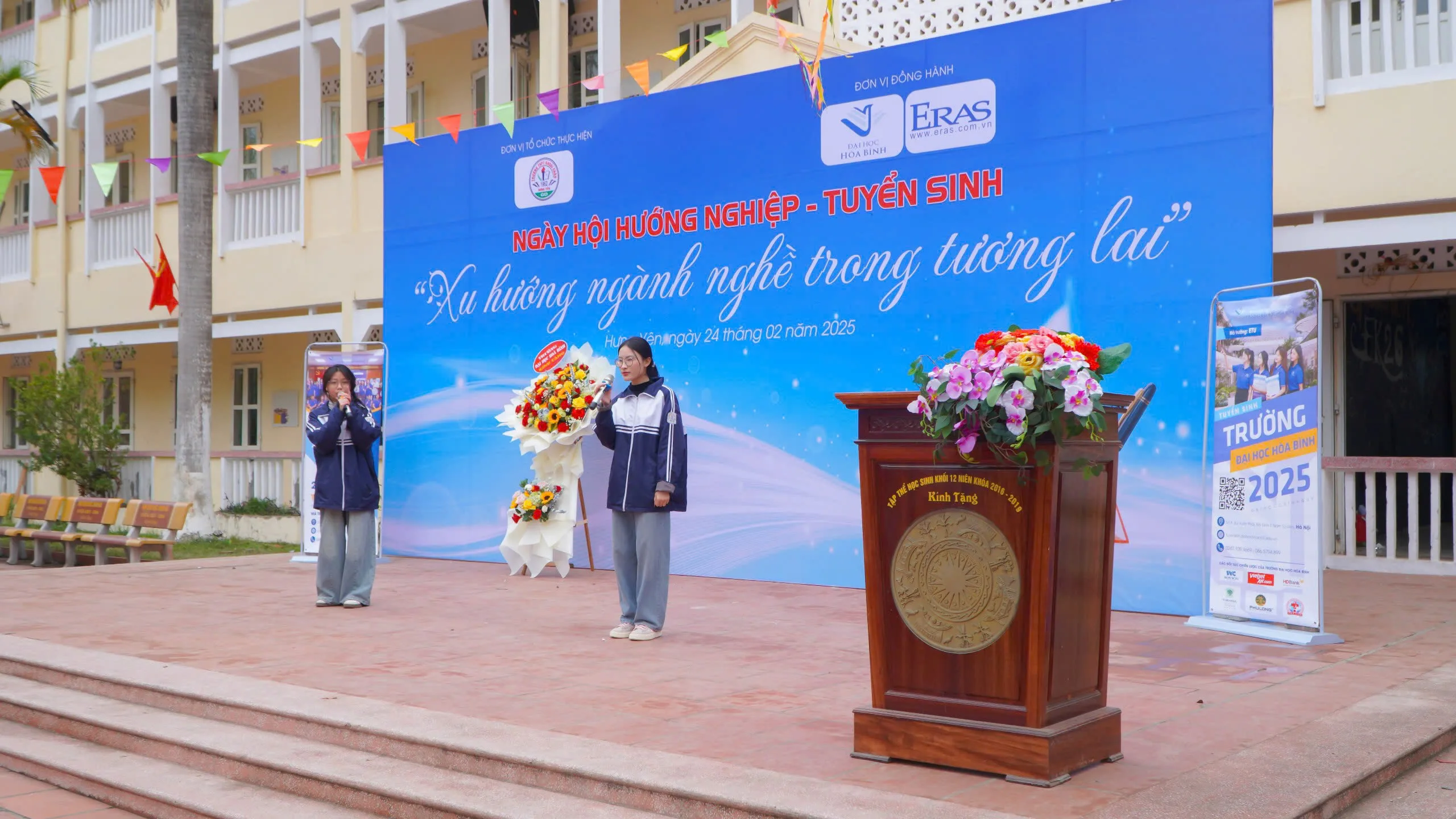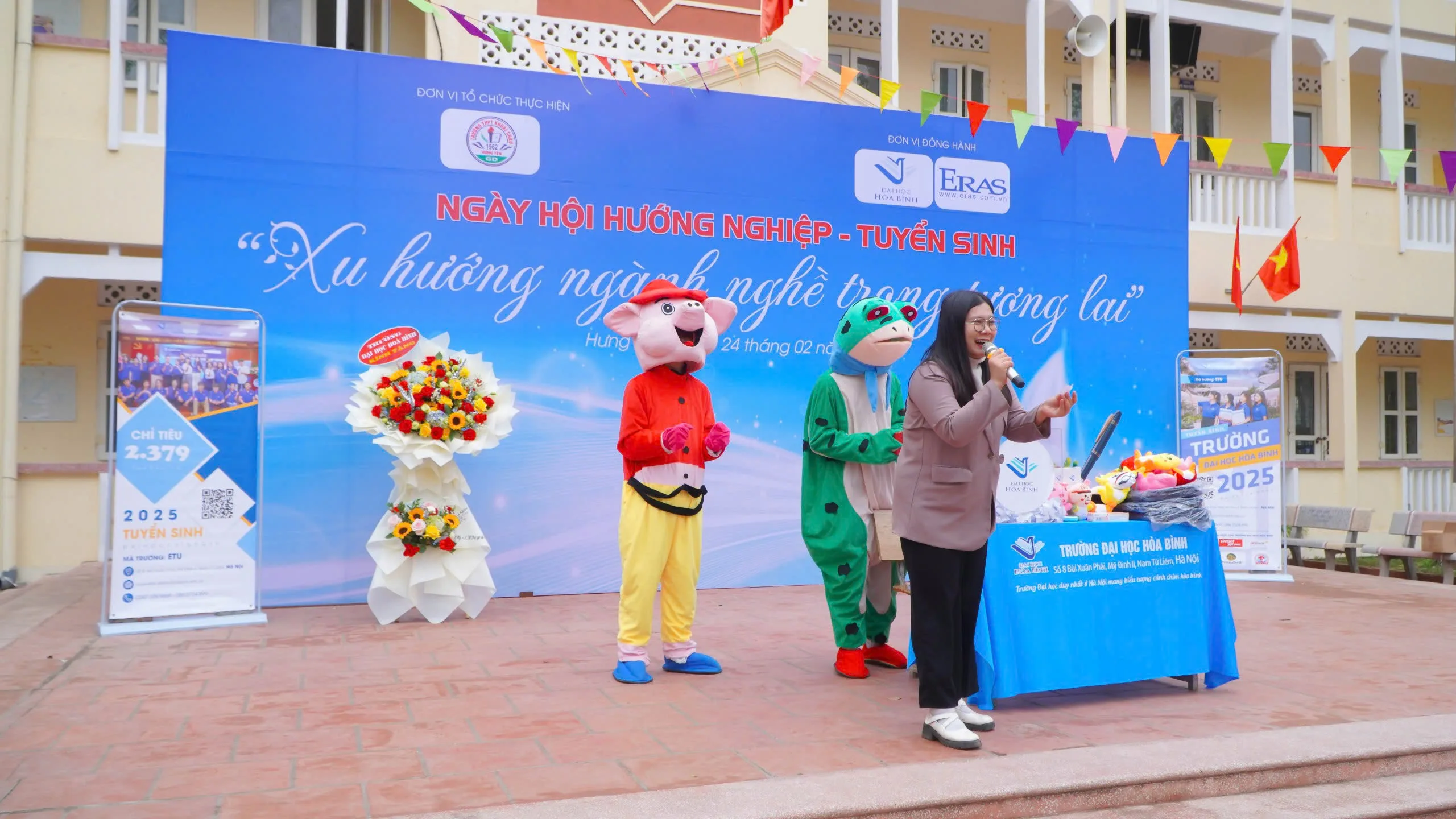 Tại ngày hội, các em học sinh được lắng nghe chia sẻ từ TS. Trần Diễm Hằng – Trưởng Khoa Du lịch Trường Đại học Hòa Bình chia sẻ về “Xu hướng ngành nghề trong tương lai”. Qua những chia sẻ của TS. Trần Diễm Hằng các em học sinh đã có thêm cho mình những thông tin cụ thể, xác định lộ trình học tập rõ ràng hơn, phát huy tối đa điểm mạnh và năng lực của bản thân, tạo ra nhiều cơ hội, tiết kiệm thời gian và tiền bạc để đầu tư đúng chỗ hơn. Việc các em hiểu rõ năng lực của bản thân, tự tin lựa chọn ngành nghề phù hợp với năng lực, xu thế phát triển của xã hội cũng giúp các em dễ dàng thành công trong tương lai.
