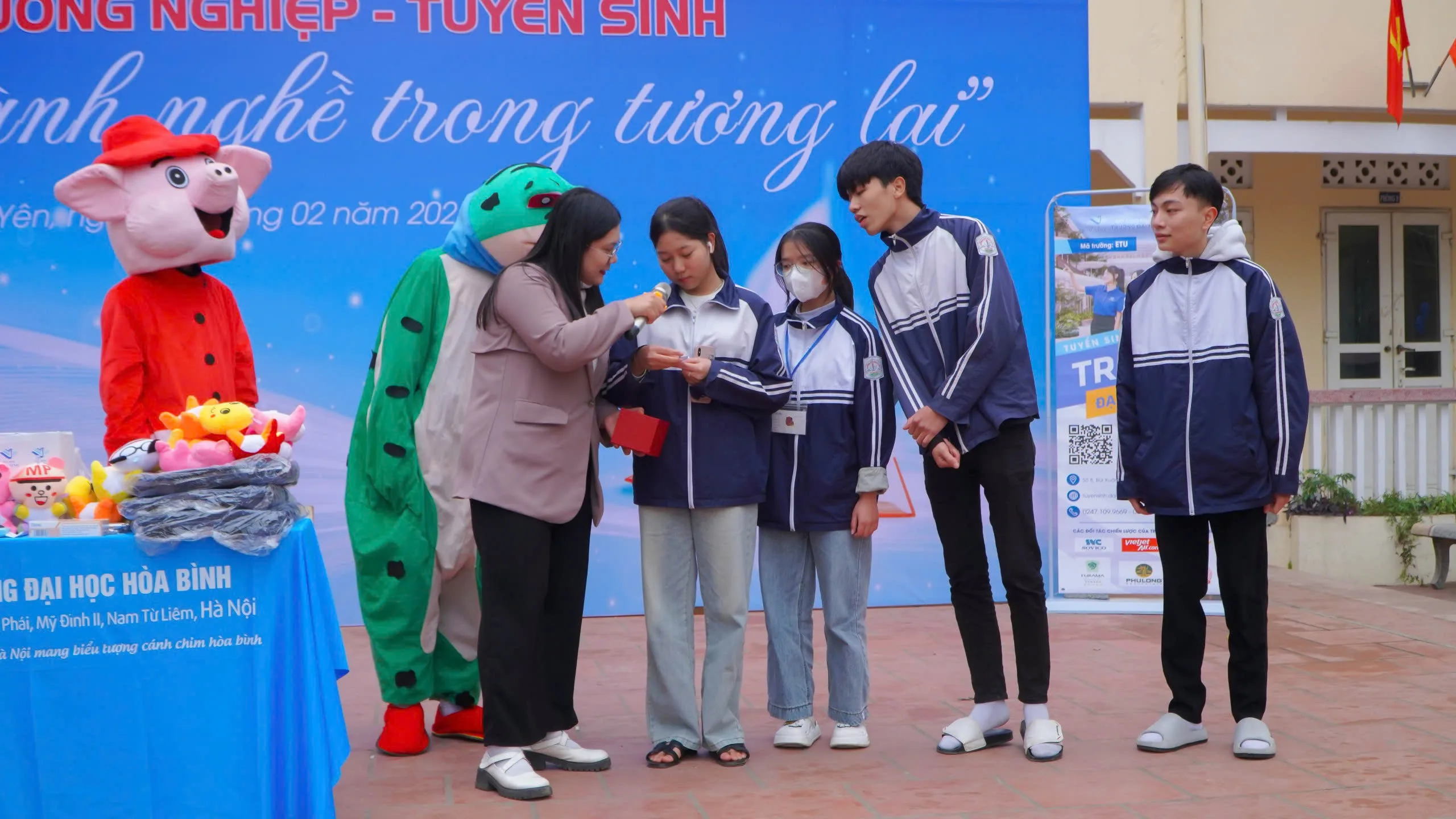 - Và đặc biệt là sự có mặt của gần 30 thầy cô tuyển sinh truyền thông cùng các bạn sinh viên trường Đại học Hòa Bình.