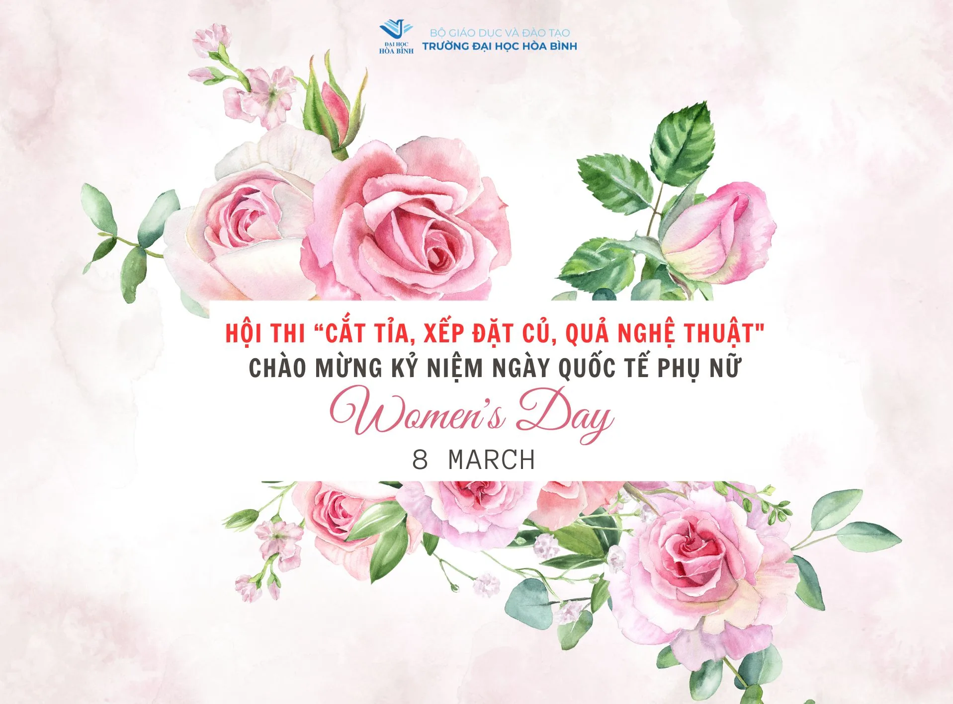 Hướng tới kỷ niệm Ngày Quốc tế Phụ nữ 08/03, Trường Đại học Hòa Bình tổ chức hội thi “Cắt tỉa, xếp đặt củ, quả nghệ thuật” nhằm tôn vinh vẻ đẹp, sự khéo léo và sáng tạo của cán bộ, viên chức, người lao động trong toàn đơn vị. Đây là hoạt động ý nghĩa, góp phần tạo không khí vui tươi, gắn kết và phát huy tinh thần tập thể trong dịp đặc biệt này.
