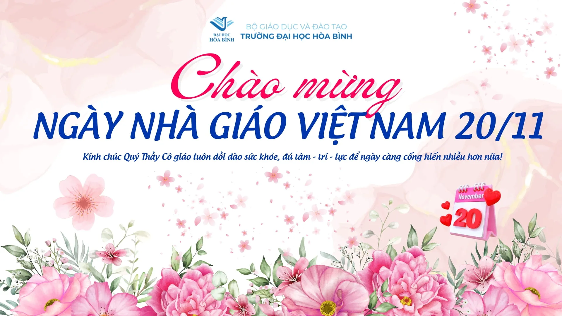 Ngày 20/11 không chỉ là ngày hội của tri thức mà còn là dịp để mỗi người thể hiện lòng biết ơn với nghề giáo – nghề cao quý nhất trong các nghề cao quý. Trường Đại học Hòa Bình trân trọng kính mời quý thầy cô, cán bộ, giảng viên, sinh viên cùng tham dự và lan tỏa tinh thần tôn sư trọng đạo.