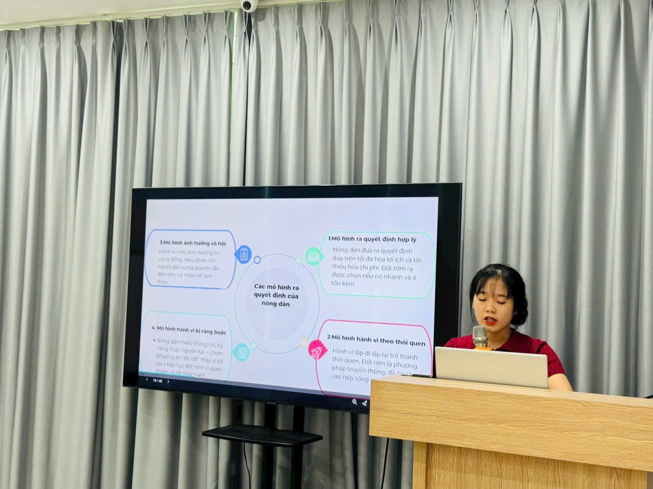 Đề tài tập trung phân tích hiện trạng đốt rơm rạ và sử dụng thuốc bảo vệ thực vật không an toàn – một vấn đề gây ô nhiễm môi trường nghiêm trọng tại các vùng nông thôn, ngoại thành. Nhóm nghiên cứu không chỉ khảo sát thực địa mà còn đề xuất các giải pháp phù hợp nhằm nâng cao nhận thức và thay đổi hành vi của con người, góp phần bảo vệ sức khỏe cộng đồng và phát triển nông nghiệp bền vững