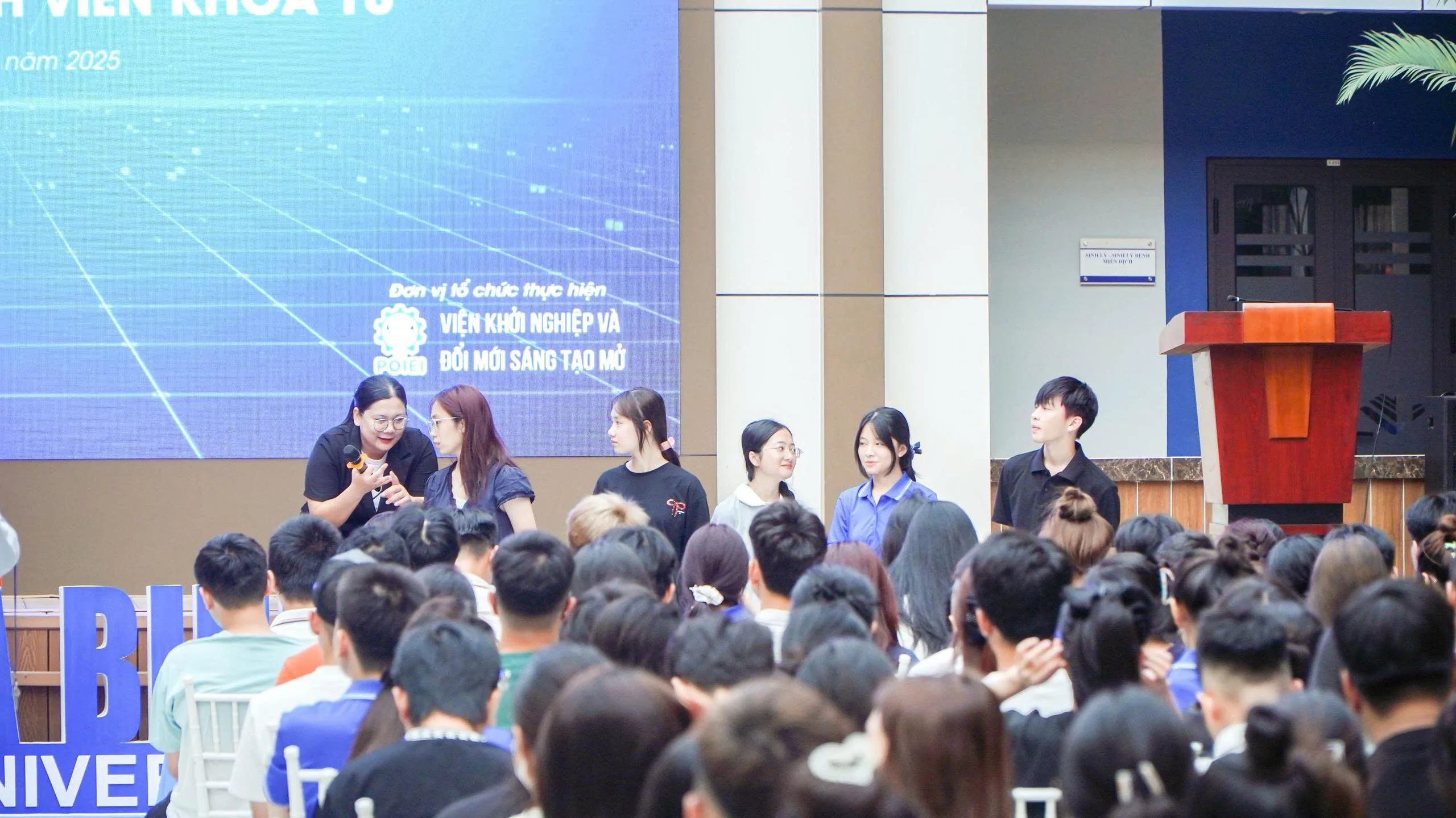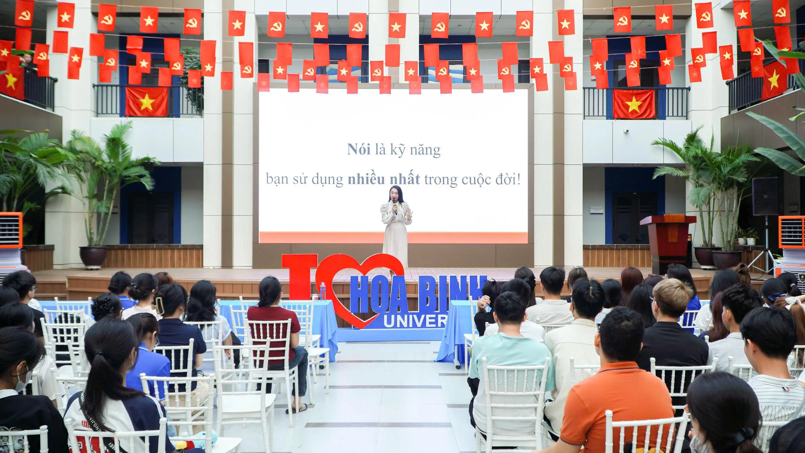 Ngày 12/9/2025, hơn 1.500 sinh viên năm nhất Trường Đại học Hòa Bình đã tham gia buổi học kỹ năng mềm đặc biệt với sự dẫn dắt của MC Trịnh Vân Anh – gương mặt quen thuộc trên sóng truyền hình quốc gia.