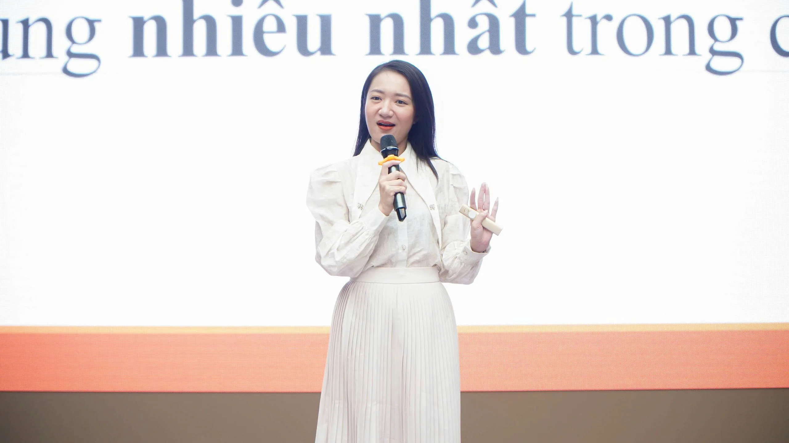 Đặc biệt, trong suốt buổi học, sinh viên không chỉ được tiếp nhận kiến thức mà còn trực tiếp tham gia thực hành thuyết trình trước lớp. Các bạn đã nhận được phản hồi và góp ý trực tiếp từ MC Trịnh Vân Anh để cải thiện từng kỹ năng: từ kiểm soát giọng nói, sử dụng ngôn ngữ cơ thể, đến cách xử lý tình huống trong quá trình thuyết trình. Sự tương tác cao đã giúp sinh viên vừa rèn luyện kỹ năng, vừa nâng cao sự tự tin, bản lĩnh trước đám đông.
