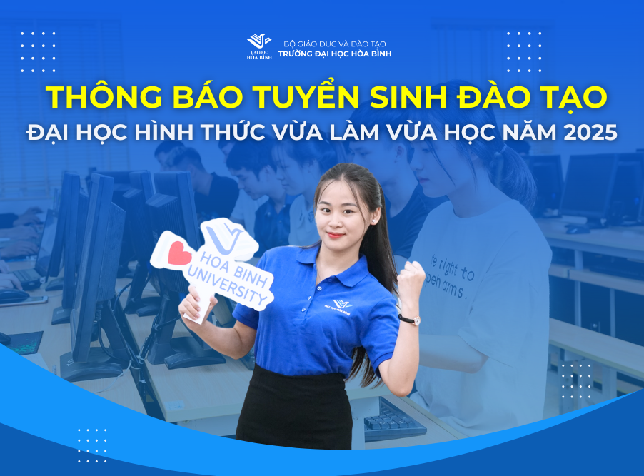 Căn cứ Đề án tuyển sinh đại học năm 2025, Trường Đại học Hòa Bình thông báo tuyển sinh đào tạo trình độ Đại học, hình thức vừa làm vừa học năm 2025 như sau: