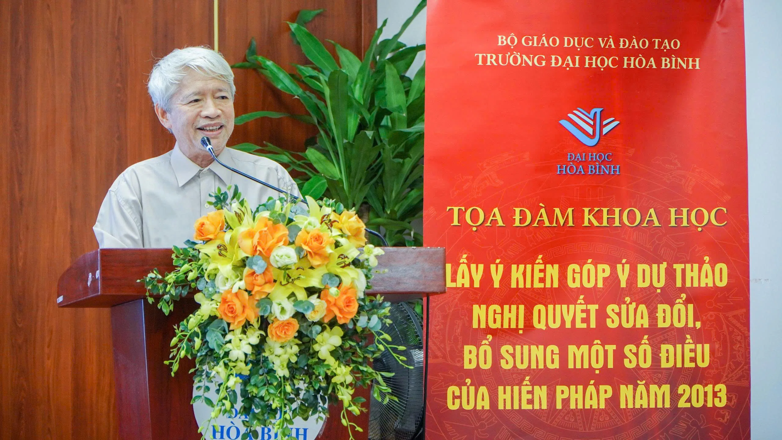 Phát biểu khai mạc Tọa đàm khoa học, NGND.PGS.TS. Tô Ngọc Hưng khẳng định đây là Tọa đàm khoa học có ý nghĩa rất quan trọng ở góc độ khoa học và thực tiễn, được tổ chức trong bối cảnh cả nước đang tích cực chuẩn bị cho việc xem xét, thảo luận và hoàn thiện Dự thảo Nghị quyết sửa đổi, bổ sung một số điều của Hiến pháp năm 2013 – một nhiệm vụ hệ trọng, đòi hỏi trí tuệ tập thể, sự phản biện khoa học và trách nhiệm công dân, vì vậy, Tọa đàm là diễn đàn khoa học để các chuyên gia, nhà khoa học trao đổi, thảo luận góp ý dự thảo Nghị quyết sửa đổi, bổ sung một số điều của Hiến pháp năm 2013. Bên cạnh đó, NGND.PGS.TS. Tô Ngọc Hưng đã định hướng một số nội dung cần tập trung phát biểu, làm rõ tại Tọa đàm, bao gồm: Làm rõ cơ sở lý luận và thực tiễn của việc sửa đổi, bổ sung Hiến pháp năm 2013; góp ý các vấn đề trực tiếp nhằm góp phần hoàn thiện dự thảo Nghị quyết sửa đổi, bổ sung một số điều của Hiến pháp năm 2013; đề xuất các giải pháp nhằm nâng cao hiệu quả sửa đổi, bổ sung một số điều của Hiến pháp năm 2013.