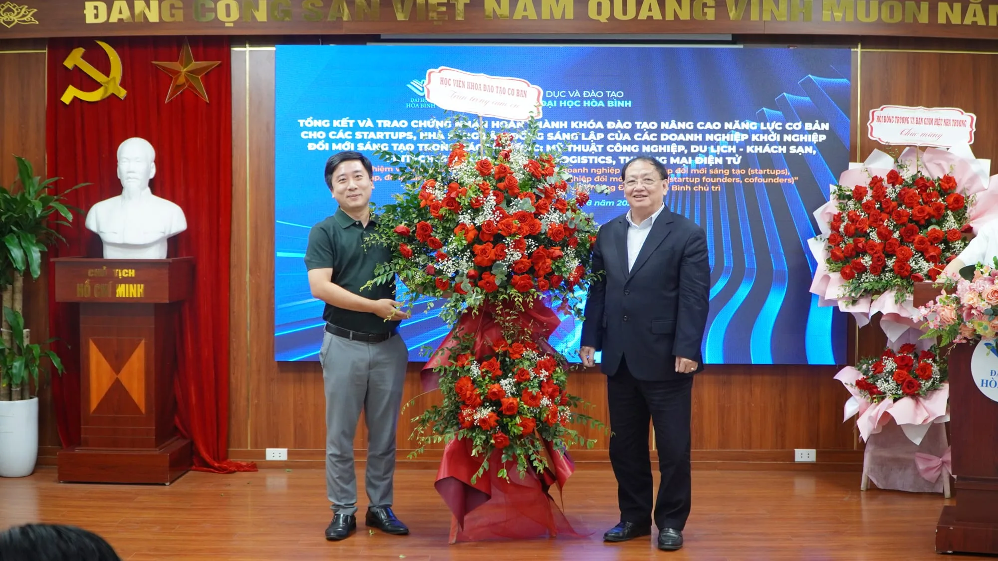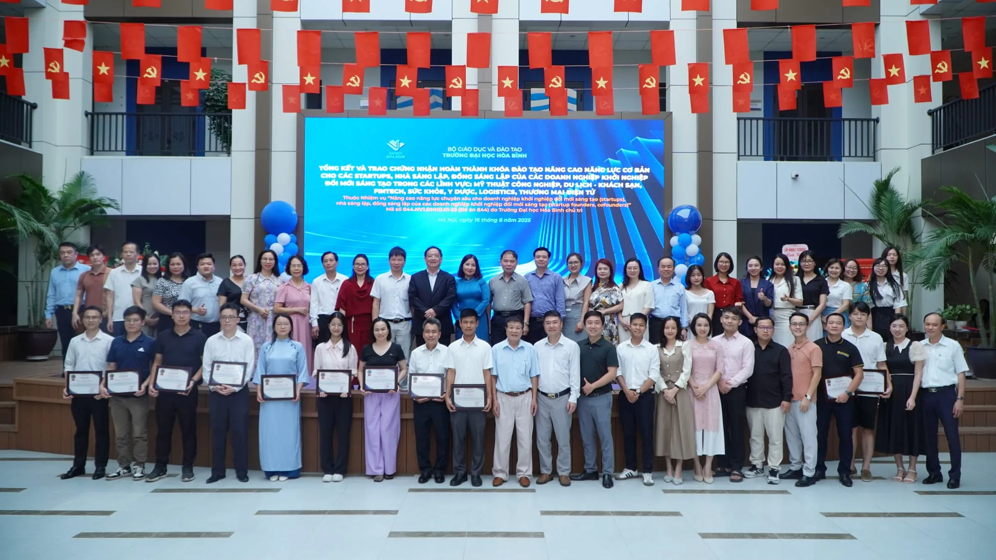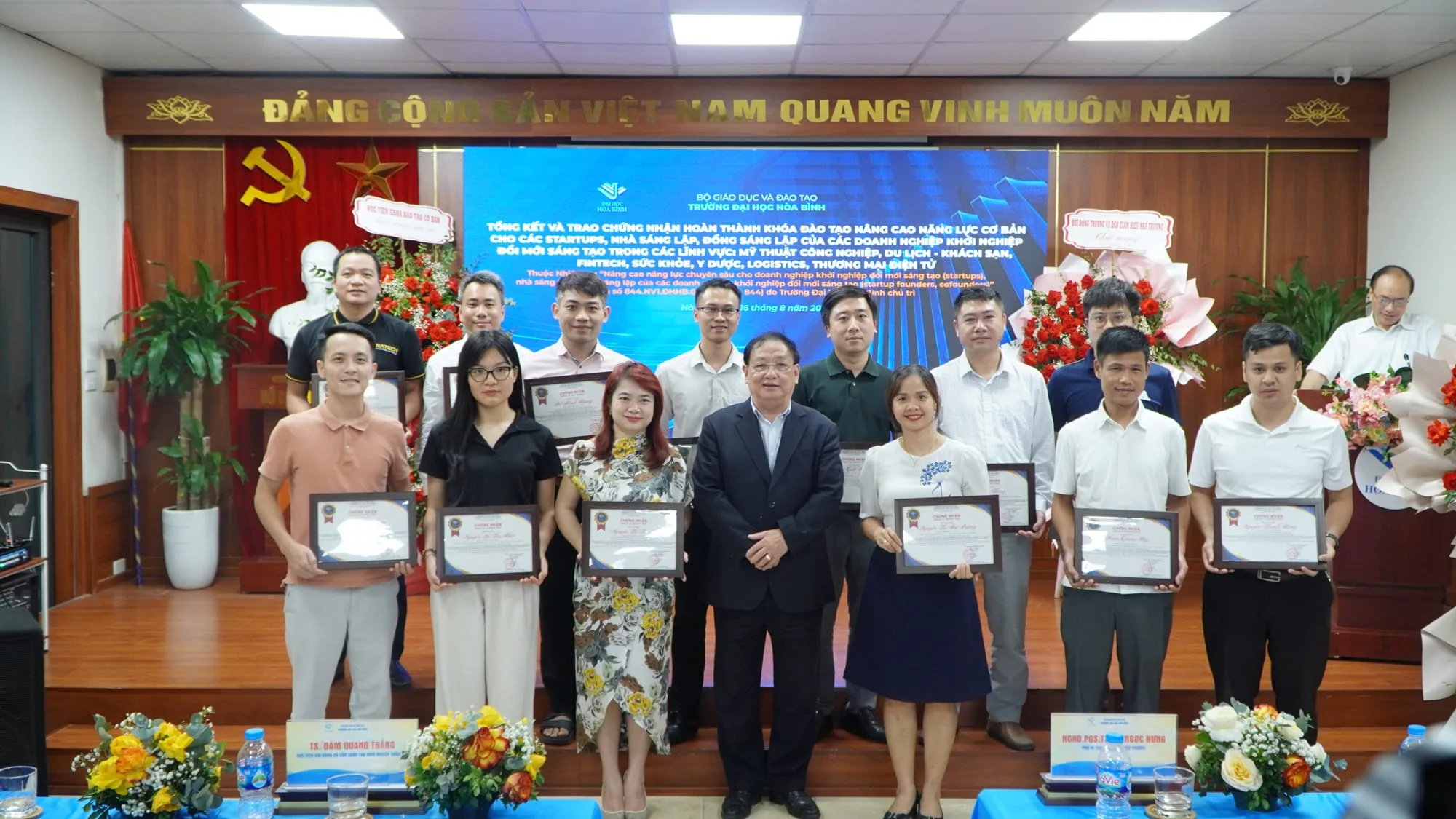 Nhằm công nhận kết quả của học viên tham gia khóa đào tạo nâng cao năng lực cơ bản tại Hà Nội cho các startups, nhà sáng lập, đồng sáng lập của các doanh nghiệp khởi nghiệp đổi mới sáng tạo (ĐMST) trong các lĩnh vực mỹ thuật công nghiệp, du lịch – khách sạn, fintech, sức khỏe, y dược, logistics, thương mại điện tử, trong khuôn khổ nhiệm vụ “Nâng cao năng lực chuyên sâu cho doanh nghiệp khởi nghiệp đổi mới sáng tạo (startups), nhà sáng lập, đồng sáng lập của các doanh nghiệp khởi nghiệp đổi mới sáng tạo (startup founders, cofounders)”, mã số 844.NV1.ĐHHB.01-25 thuộc Đề án 844 do Trường Đại học Hòa Bình chủ trì,chiều ngày 16/8/2025, Trường Đại học Hòa Bình (ĐHHB) tổ chức tổng kết và trao chứng nhận hoàn thành khóa học cho học viên.