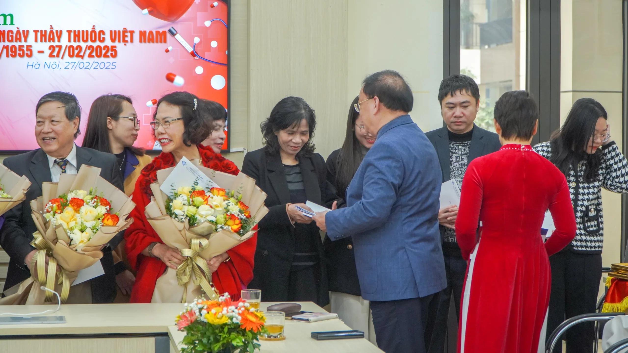Kết thúc buổi lễ, Nhà trường đã trao tặng hoa và quà tri ân đến các lãnh đạo Khoa và đội ngũ cán bộ, giảng viên Khối ngành Sức khỏe, bày tỏ sự trân trọng và động viên các thầy cô tiếp tục cống hiến cho sự nghiệp chăm sóc sức khỏe nhân dân và đào tạo nhân lực y tế chất lượng cao.