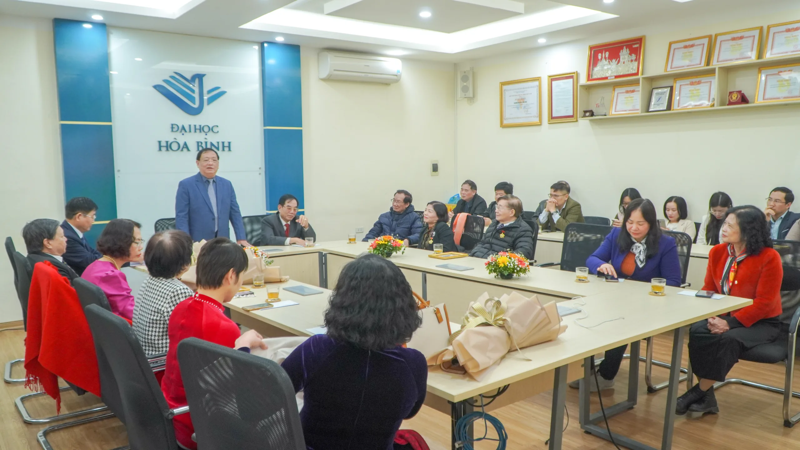 Sáng ngày 27/2/2025, Trường Đại học Hòa Bình đã đã tổ chức buổi gặp mặt chúc mừng đội ngũ y, bác sĩ, cán bộ, giảng viên đang công tác tại Nhà trường nhân dịp kỷ niệm 70 năm ngày Thầy thuốc Việt Nam (27/02/1955 – 27/02/2025).
