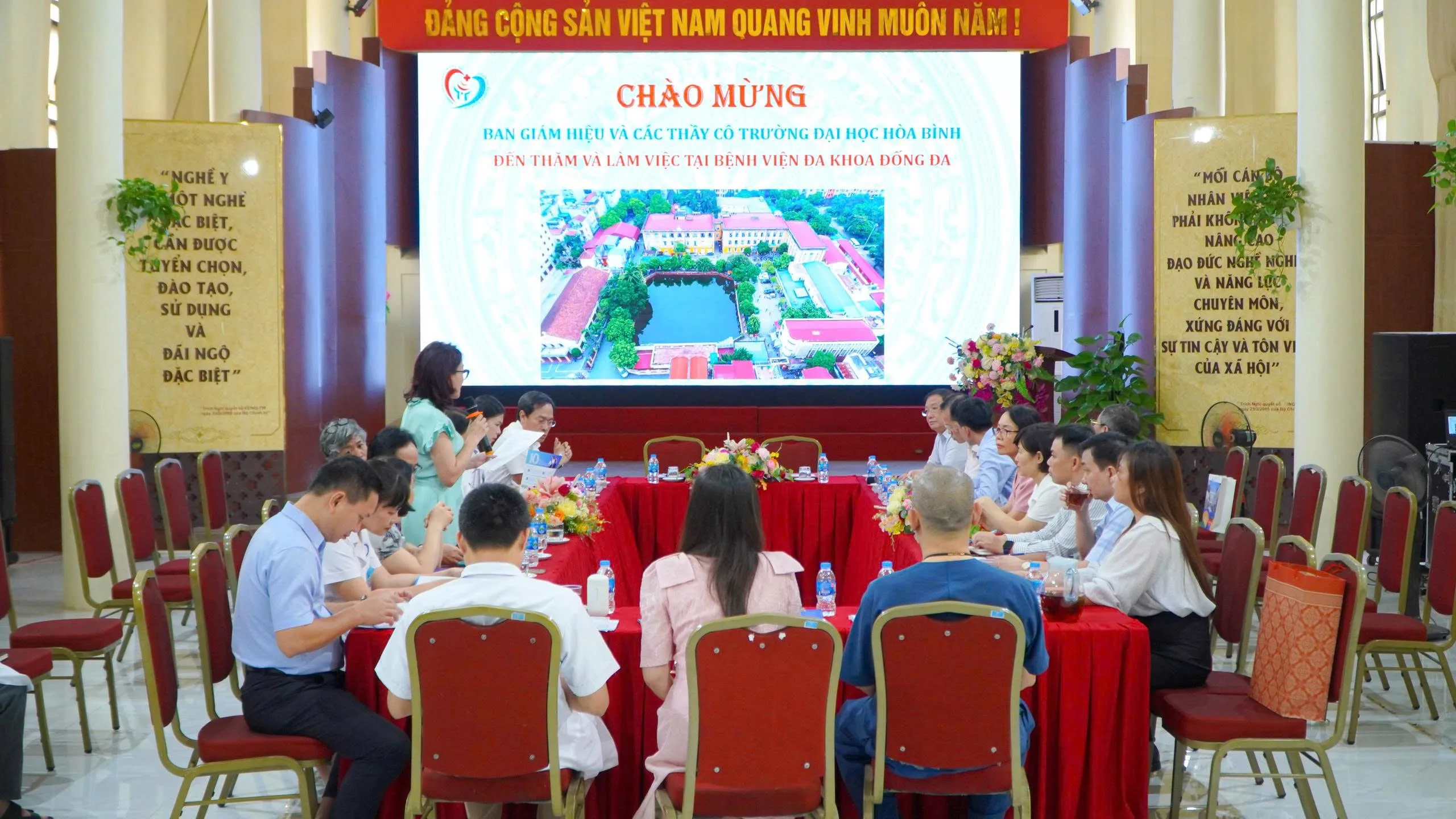 Sáng ngày 24/6/2025, Lãnh đạo Trường Đại học Hòa Bình đã có buổi làm việc với Ban Giám đốc Bệnh viện Đa khoa Đống Đa, cùng trao đổi sâu về tiềm năng hợp tác trên nhiều lĩnh vực liên quan đến công tác phối hợp tổ chức đào tạo thực hành các ngành lĩnh vực sức khỏe.