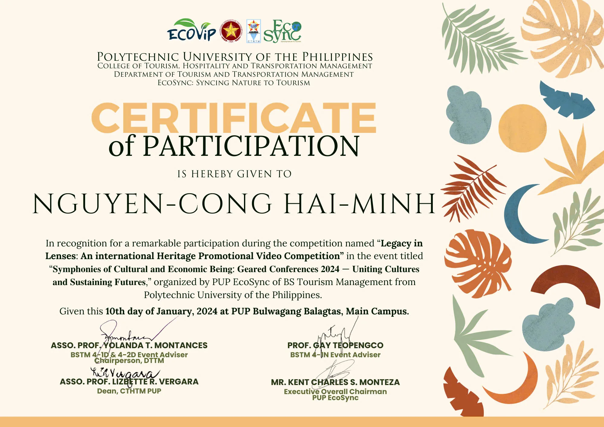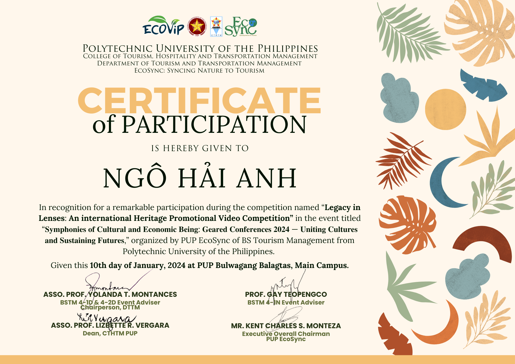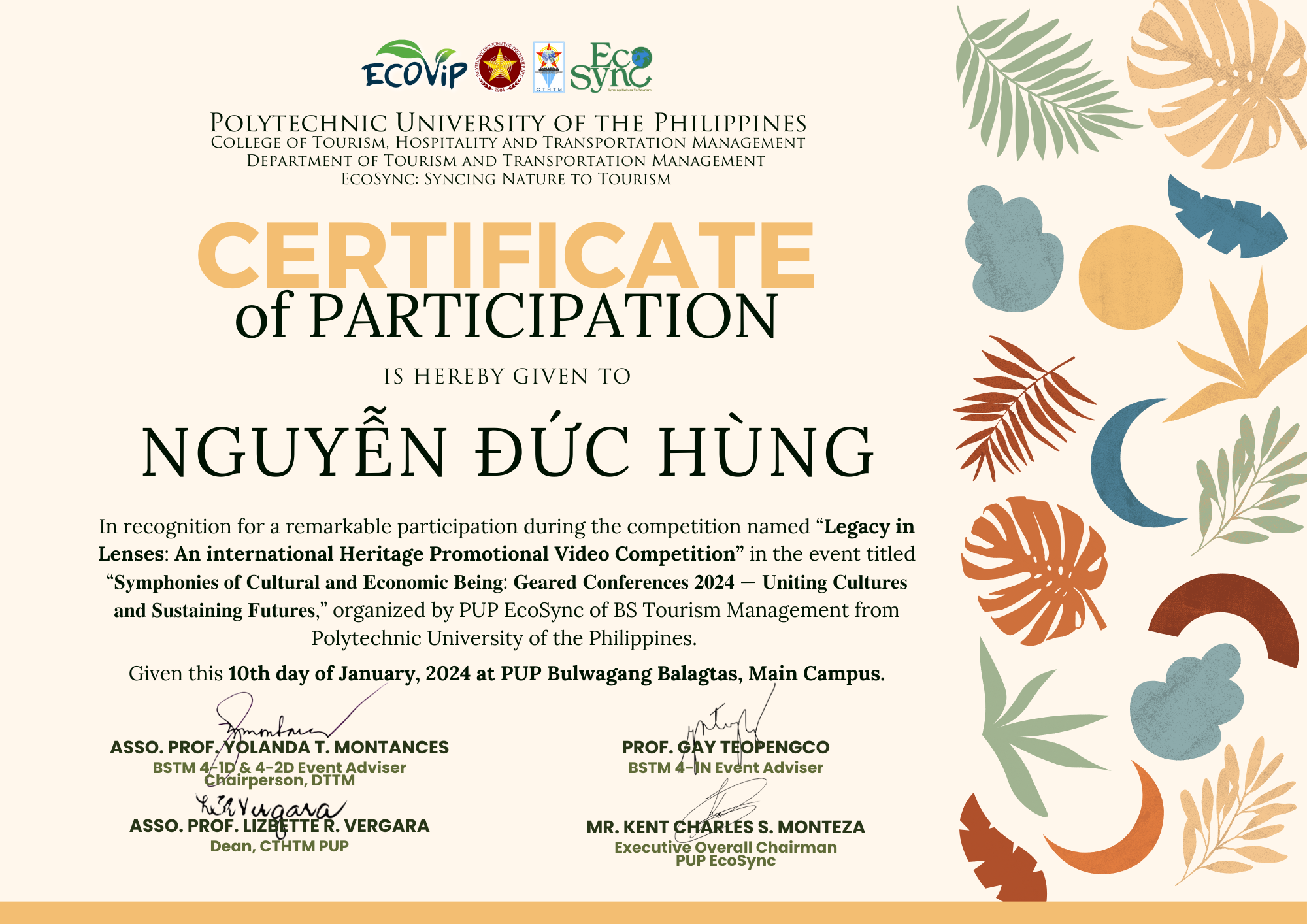 Sinh viên Trường Đại học Hòa Bình đã tham gia chương trình ECOViP “Legacy in Lenses: An International Heritage Promotional Video Competition” do Đại học Bách Khoa Phillipines tổ chức và lọt vào Top 5 đội xuất sắc nhất.