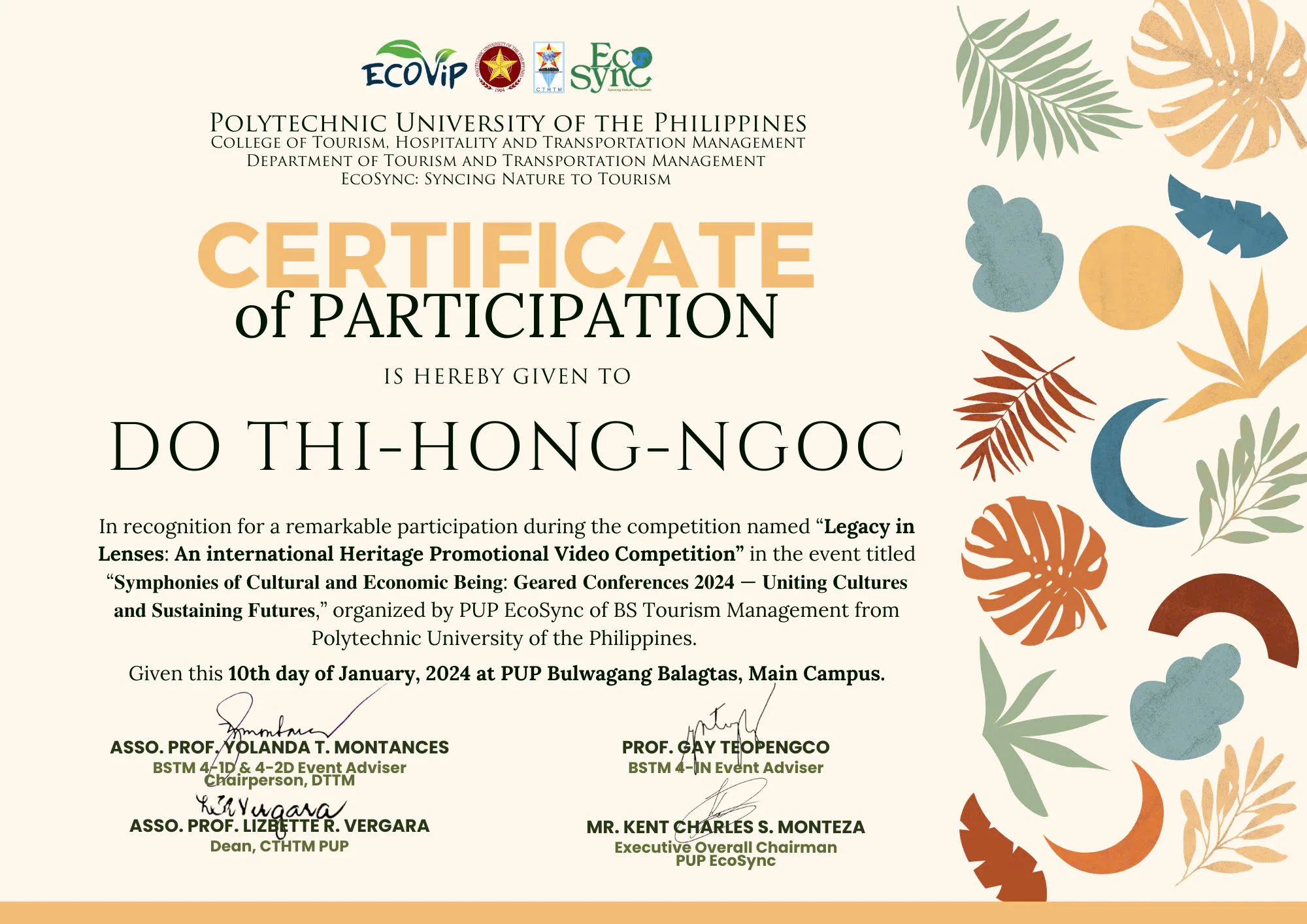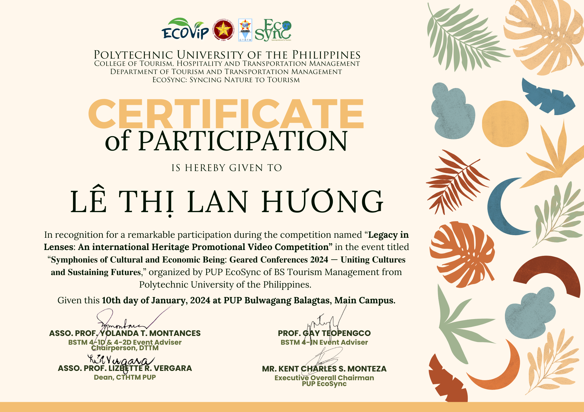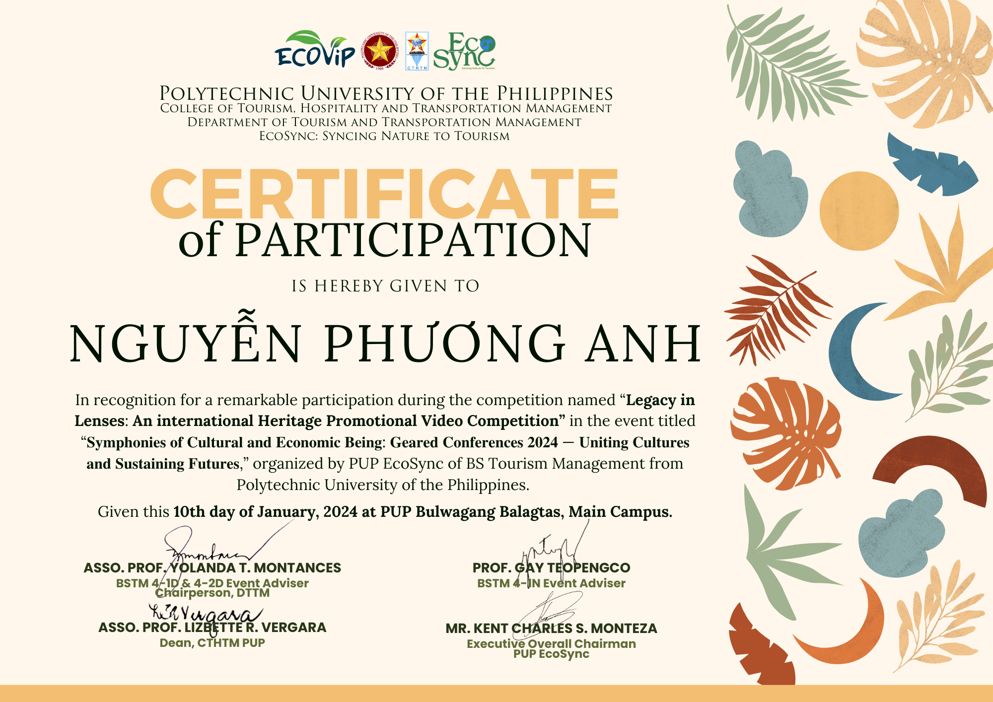 Sinh viên Trường Đại học Hòa Bình đã tham gia chương trình ECOViP “Legacy in Lenses: An International Heritage Promotional Video Competition” do Đại học Bách Khoa Phillipines tổ chức và lọt vào Top 5 đội xuất sắc nhất.