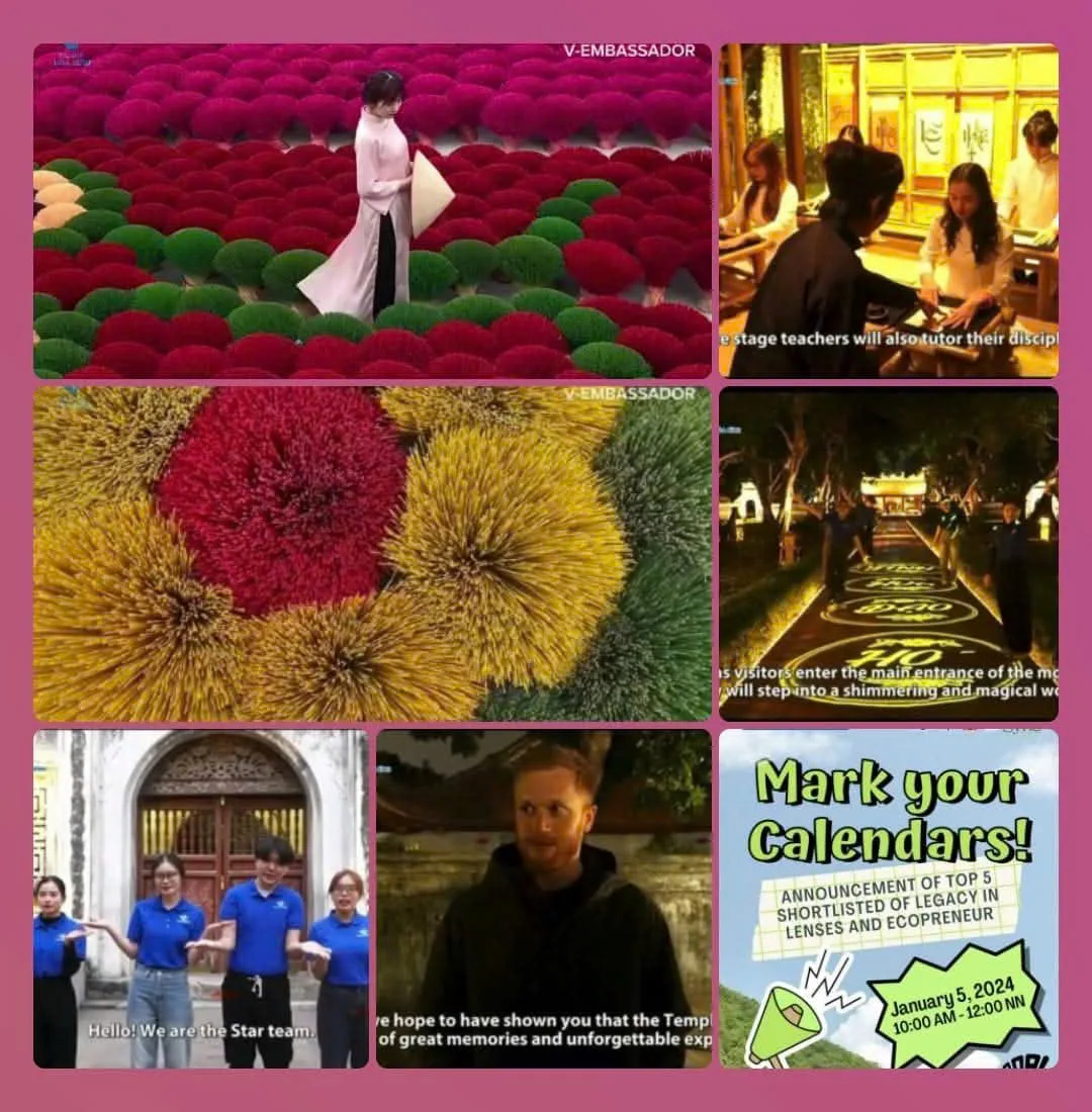 Với 4 đội thi và những góc nhìn sáng tạo, các em sinh viên đã thêu dệt ước vọng, thổi hồn sức trẻ vào các video về các di sản và bảo tồn di sản Văn Miếu – Quốc Tử Giám, về Phố Cổ, về các làng nghề truyền thống của Việt Nam của Khoa Du lịch và Khoa Truyền thông và Quan hệ Công chúng.