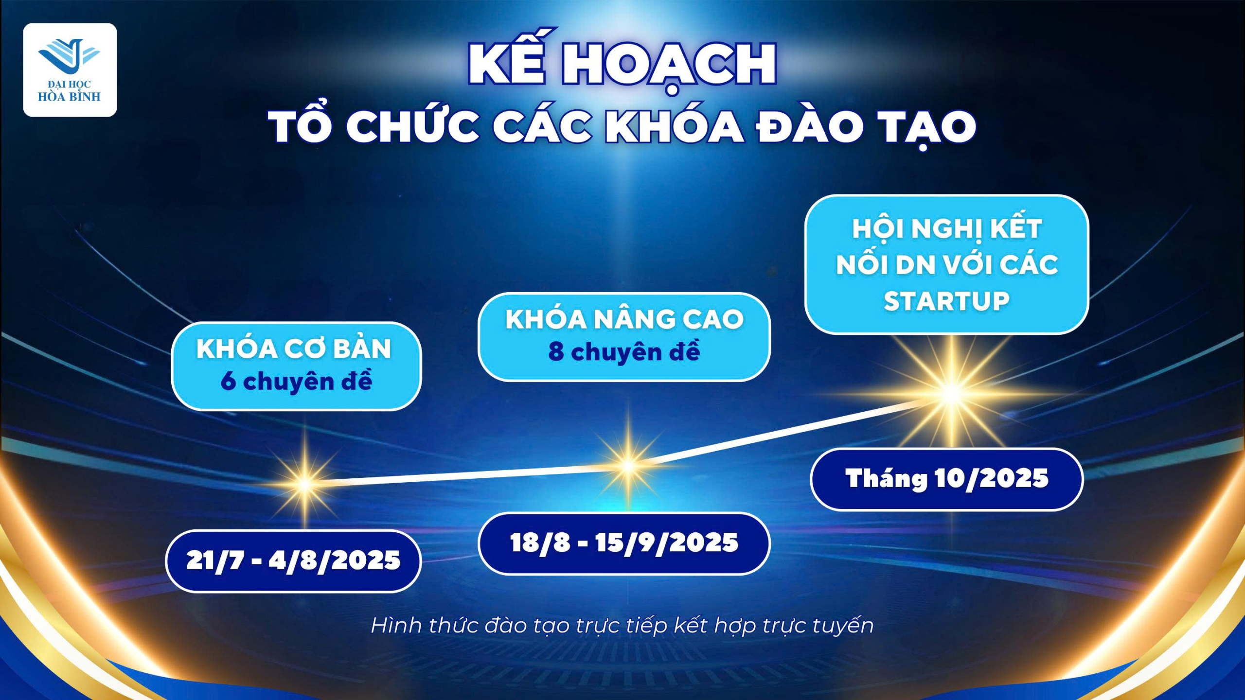 Ngày 06/7/2025, Trường Đại học Hòa Bình (ĐHHB) đã tổ chức Hội nghị giới thiệu các hoạt động chương trình hỗ trợ chuyên sâu cho startups, nhà sáng lập, đồng sáng lập và tuyển chọn các startups, nhà sáng lập, đồng sáng lập tiềm năng theo hình thức kết hợp trực tiếp và trực tuyến.