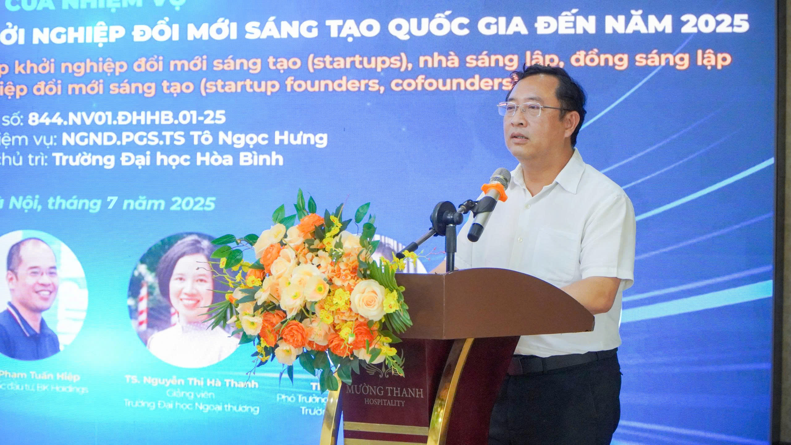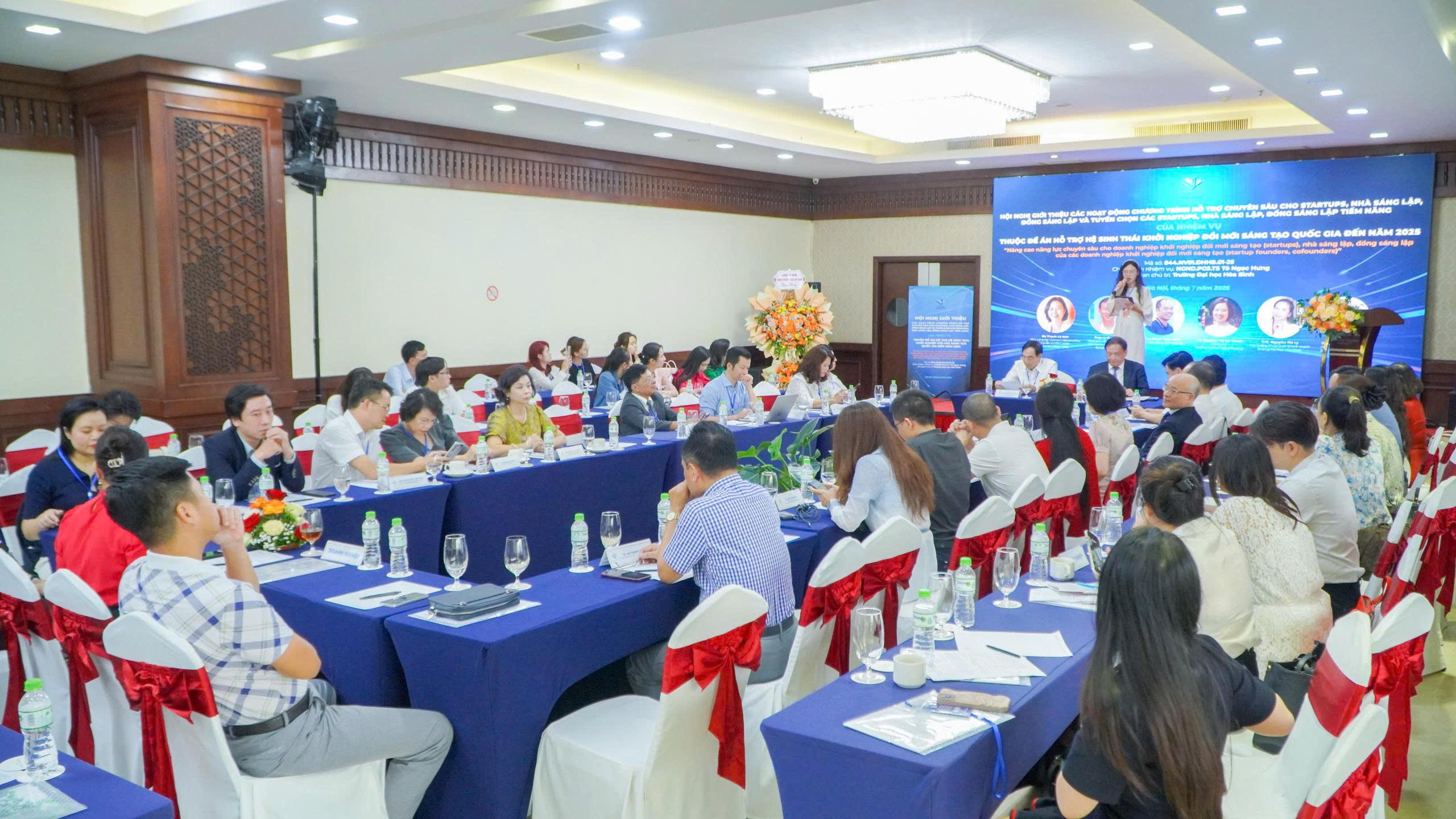 Tiếp nối Hội nghị kết nối chuyên gia khởi nghiệp đổi mới sáng tạo và chuyên gia công nghệ để xây dựng khung chương trình và tiêu chí tuyển chọn doanh nghiệp khởi nghiệp đổi mới sáng tạo, nhà sáng lập, đồng sáng lập của các doanh nghiệp khởi nghiệp đổi mới sáng tạo được tổ chức vào ngày 29/6/2025, trong khuôn khổ hoạt động thuộc nhiệm vụ “Nâng cao năng lực chuyên sâu cho doanh nghiệp khởi nghiệp đổi mới sáng tạo (startups), nhà sáng lập, đồng sáng lập của các doanh nghiệp khởi nghiệp đổi mới sáng tạo (startup founders, cofounders)”, mã số 844.NV1.ĐHHB.01-25 do Trường ĐHHB chủ trì thực hiện thuộc Đề án 844 “Hỗ trợ hệ sinh thái khởi nghiệp đổi mới sáng tạo quốc gia đến năm 2025”, ngày 06/7/2025, Trường ĐHHB đã tổ chức Hội nghị nhằm giới thiệu các hoạt động chương trình hỗ trợ chuyên sâu cho startups, nhà sáng lập, đồng sáng lập và tuyển chọn các startups, nhà sáng lập, đồng sáng lập tiềm năng trong các lĩnh vực (mỹ thuật công nghiệp, du lịch – khách sạn, fintech, sức khỏe, y dược, logistics, thương mại điện tử) để đào tạo nâng cao năng lực.