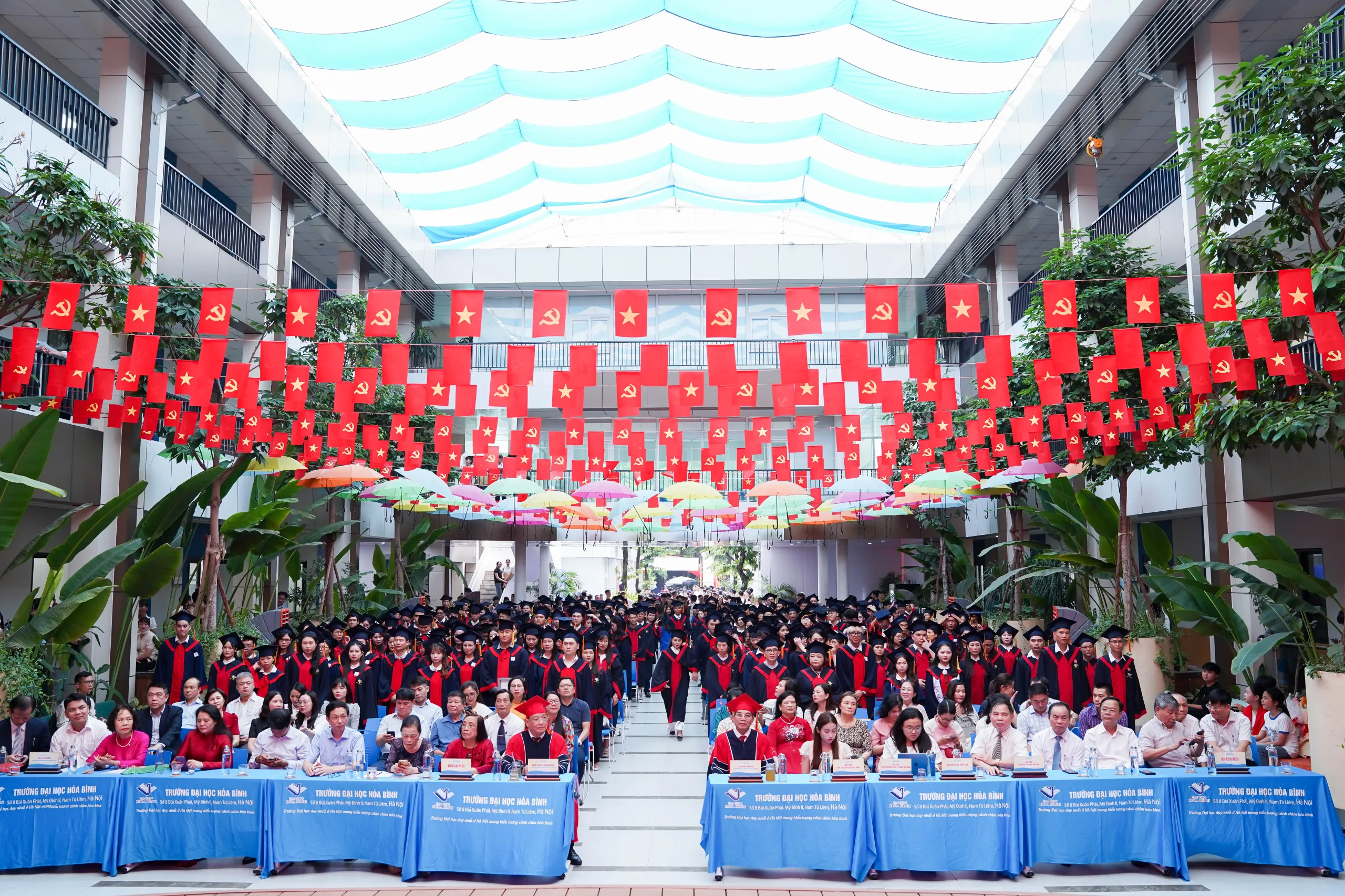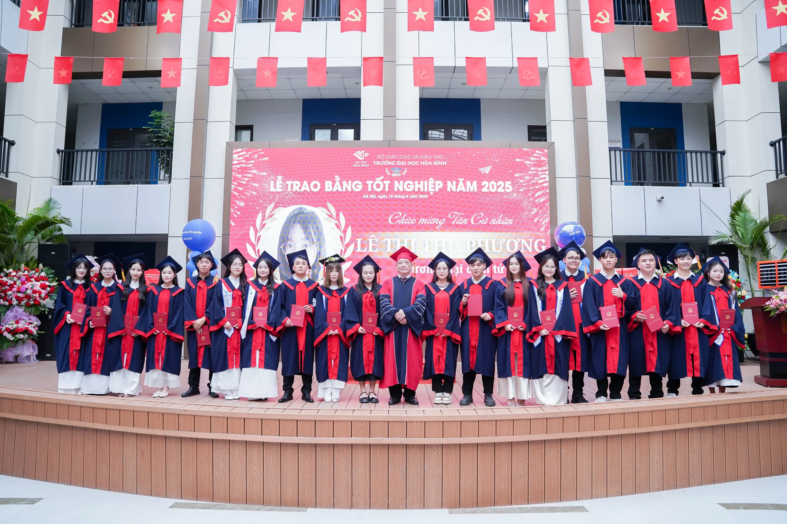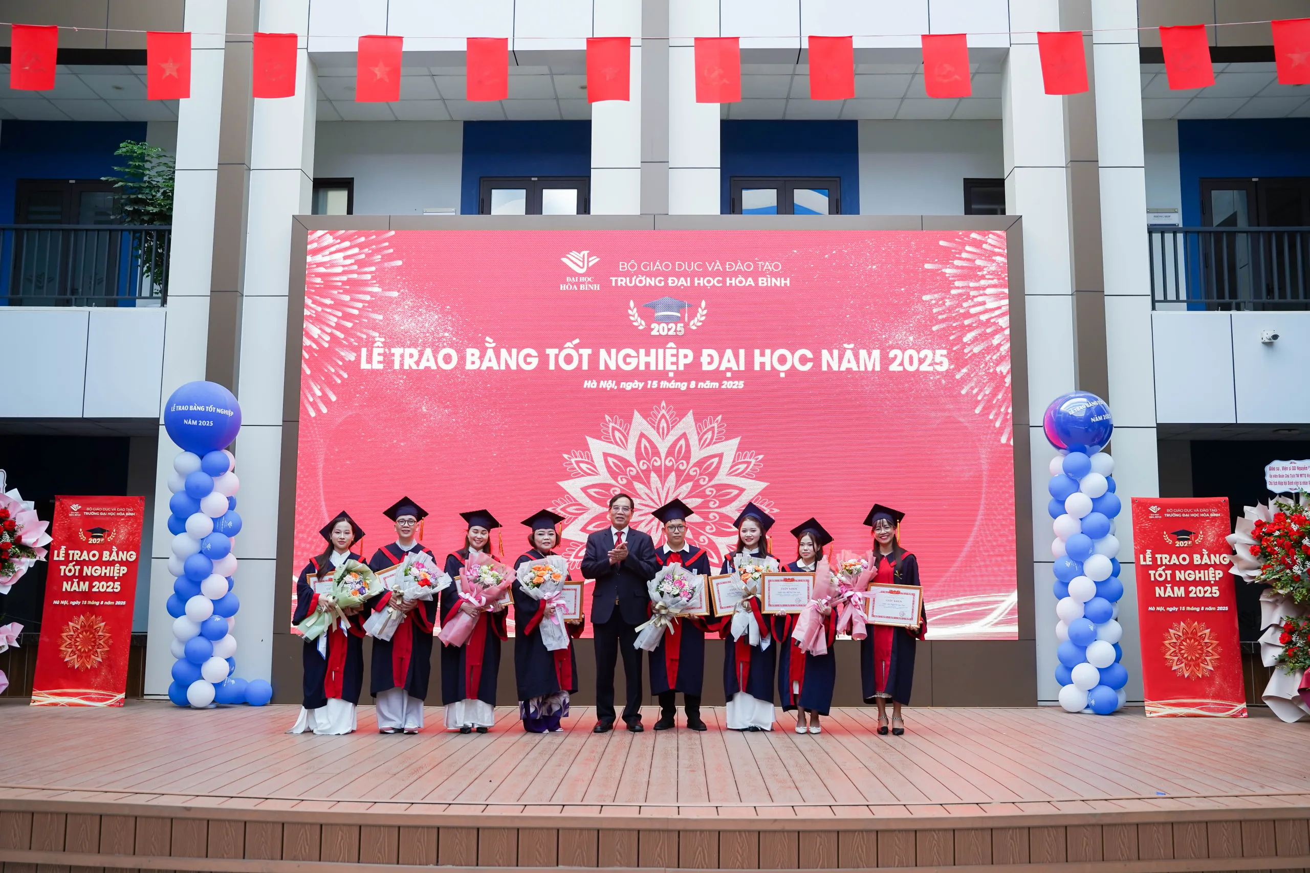 Sáng ngày 15/8/2025, Trường Đại học Hòa Bình đã long trọng tổ chức Lễ trao bằng tốt nghiệp năm 2025 cho 396 sinh viên thuộc 14 ngành đào tạo. Đây là lần đầu tiên Nhà trường trao bằng cho các bác sĩ tốt nghiệp, đánh dấu một mốc lịch sử quan trọng trong quá trình xây dựng và phát triển, góp phần cung cấp nguồn nhân lực y tế chất lượng cao phục vụ sự nghiệp chăm sóc và bảo vệ sức khỏe nhân dân.