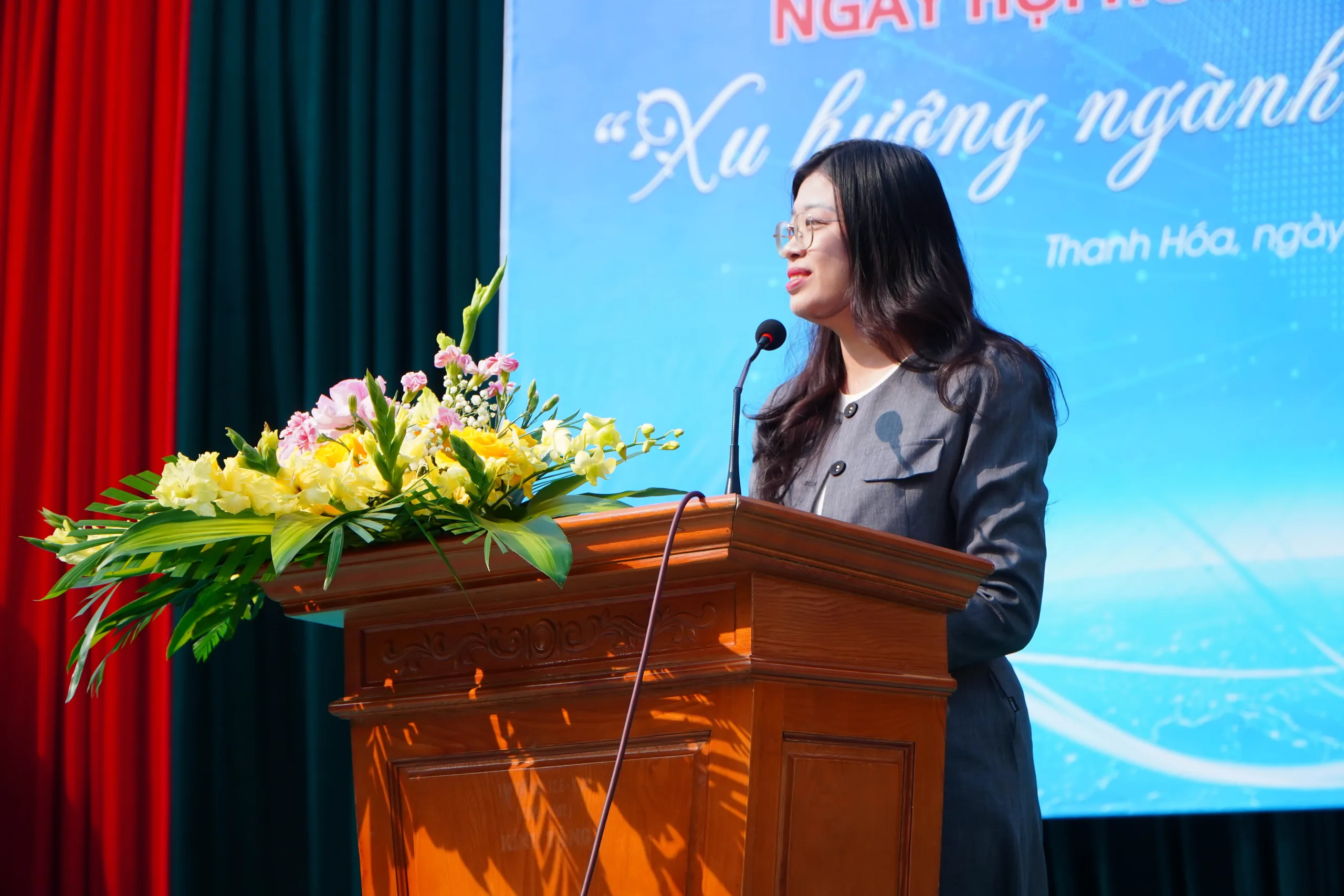 ThS. Lê Thị Trúc – Phó Trưởng phòng Tuyển sinh và Truyền thông phát biểu tại Ngày hội