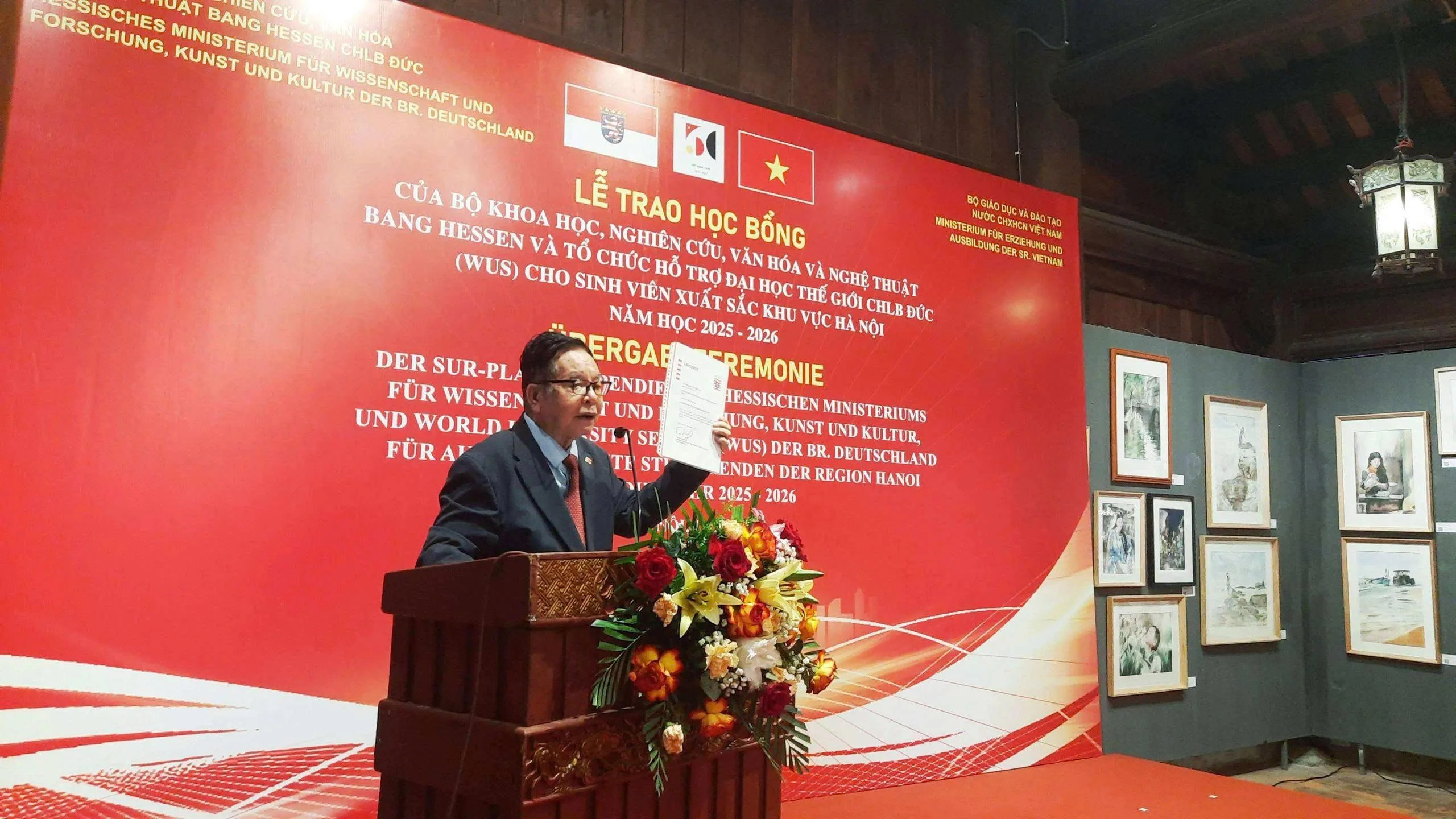 Chiều 12/12 tại di tích Quốc gia đặc biệt Văn Miếu – Quốc Tử Giám, Hà Nội, Bộ Khoa học, nghiên cứu, văn hóa và nghệ thuật Bang Hessen và tổ chức Hỗ trợ Đại học thế giới Cộng hòa Liên bang Đức (WUS) đã trao học bổng cho 84 sinh viên vượt khó học tốt khu vực phía Bắc trong tổng số 240 suất học bổng của sinh viên toàn quốc năm học 2025-2026, trong đó có 03 sinh viên ưu tú của Trường Đại học Hòa Bình, Hà Nội.